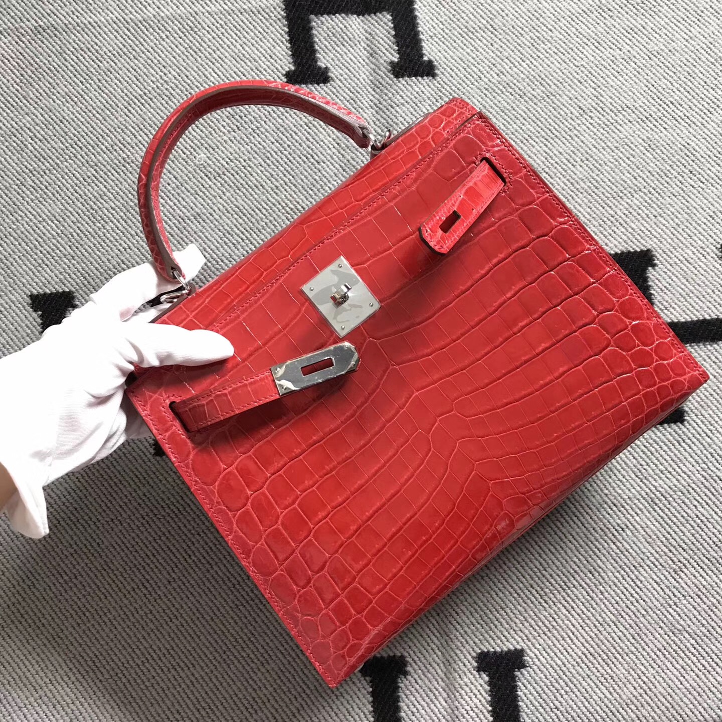 Hermès(爱马仕) Kelly凯莉包 西瓜红 银扣 28cm 2018年7月31日 0 【鳄鱼世家】www.Eyubao.com Kelly 28 Kelly 凯莉包 品牌:Hermès(爱马仕);类别:Kelly凯莉包;颜色:西瓜红;材质:精选原版皮;等级:顶级;附件:全套包装礼盒;尺寸:28cm;功能:手提单肩包