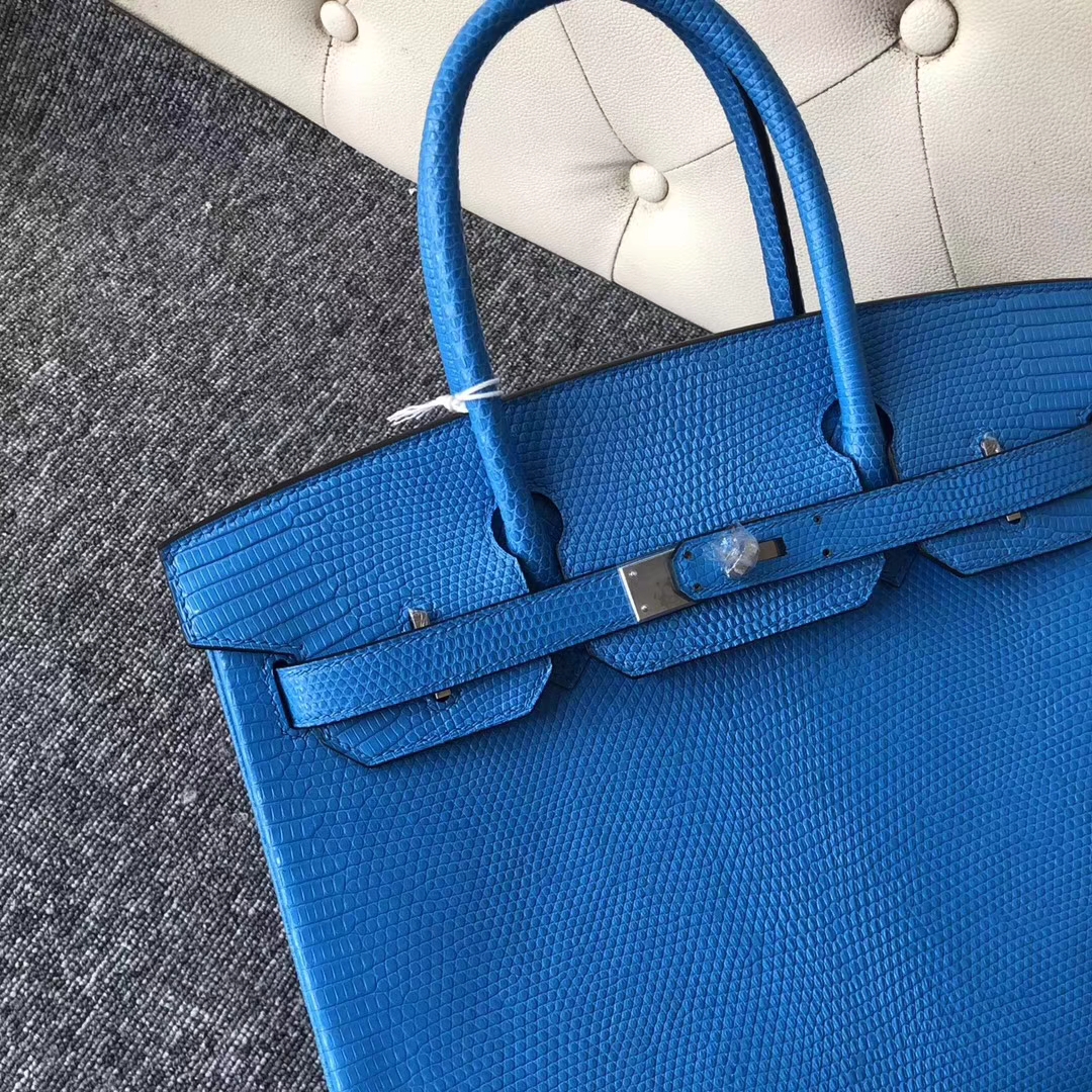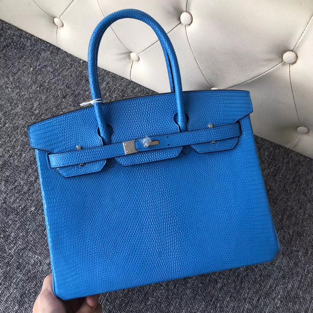 Hermès(爱马仕)Birkin铂金包 Lizard 御用进口蜥蜴皮 7W伊兹密尔蓝 银扣 30cm 2019年7月30日 0 【鳄鱼世家】www.Eyubao.com Birkin 30 Birkin 铂金包 品牌:Hermès(爱马仕);类别:Birkin 铂金包;颜色:伊兹密尔蓝;材质:御用进口蜥蜴皮;等级:顶级;附件:全套包装礼盒;尺寸:30cm;功能:手提单肩包