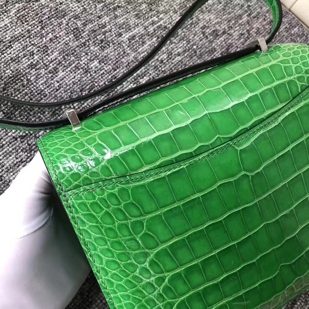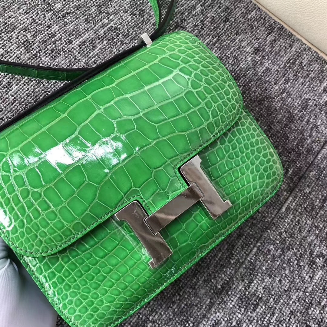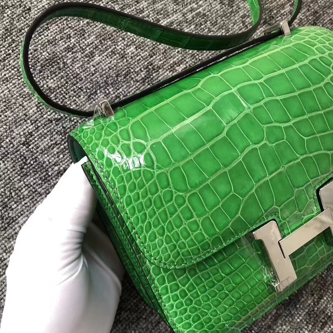 Hermès(爱马仕)Comstance空姐包 Alligator shiny 亮面鳄鱼 1T 仙人掌绿 银扣 18cm 2019年7月30日 0 【鳄鱼世家】www.Eyubao.com Constance 18 Constance 空姐包 品牌:Hermès(爱马仕);类别:Constance 空姐包;颜色:仙人掌绿;材质:亮面鳄鱼;等级:顶级;附件:全套包装礼盒;尺寸:18cm;功能:单肩背包