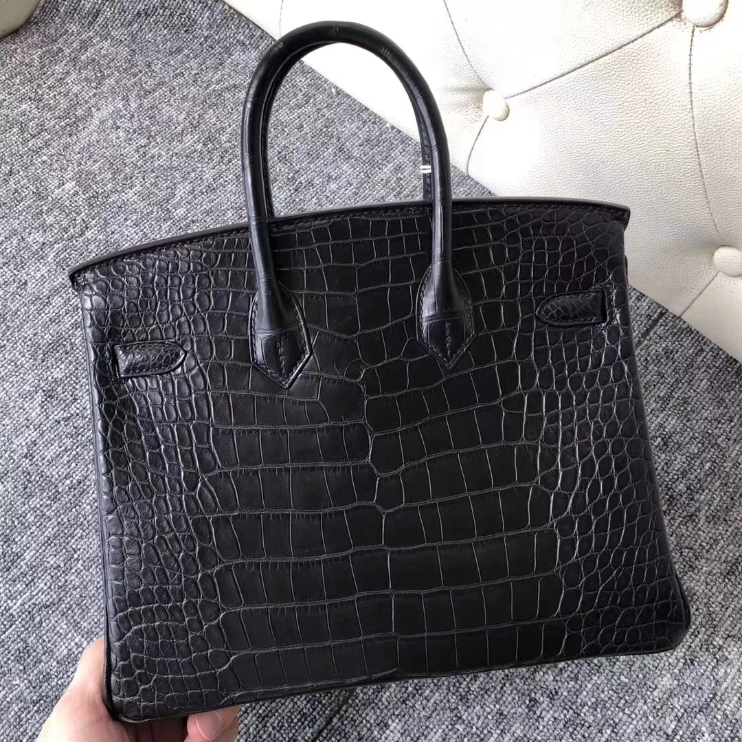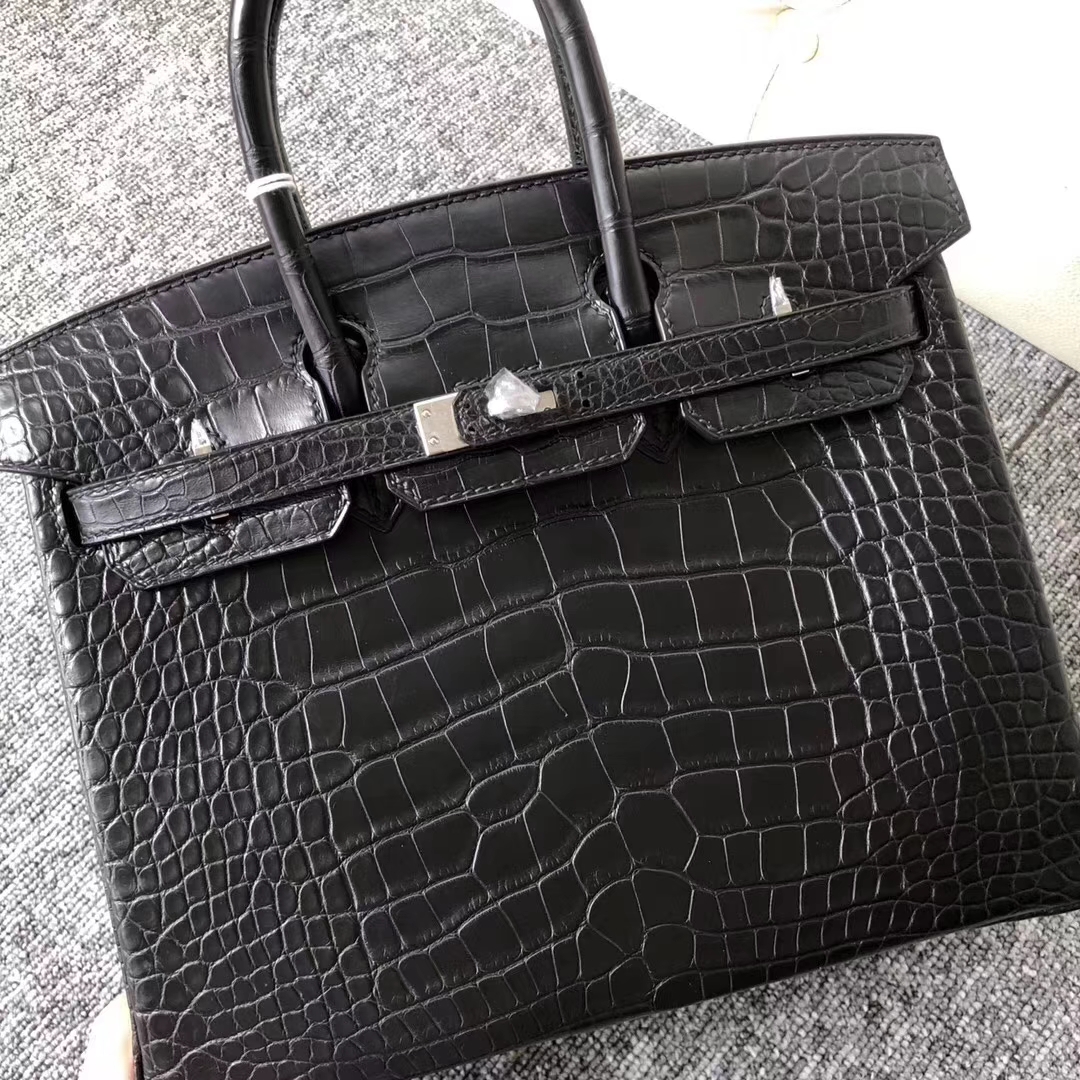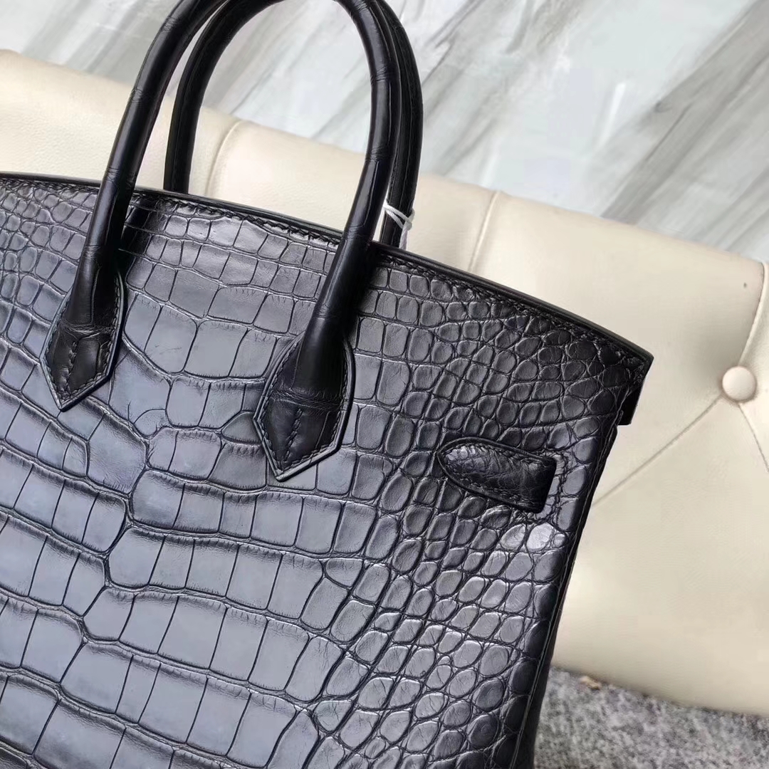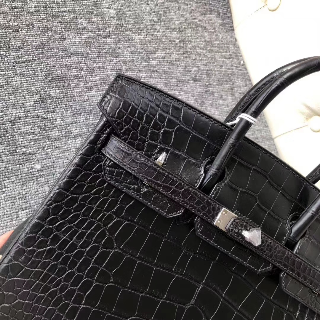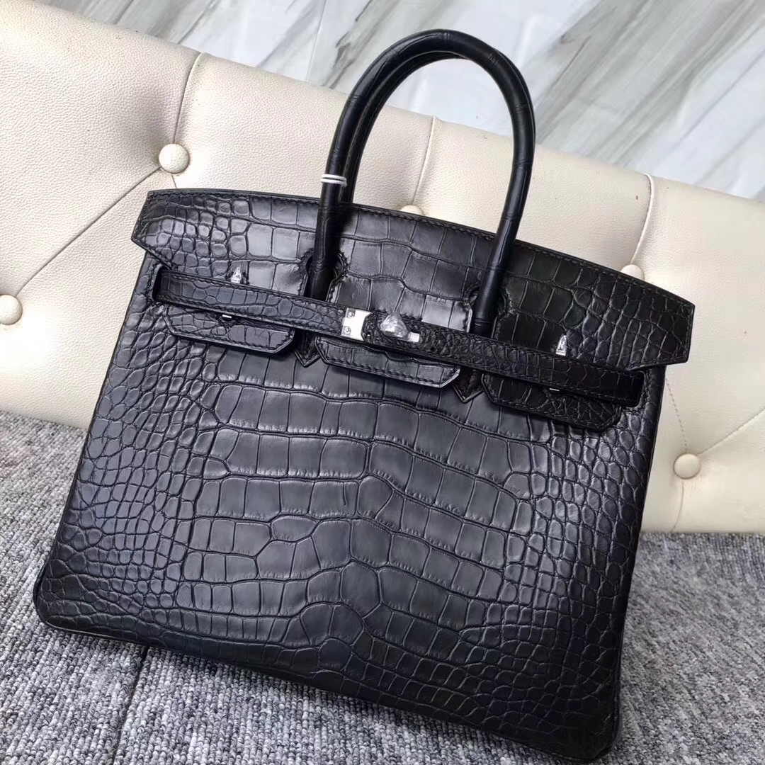 Hermès(爱马仕)Birkin铂金包 Alligator matt雾面鳄鱼 ck89 黑色 noir 银扣 25cm 2019年8月9日 0 【鳄鱼世家】www.Eyubao.com Birkin 25 Birkin 铂金包 品牌:Hermès(爱马仕);类别:Birkin 铂金包;颜色:黑色;材质:雾面鳄鱼;等级:顶级;附件:全套包装礼盒;尺寸:25cm;功能:手提单肩包