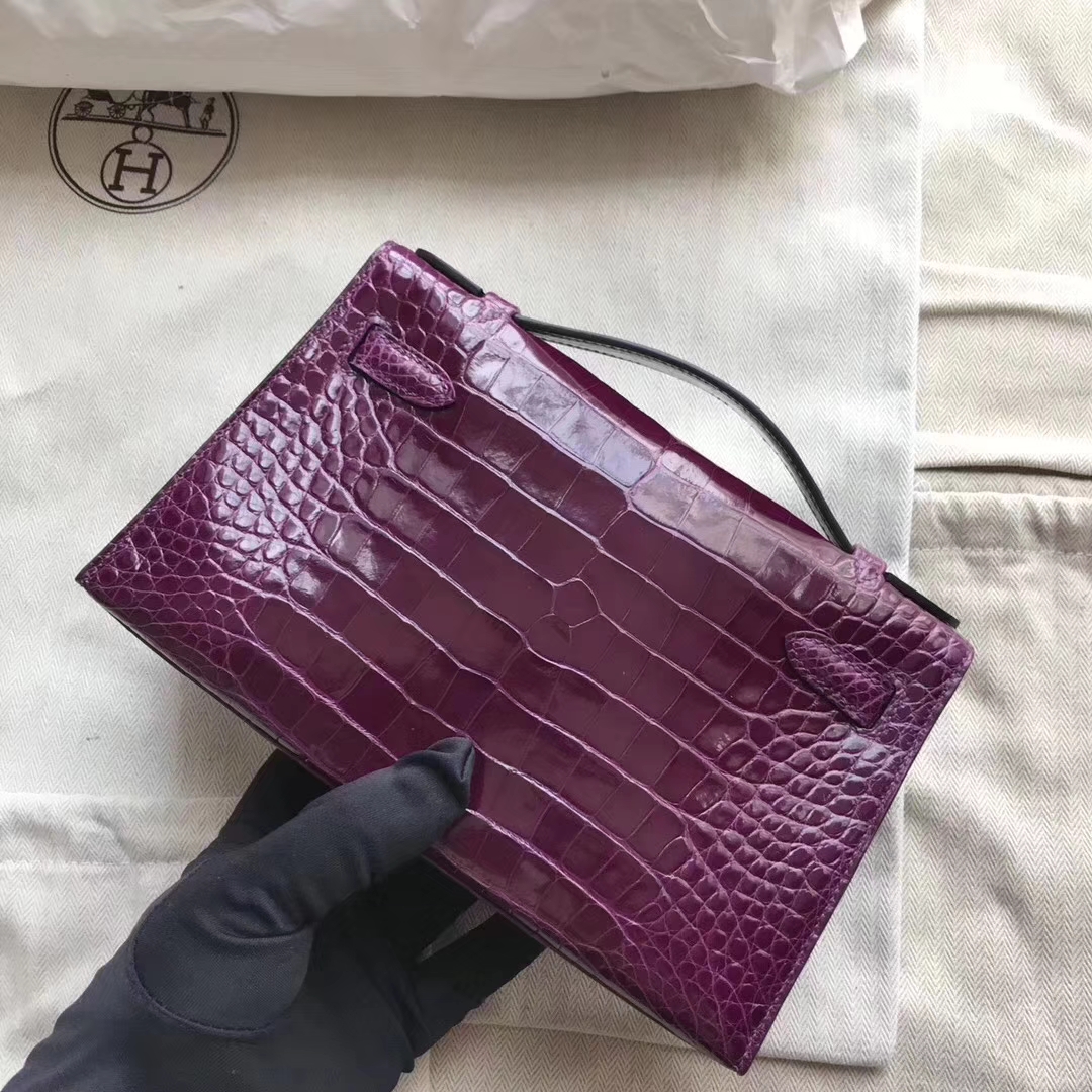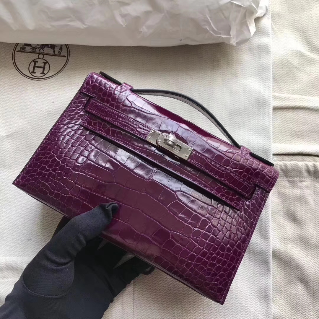 Hermès(爱马仕)Minikelly pochette 22cm Alligator shiny N5加仑紫 银扣 2019年8月9日 0 【鳄鱼世家】www.Eyubao.com Mini Kelly 1 Mini Kelly 迷你凯莉 品牌:Hermès(爱马仕);类别:Mini Kelly迷你凯莉包;颜色:加仑紫;材质:亮面鳄鱼;等级:顶级;附件:全套包装礼盒;尺寸:22cm;功能:手提单肩包
