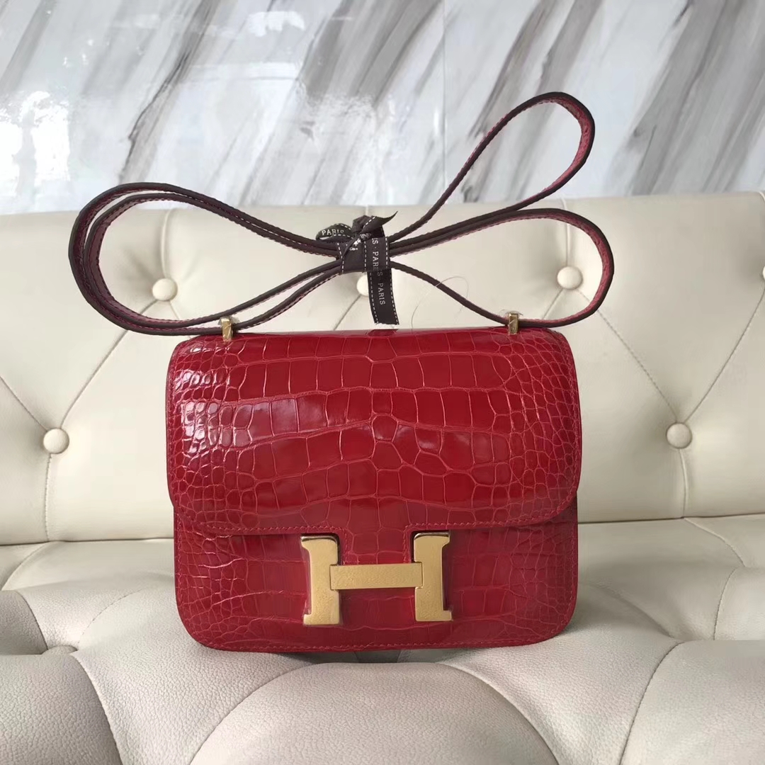 Constance 18 Constance 空姐包 Hermès(爱马仕)Constance18cm Alligator shiny 亮面鳄鱼 ck95 法拉利红 Graphite 金扣 2018年12月18日 0