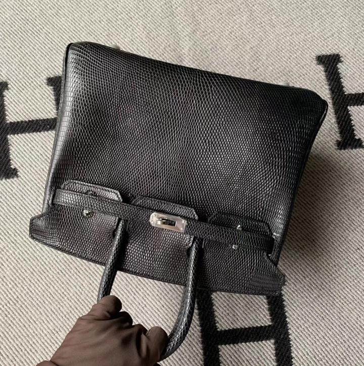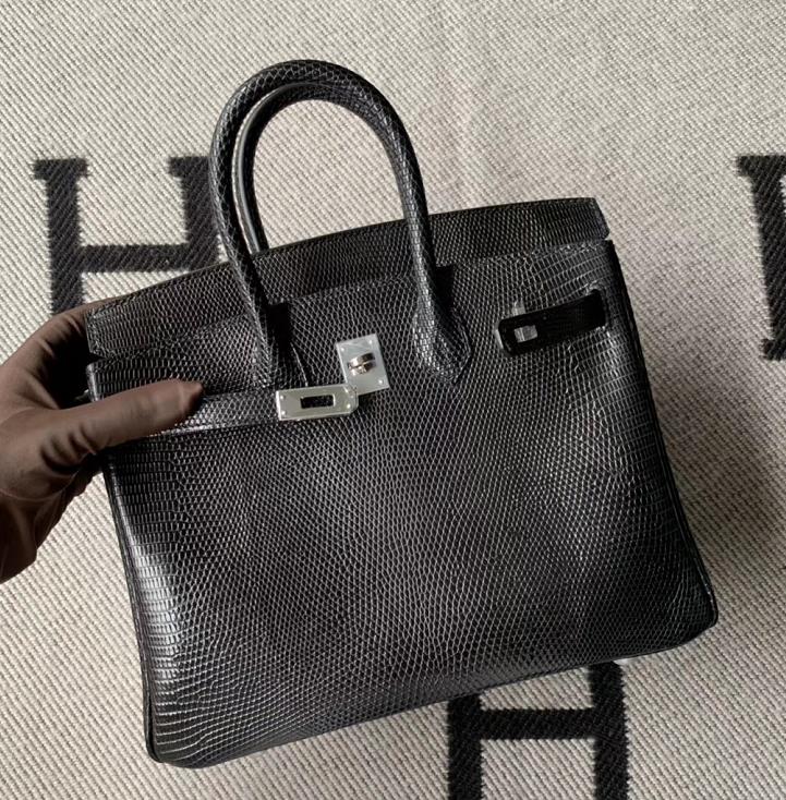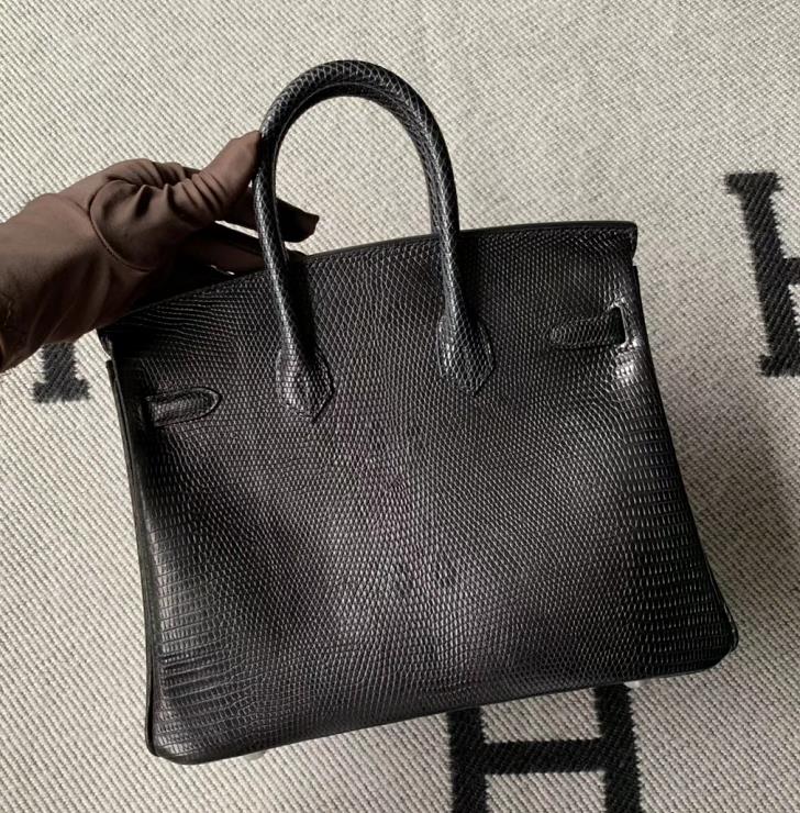 Hermès(爱马仕)Birkin铂金包 黑色 精选顶级蜥蜴皮 银扣 25cm 2019年8月22日 0 【鳄鱼世家】www.Eyubao.com Birkin 25 Birkin 铂金包 品牌:Hermès(爱马仕);类别:Birkin 铂金包;颜色:黑色;材质:精选顶级蜥蜴皮;等级:顶级;附件:全套包装礼盒;尺寸:25cm;功能:手提单肩包