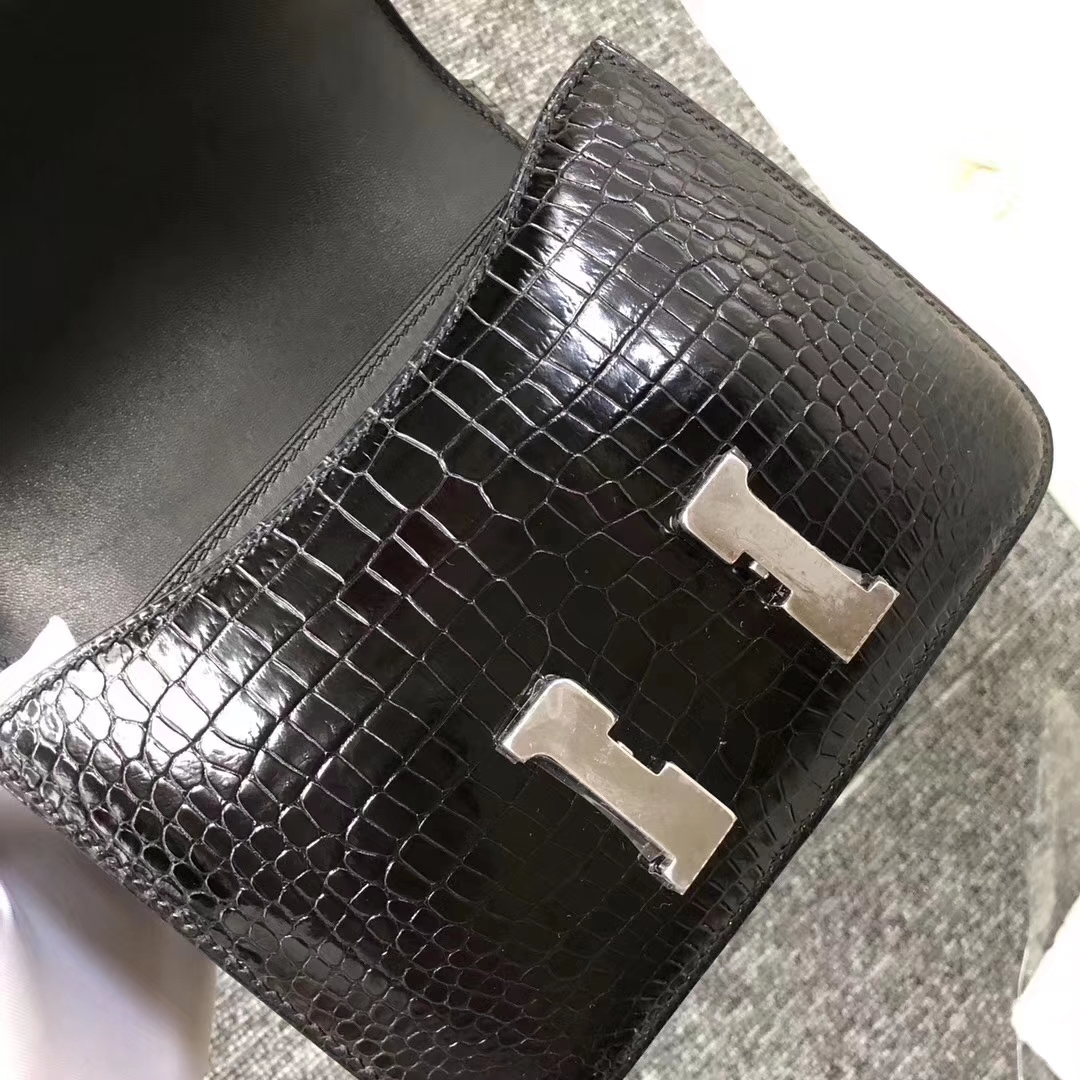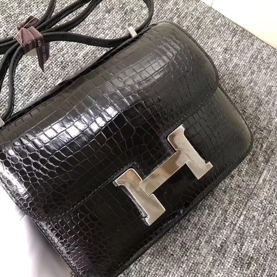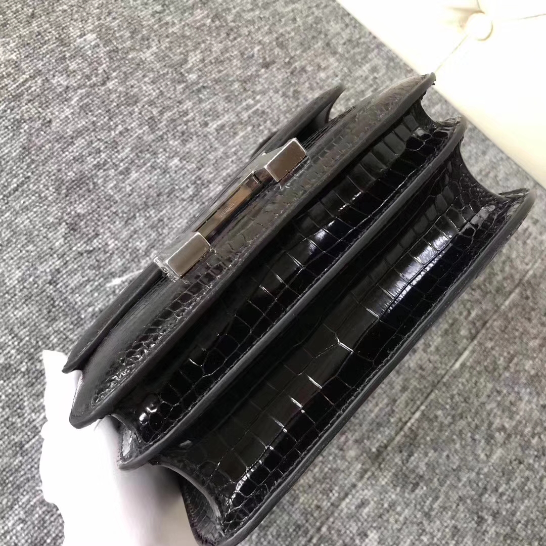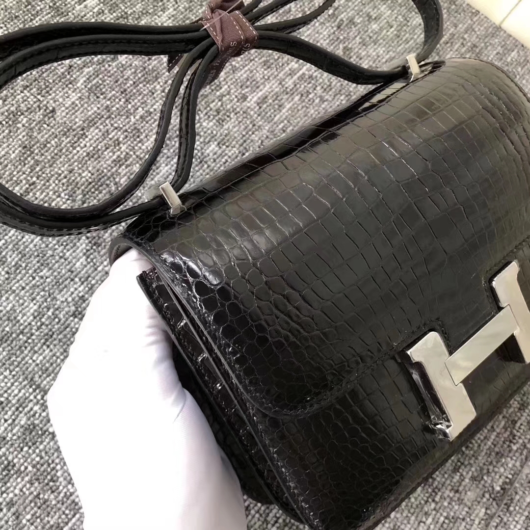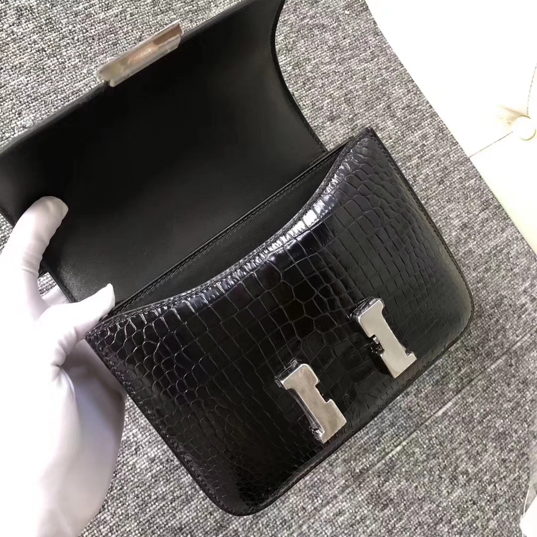 Hermès(爱马仕)Constance空姐包 Porosus shiny 亮面鳄鱼 ck89 黑色 noir 银扣 18cm 2019年8月29日 0 【鳄鱼世家】www.Eyubao.com Constance 18 Constance 空姐包 品牌:Hermès(爱马仕);类别:Constance 空姐包;颜色:黑色;材质:亮面鳄鱼;等级:顶级;附件:全套包装礼盒;尺寸:18cm;功能:单肩背包
