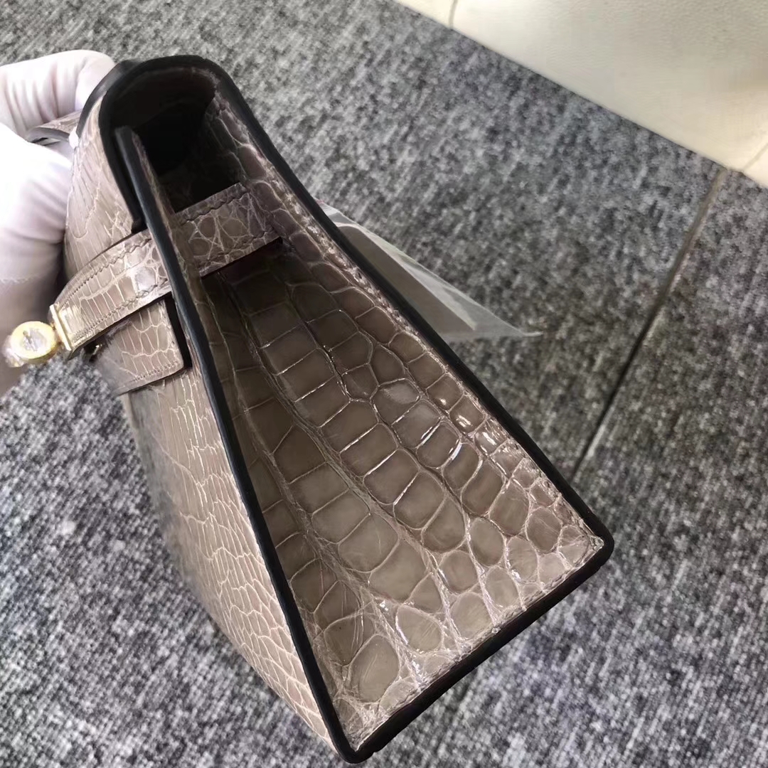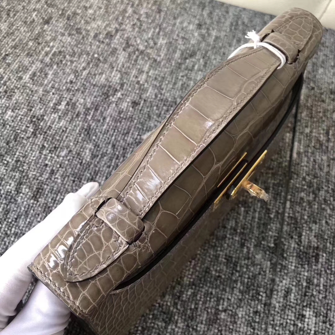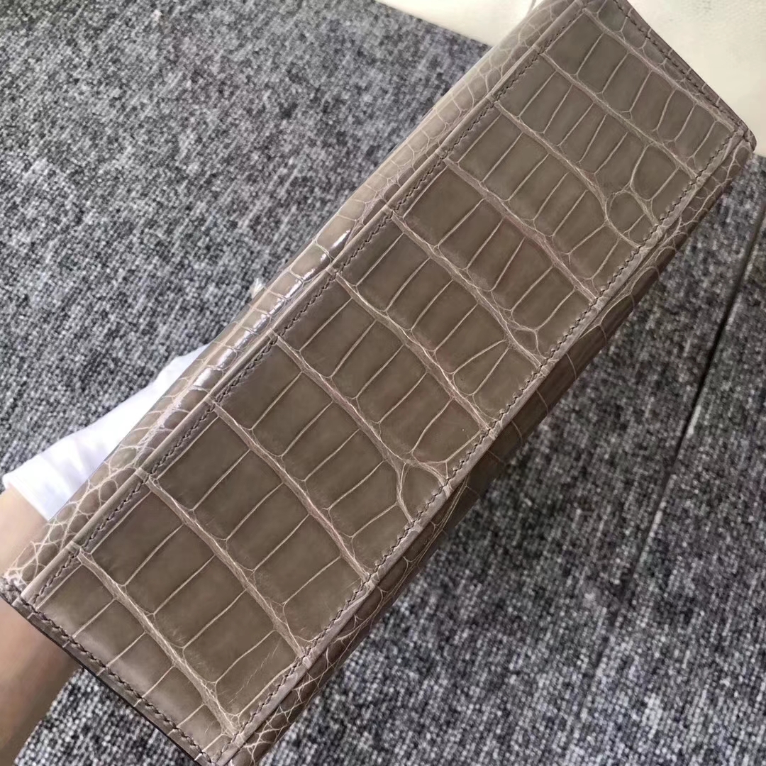 Hermès(爱马仕)MiniKelly 22cm Shiny alligator crocodile 亮面方块 美洲鳄鱼 CK81 斑鸠灰 金扣 现货 2019年8月30日 0 【鳄鱼世家】www.Eyubao.com Mini Kelly 1 Mini Kelly 迷你凯莉 品牌:Hermès(爱马仕);类别:Wallet 钱包;颜色:斑鸠灰;材质:亮面鳄鱼 Shiny crocodile;等级:顶级;附件:全套包装礼盒;功能:钱包钱夹、手包