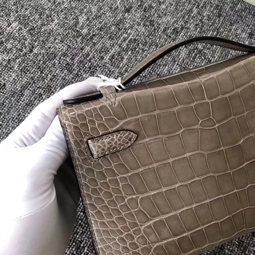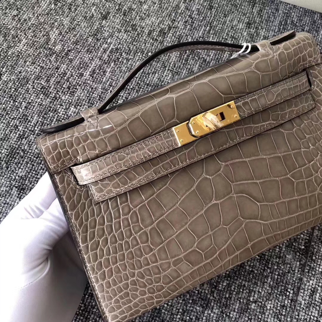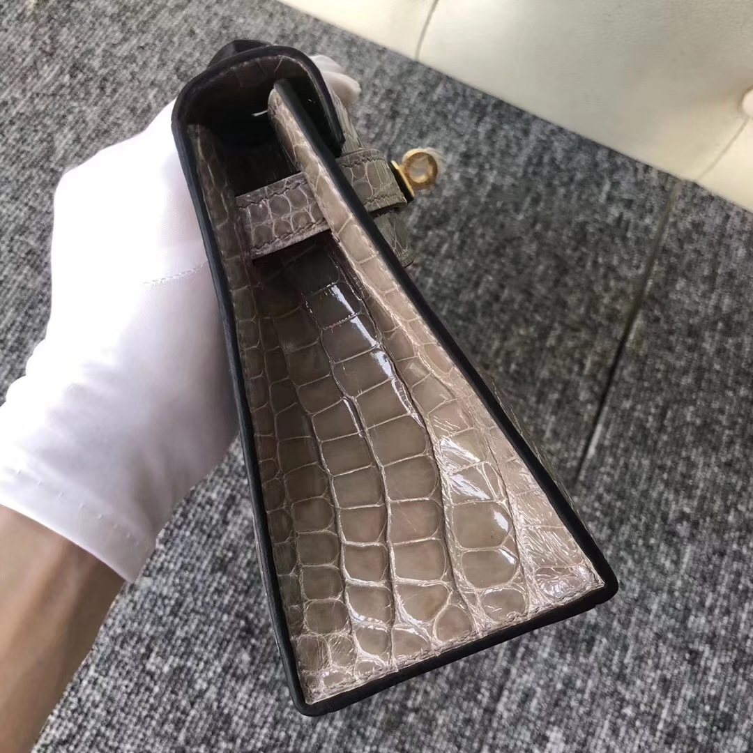 Hermès(爱马仕)MiniKelly 22cm Shiny alligator crocodile 亮面方块 美洲鳄鱼 CK81 斑鸠灰 金扣 现货 2019年8月30日 0 【鳄鱼世家】www.Eyubao.com Mini Kelly 1 Mini Kelly 迷你凯莉 品牌:Hermès(爱马仕);类别:Wallet 钱包;颜色:斑鸠灰;材质:亮面鳄鱼 Shiny crocodile;等级:顶级;附件:全套包装礼盒;功能:钱包钱夹、手包