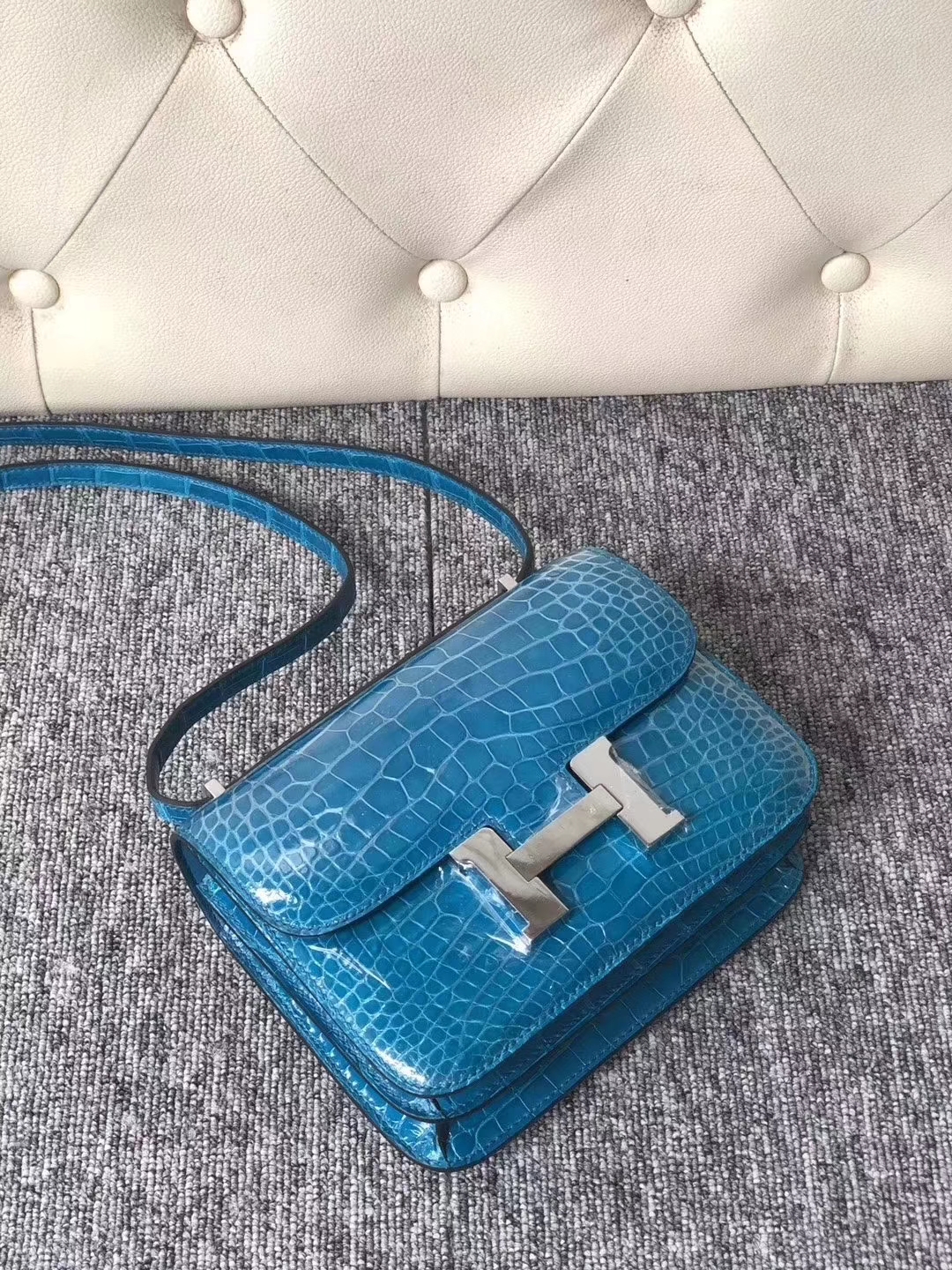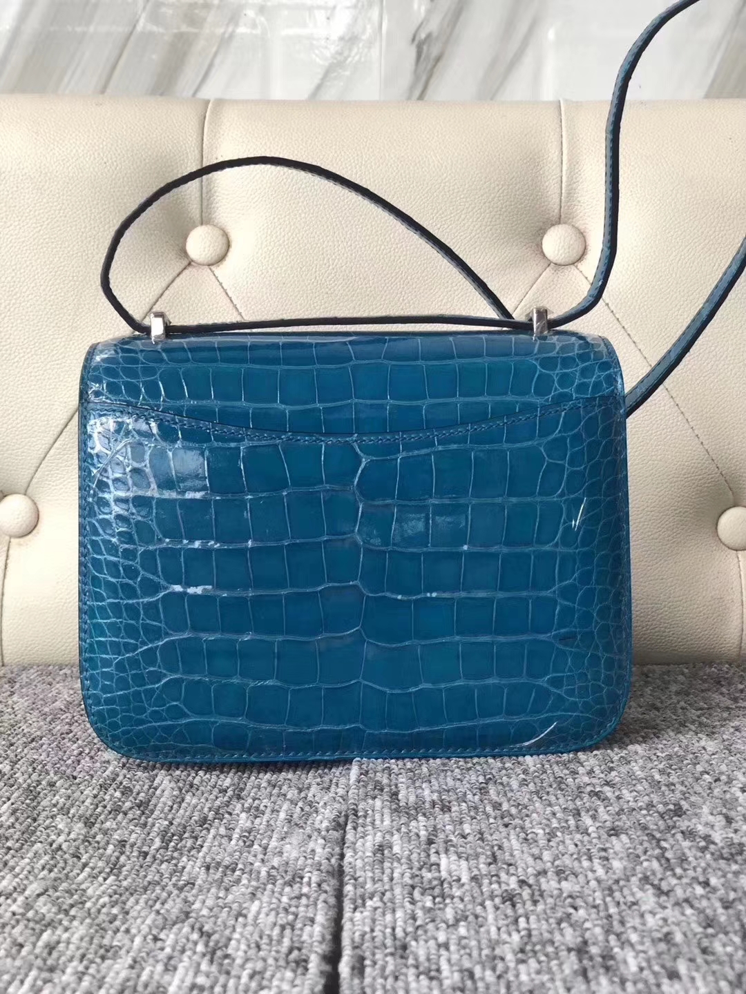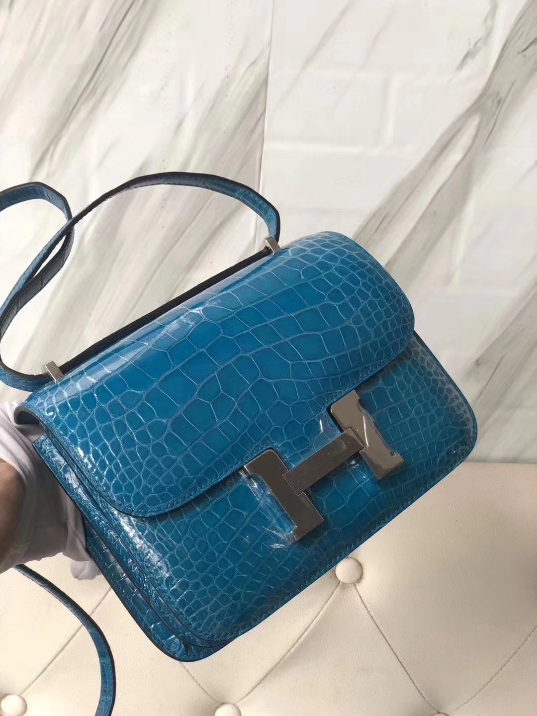 Hermès(爱马仕)Constance 空姐包 Alligator shiny 亮面鳄鱼 7w 伊兹密尔蓝 银扣 18cm 2019年9月22日 0 【鳄鱼世家】www.Eyubao.com Constance 18 Constance 空姐包 品牌:Hermès(爱马仕);类别:Constance 空姐包;颜色:伊兹密尔蓝;材质:亮面鳄鱼;等级:顶级;附件:全套包装礼盒;尺寸:18cm;功能:单肩背包