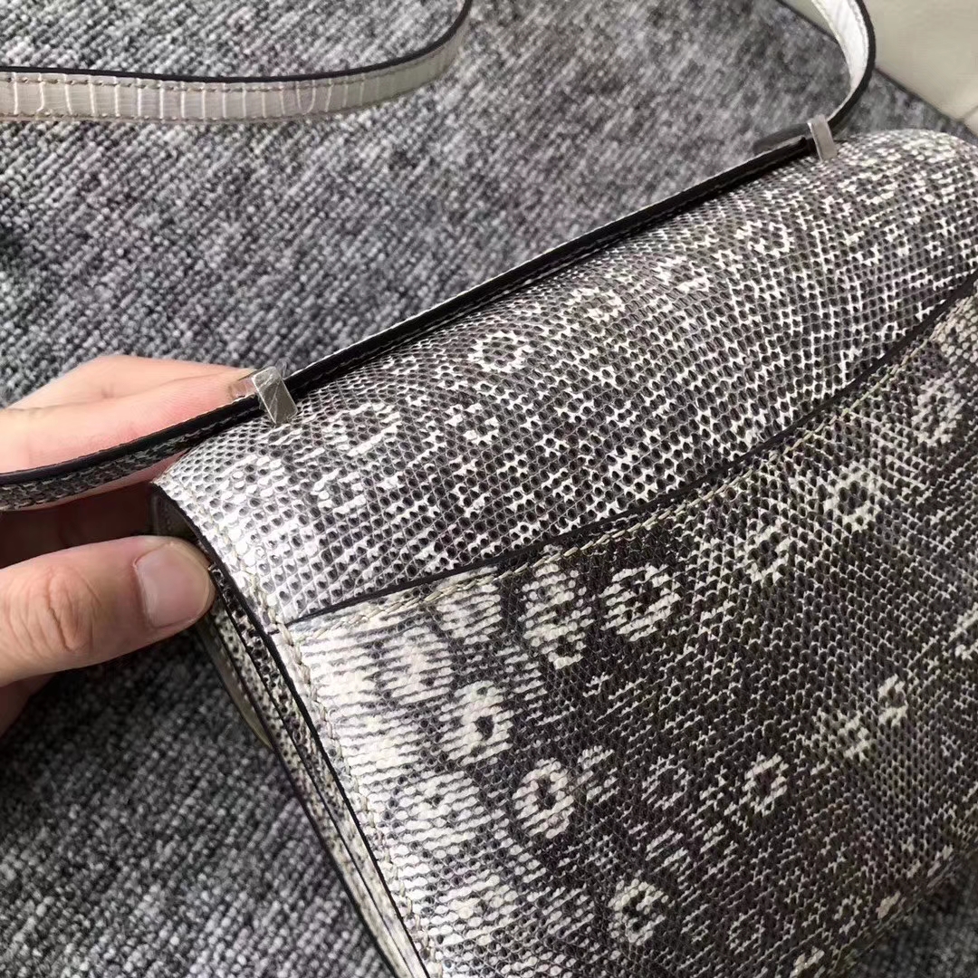 Hermès(爱马仕)Constance 空姐包 御用进口蜥蜴皮 全手工蜜蜡线缝 01自然色蜥蜴 银扣 19cm 现货 2019年9月25日 0 【鳄鱼世家】www.Eyubao.com Constance 19 Constance 空姐包 品牌:Hermès(爱马仕);类别:Constance 空姐包;颜色:奶昔粉;材质:御用进口蜥蜴皮;等级:顶级;附件:全套包装礼盒;尺寸:19cm;功能:单肩背包