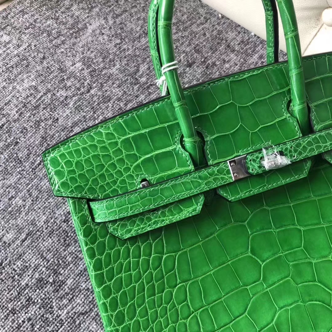 Hermès(爱马仕)Birkin 铂金包 亮面框框美洲鳄 1L仙人掌绿 顶级工艺 蜡线全手工 银扣 25cm 2019年10月13日 0 【鳄鱼世家】www.Eyubao.com Birkin 25 Birkin 铂金包 品牌:Hermès(爱马仕);类别:Birkin 铂金包;颜色:仙人掌绿;材质:亮面框框美洲鳄;等级:顶级;附件:全套包装礼盒;尺寸:25cm;功能:手提单肩包
