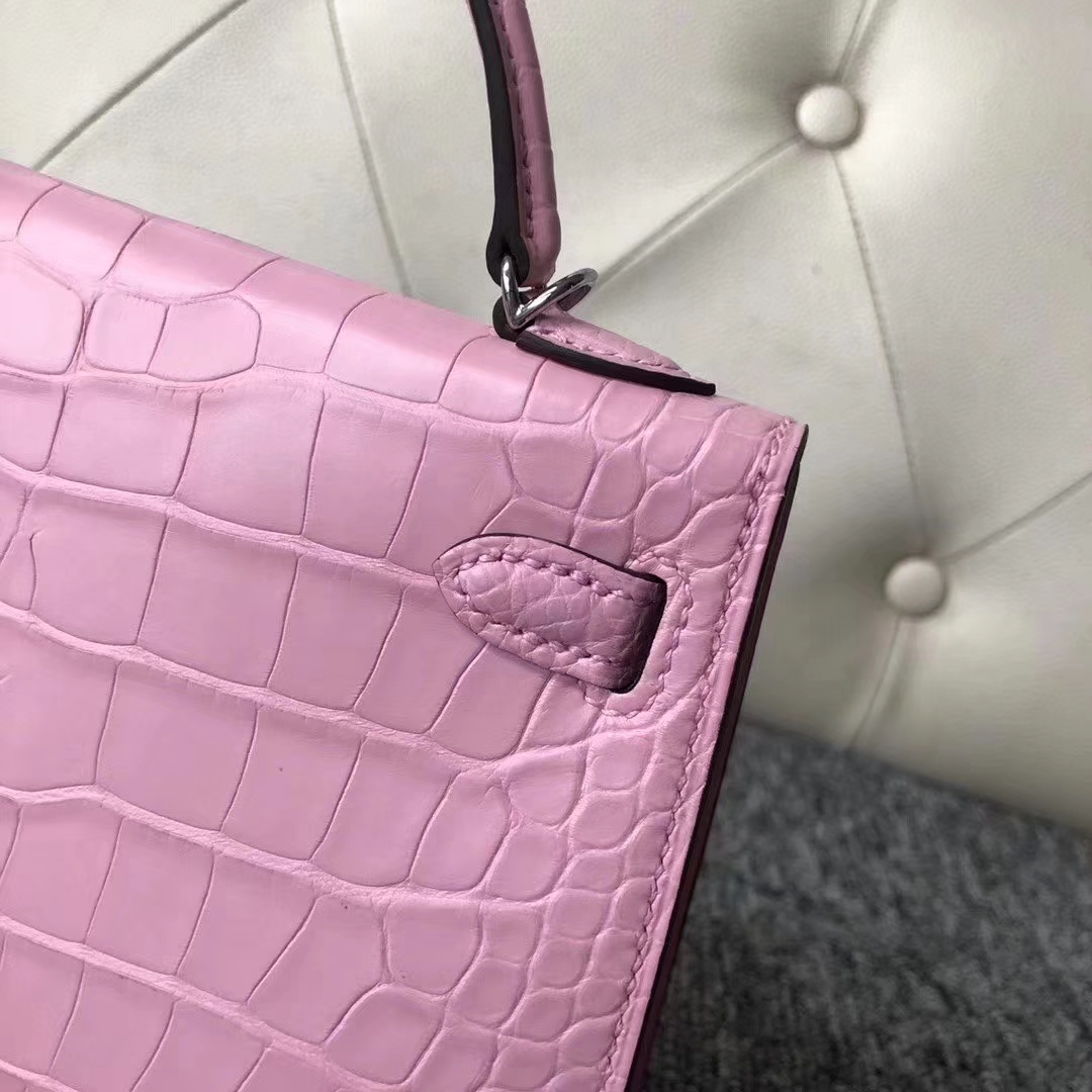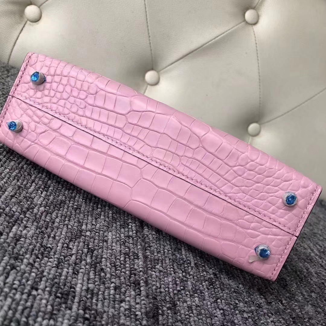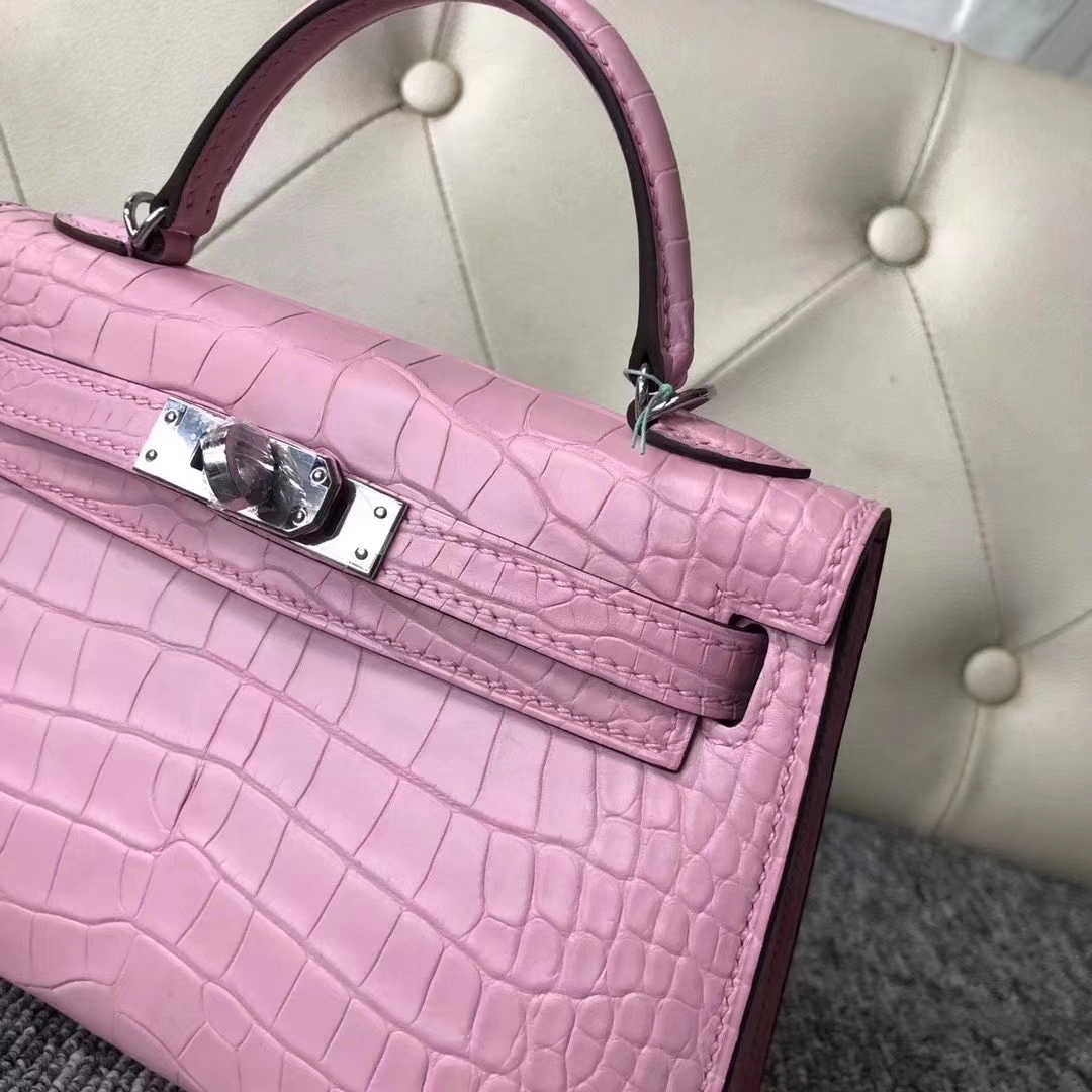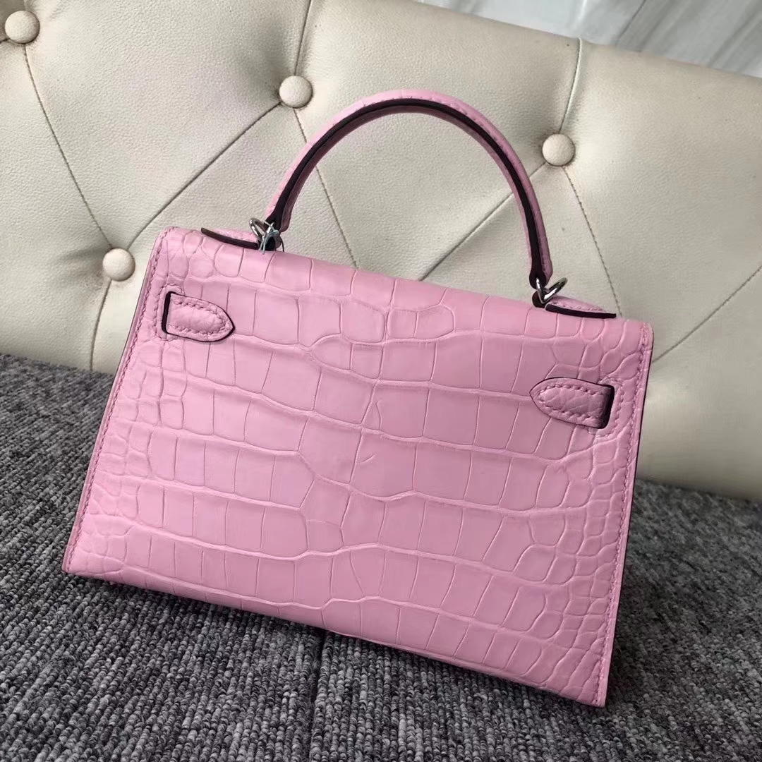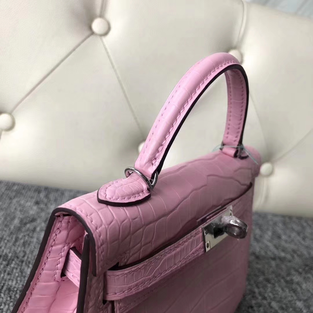 Hermès(爱马仕)Kelly 凯莉包 雾面框框美洲鳄 5P樱花粉 蜡线全手工 银扣 2代 19cm 2019年10月13日 0 【鳄鱼世家】www.Eyubao.com Mini Kelly 2 Mini Kelly 迷你凯莉 品牌:Hermès(爱马仕);类别:Mini Kelly迷你凯莉包;颜色:樱花粉;材质:雾面框框美洲鳄;等级:顶级;附件:全套包装礼盒;尺寸:19cm;功能:手提单肩包
