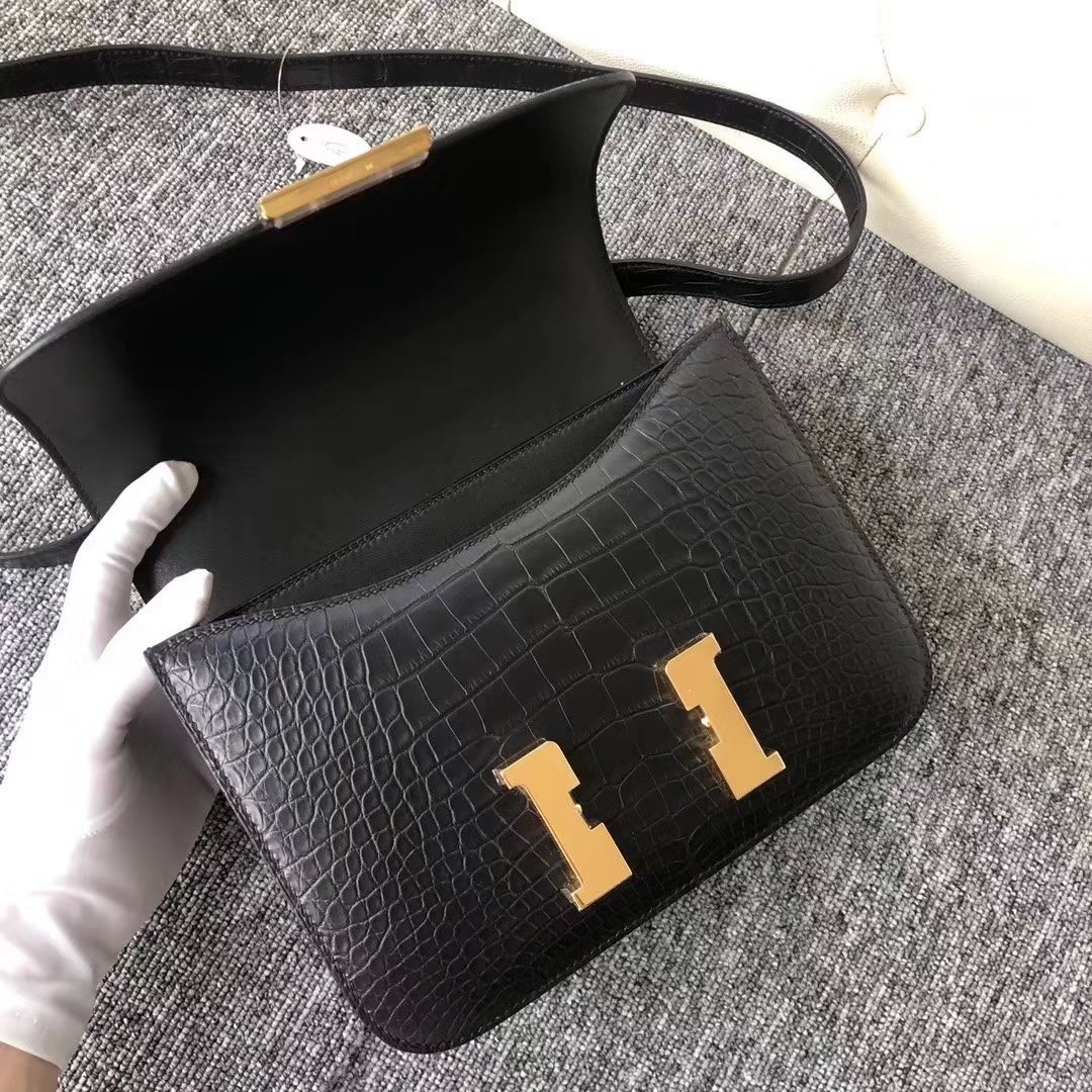 Hermès(爱马仕)Constance 空姐包 雾面框框美洲鳄 ck89黑色 23cm 顶级工艺 接受预定 2019年10月16日 0 【鳄鱼世家】www.Eyubao.com Constance 24 Constance 空姐包 品牌:Hermès(爱马仕);类别:Constance 空姐包;颜色:黑色;材质:雾面框框美洲鳄;等级:顶级;附件:全套包装礼盒;尺寸:23cm;功能:单肩背包