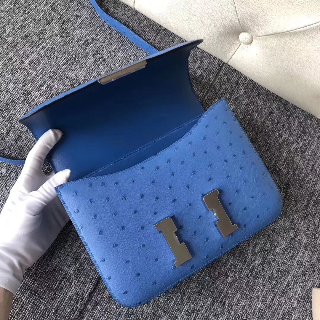 Hermès(爱马仕)Constance 空姐包 ostrich kk鸵鸟 7Q希腊蓝 蜡线全手工 23cm 接受预定 2019年10月16日 0 【鳄鱼世家】www.Eyubao.com Constance 24 Constance 空姐包 品牌:Hermès(爱马仕);类别:Constance 空姐包;颜色:希腊蓝;材质:鸵鸟纹;等级:顶级;附件:全套包装礼盒;尺寸:23cm;功能:单肩背包