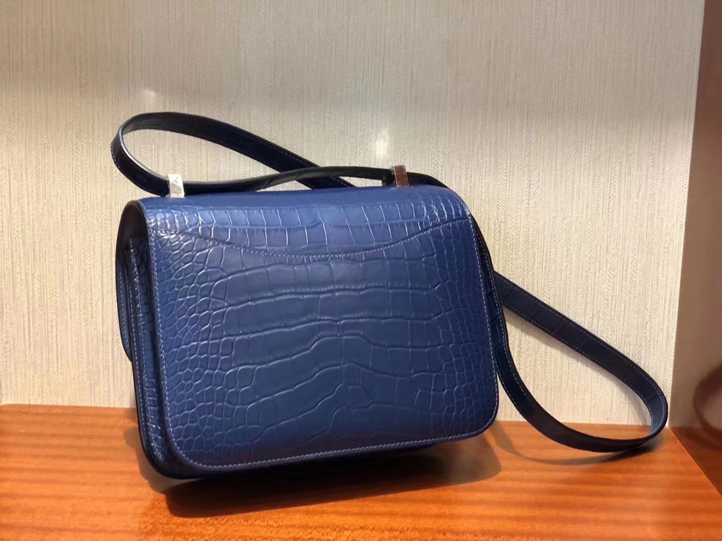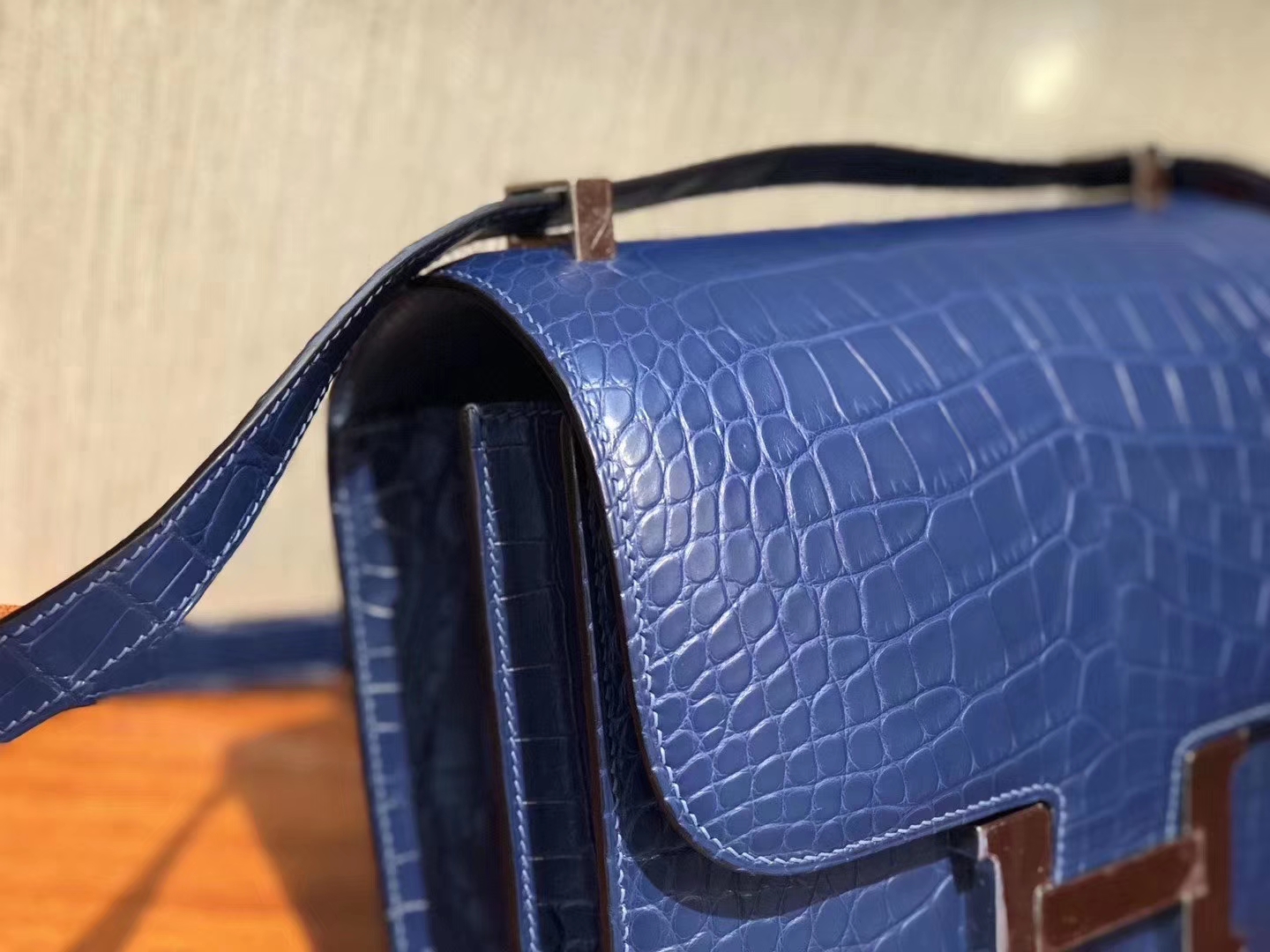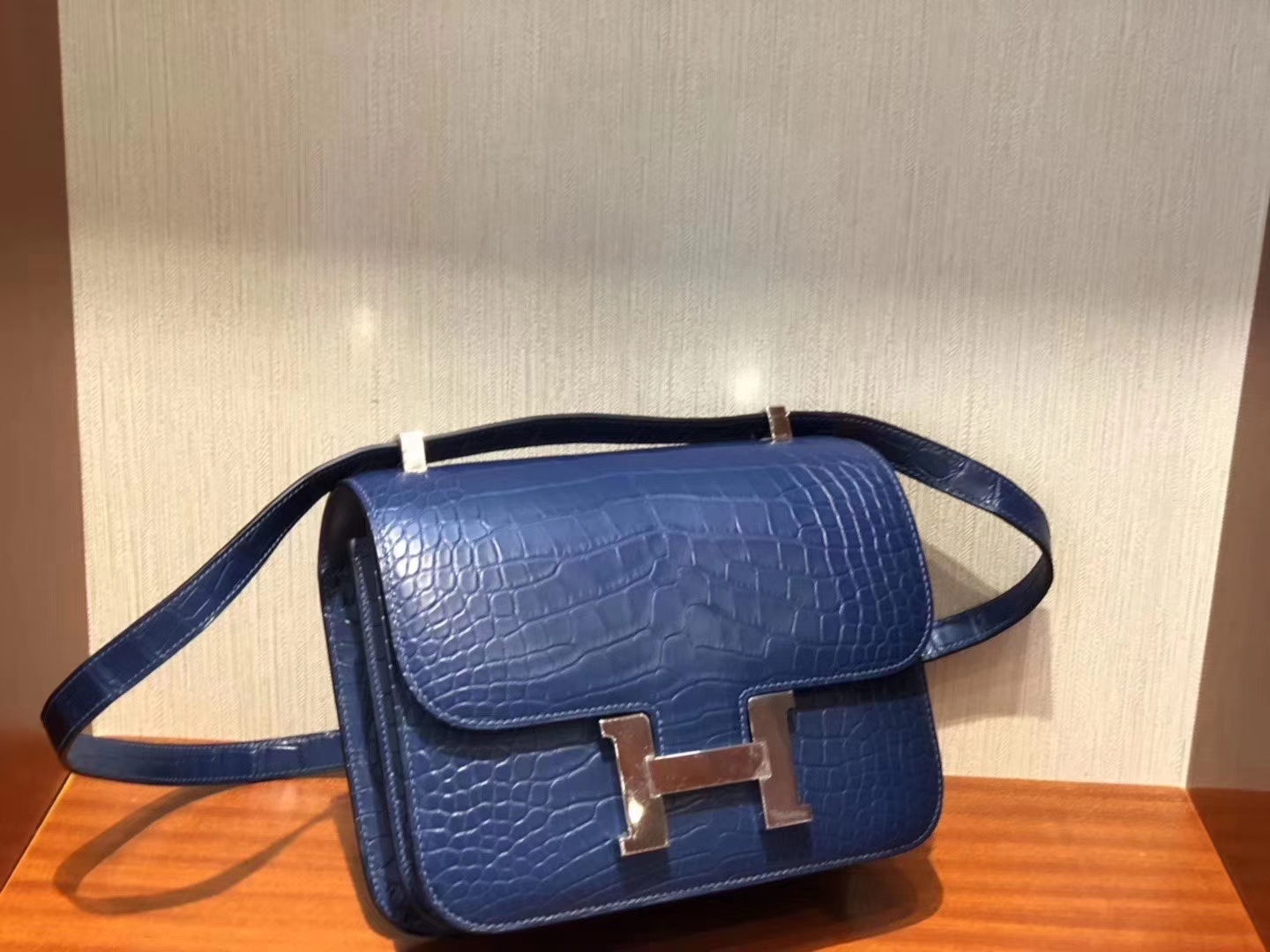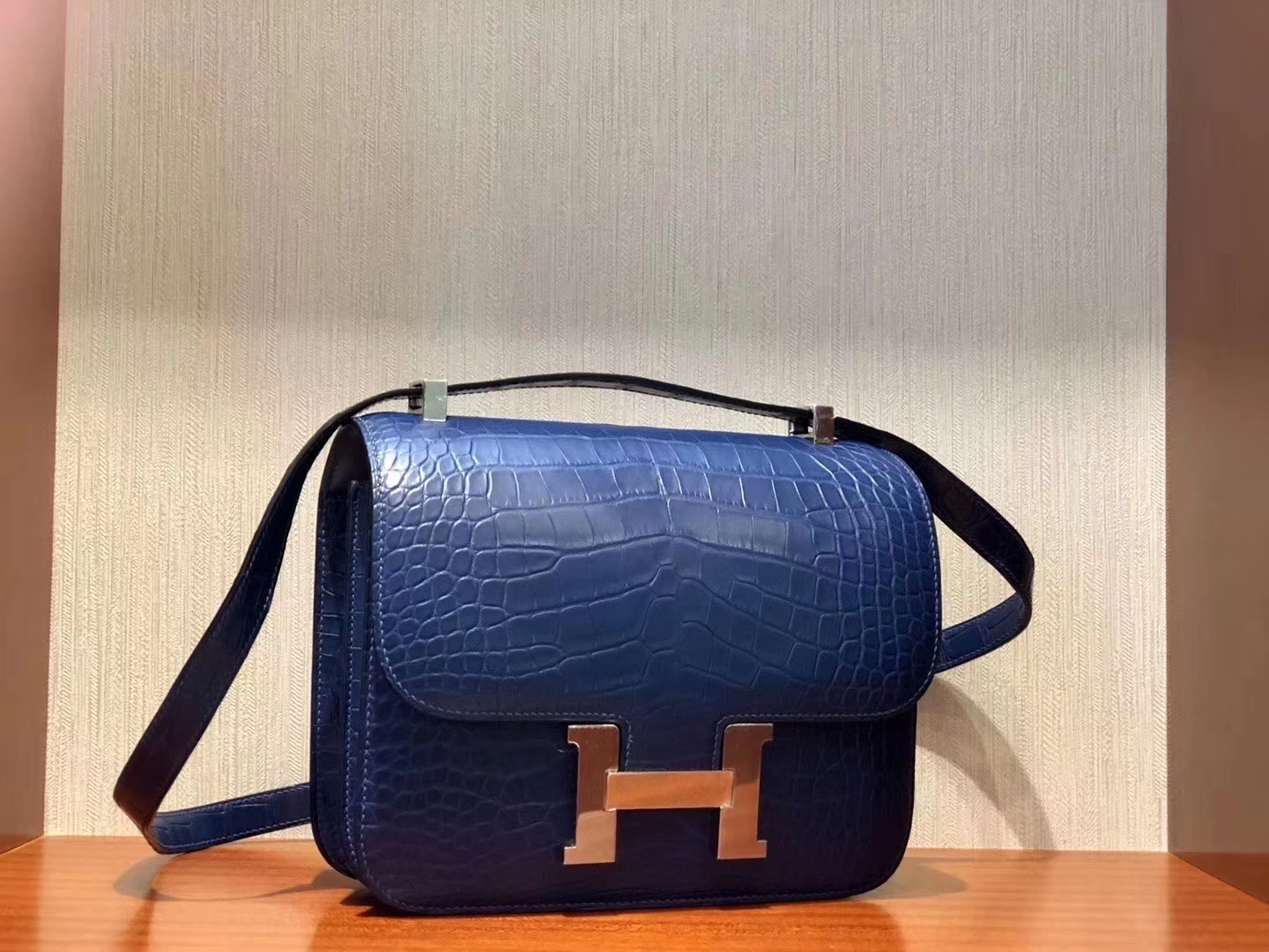 Hermès(爱马仕)Constance 空姐包 Matt crocodile 雾面美洲鳄 明蓝 23cm 2019年10月16日 0 【鳄鱼世家】www.Eyubao.com Constance 24 Constance 空姐包 品牌:Hermès(爱马仕);类别:Constance 空姐包;颜色:明蓝;材质:雾面美洲鳄;等级:顶级;附件:全套包装礼盒;尺寸:23cm;功能:单肩背包
