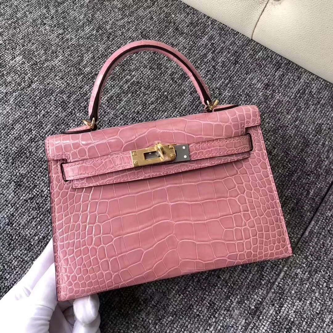 Mini Kelly 2 Mini Kelly 迷你凯莉 Hermès(爱马仕)Minikelly迷你凯莉 Alligator shiny 亮面鳄鱼 奶昔粉 金扣 超美现货 2代 2019年7月30日 0
