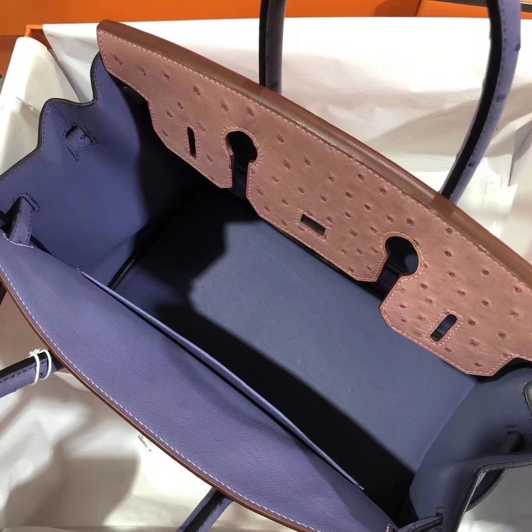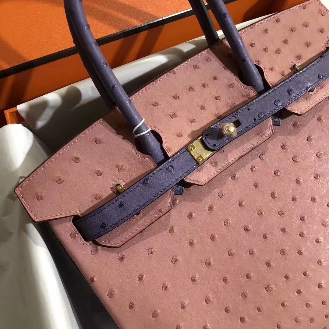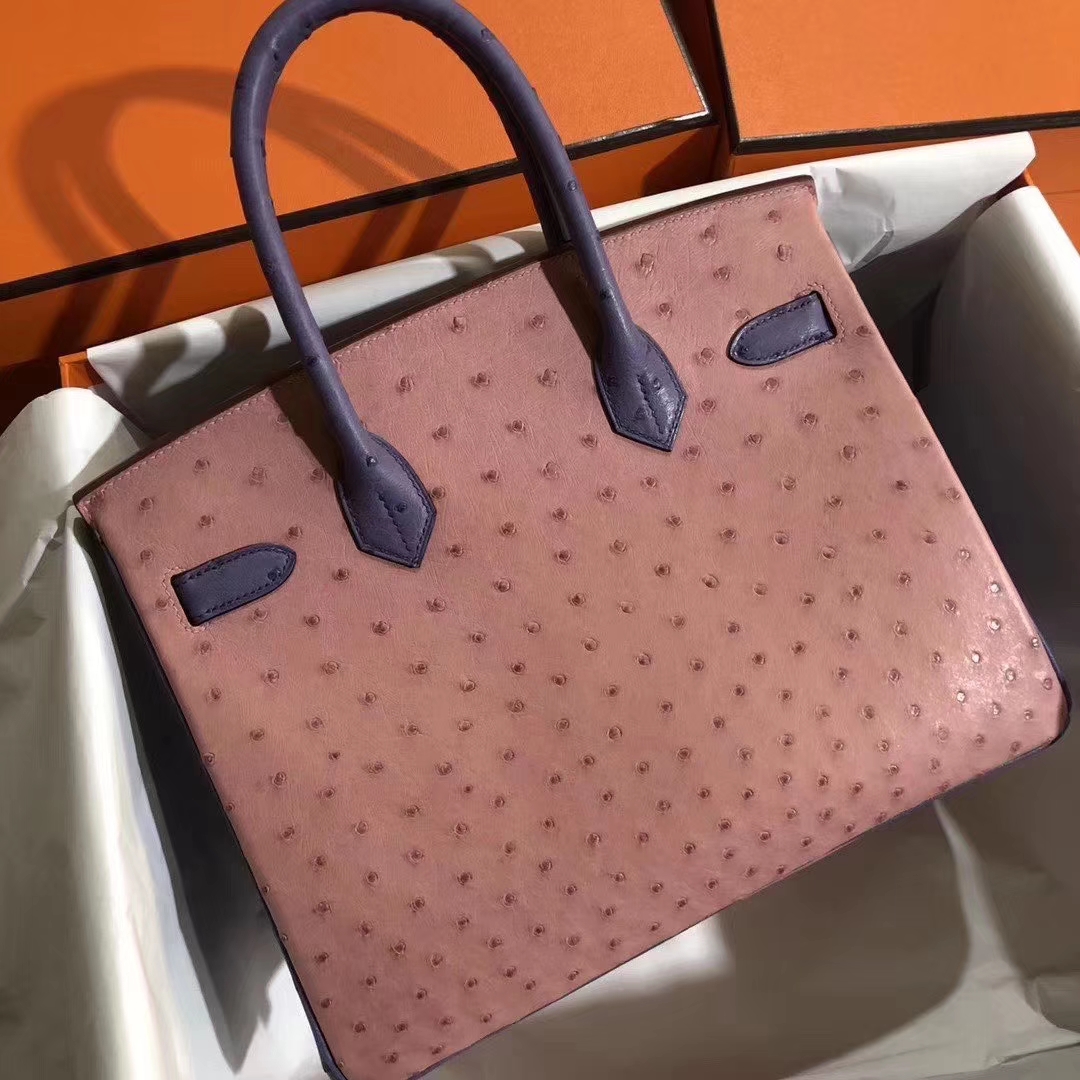 Hermès(爱马仕)Birkin 铂金包 30cm Ostrich kk 鸵鸟 cc94陶瓷粉明+蓝色 金扣 马蹄印 2019年10月30日 0 【鳄鱼世家】www.Eyubao.com Birkin 30 Birkin 铂金包 品牌:Hermès(爱马仕);类别:Birkin 铂金包;颜色:陶瓷粉明+蓝色;材质:鸵鸟皮;等级:顶级;附件:全套包装礼盒;尺寸:30cm;功能:手提单肩包