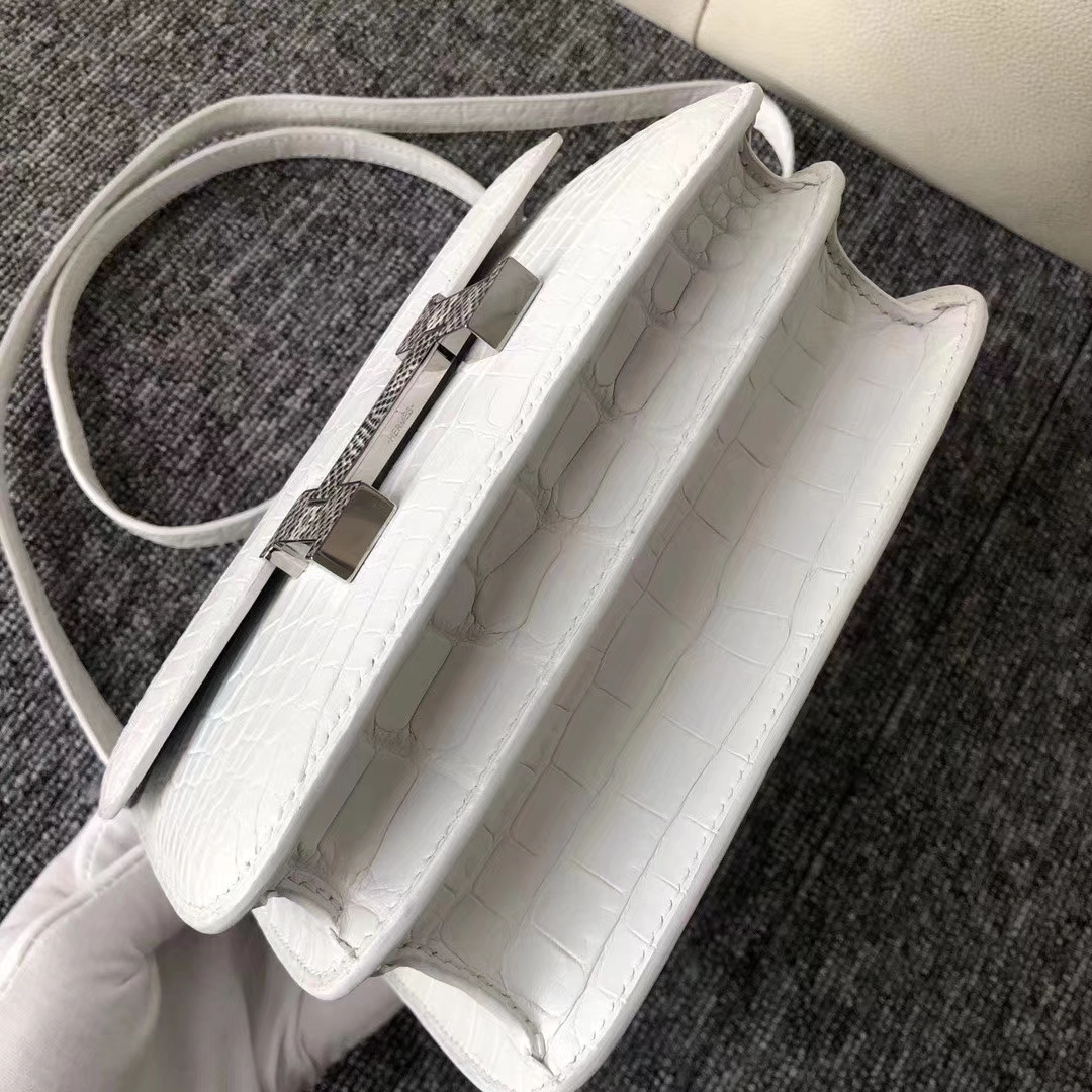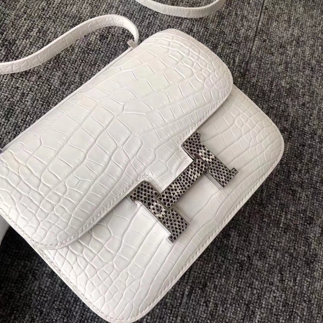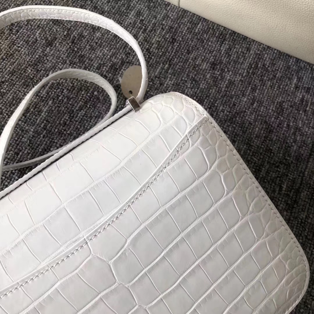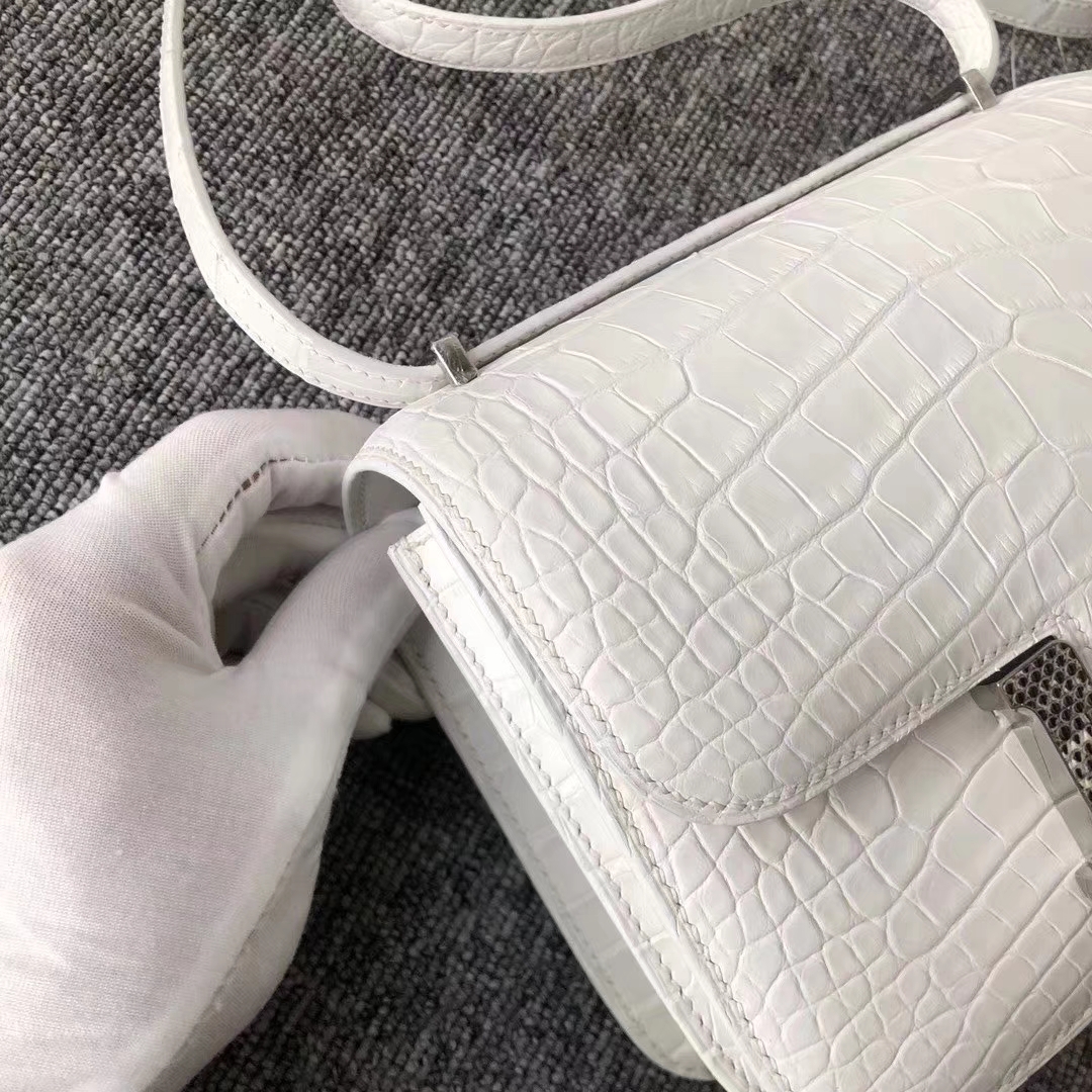 Hermès(爱马仕)Constance 空姐包 雾面美洲鳄 01纯白 配蜥蜴扣 蜡线全手工 接受预定 19cm 2019年11月7日 0 【鳄鱼世家】www.Eyubao.com Constance 19 Constance 空姐包 品牌:Hermès(爱马仕);类别:Constance 空姐包;颜色:纯白 配蜥蜴扣;材质:雾面美洲鳄;等级:顶级;附件:全套包装礼盒;尺寸:19cm;功能:单肩背包