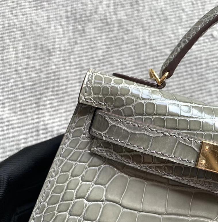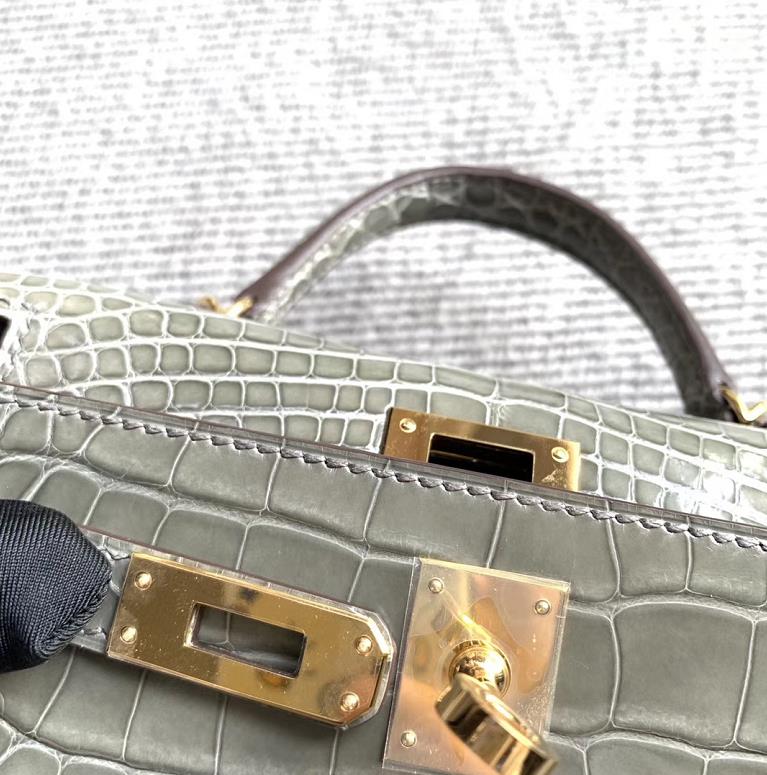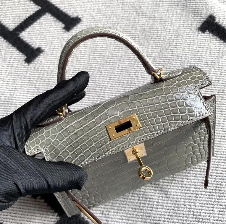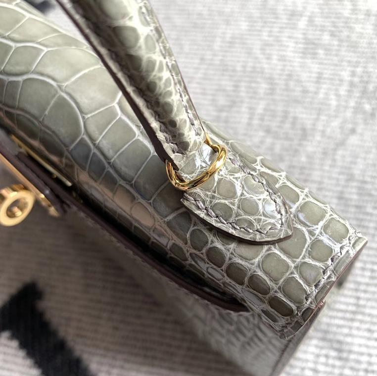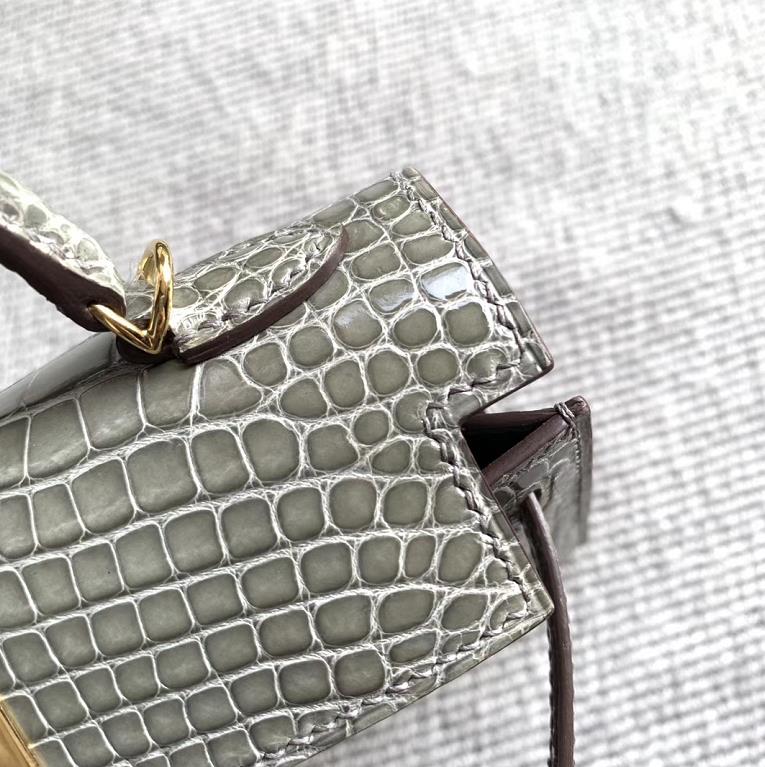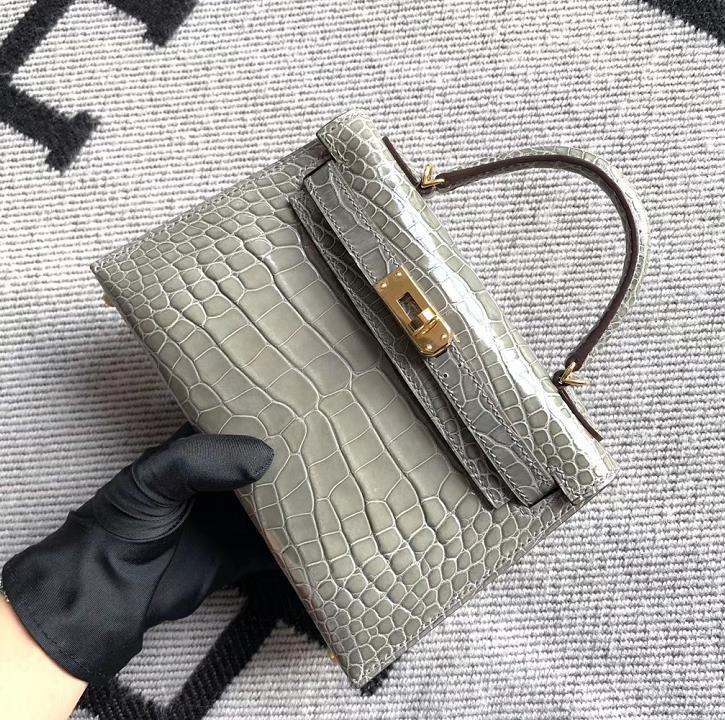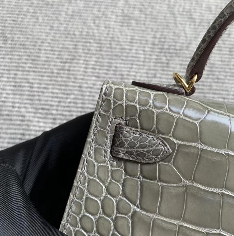 Hermès(爱马仕)Mini Kelly 迷你凯莉 斑鸠灰 亮面美洲鳄鱼 金扣 2代 2019年11月7日 0 【鳄鱼世家】www.Eyubao.com Mini Kelly 2 Mini Kelly 迷你凯莉 品牌:Hermès(爱马仕);类别:Mini Kelly迷你凯莉包;颜色:斑鸠灰;材质:亮面框框美洲鳄;等级:顶级;附件:全套包装礼盒;尺寸:20cm;功能:手提单肩包