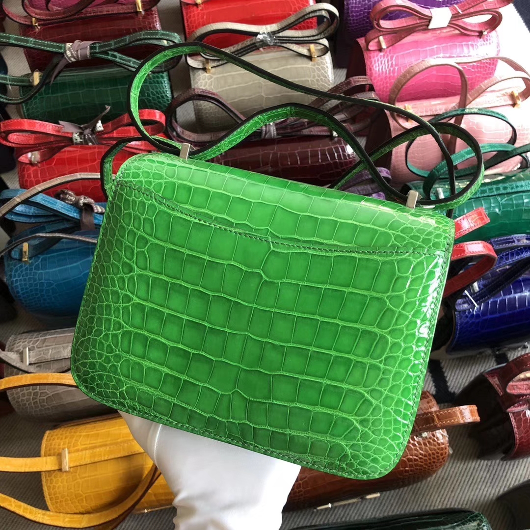 Hermès(爱马仕)Constance 空姐包 18cm Alligator shiny 亮面鳄鱼 1L 仙人掌绿 银扣 现货 2019年12月7日 0 【鳄鱼世家】www.Eyubao.com Constance 18 Constance 空姐包 品牌:Hermès(爱马仕);类别:Constance 空姐包;颜色:仙人掌绿;材质:亮面鳄鱼;等级:顶级;附件:全套包装礼盒;尺寸:18cm;功能:单肩背包