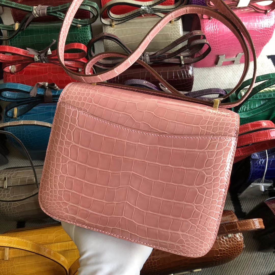 Hermès(爱马仕)Constance 空姐包 18cm Alligator shiny 亮面鳄鱼 1Q 奶昔粉 金扣 现货 2019年12月8日 0 【鳄鱼世家】www.Eyubao.com Constance 18 Constance 空姐包 品牌:Hermès(爱马仕);类别:Constance 空姐包;颜色:奶昔粉;材质:亮面鳄鱼;等级:顶级;附件:全套包装礼盒;尺寸:18cm;功能:单肩背包