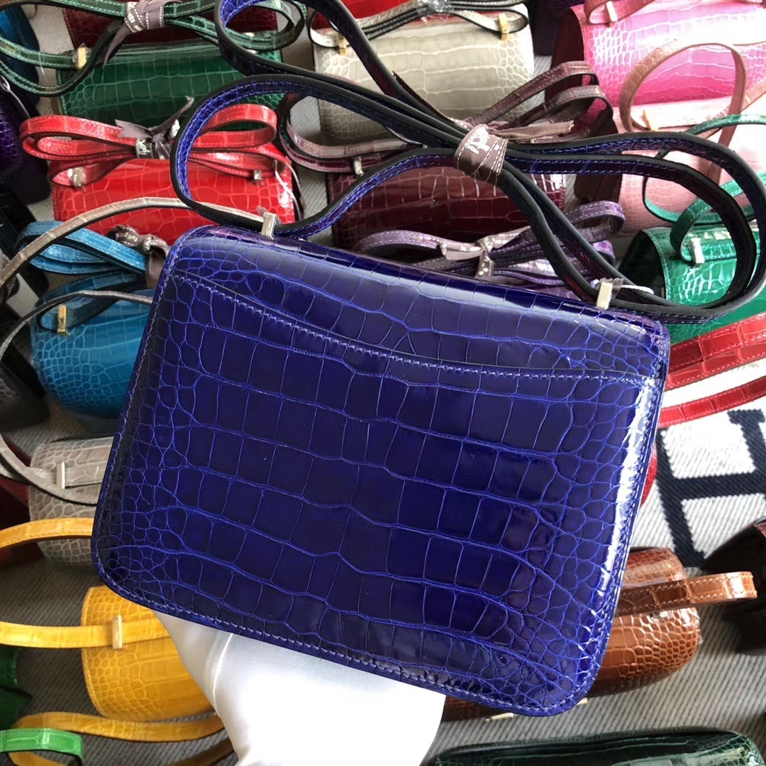 Hermès(爱马仕)Constance 空姐包 18cm Alligator shiny 亮面鳄鱼 7T 电光蓝 银扣 现货 2019年12月8日 0 【鳄鱼世家】www.Eyubao.com Constance 18 Constance 空姐包 品牌:Hermès(爱马仕);类别:Constance 空姐包;颜色:电光蓝;材质:亮面鳄鱼;等级:顶级;附件:全套包装礼盒;尺寸:18cm;功能:单肩背包