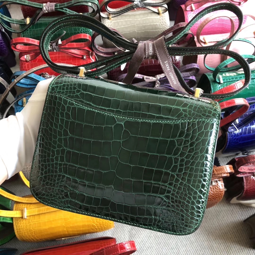 Hermès(爱马仕)Constance 空姐包 18cm Alligator shiny 亮面鳄鱼 ck67 祖母绿 金扣 现货 2019年12月8日 0 【鳄鱼世家】www.Eyubao.com Constance 18 Constance 空姐包 品牌:Hermès(爱马仕);类别:Constance 空姐包;颜色:祖母绿;材质:亮面鳄鱼;等级:顶级;附件:全套包装礼盒;尺寸:18cm;功能:单肩背包