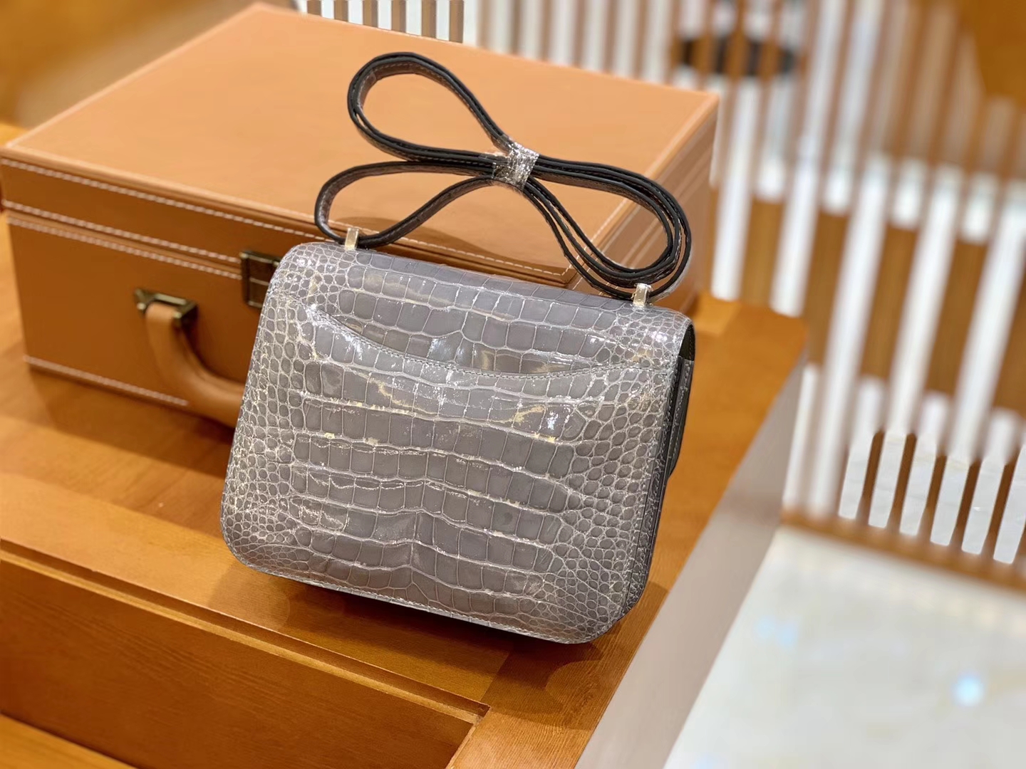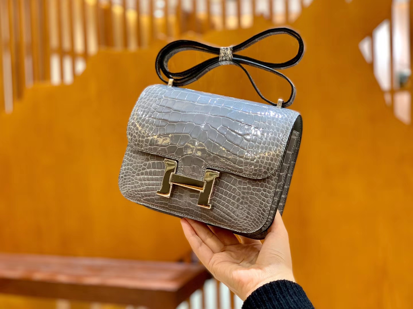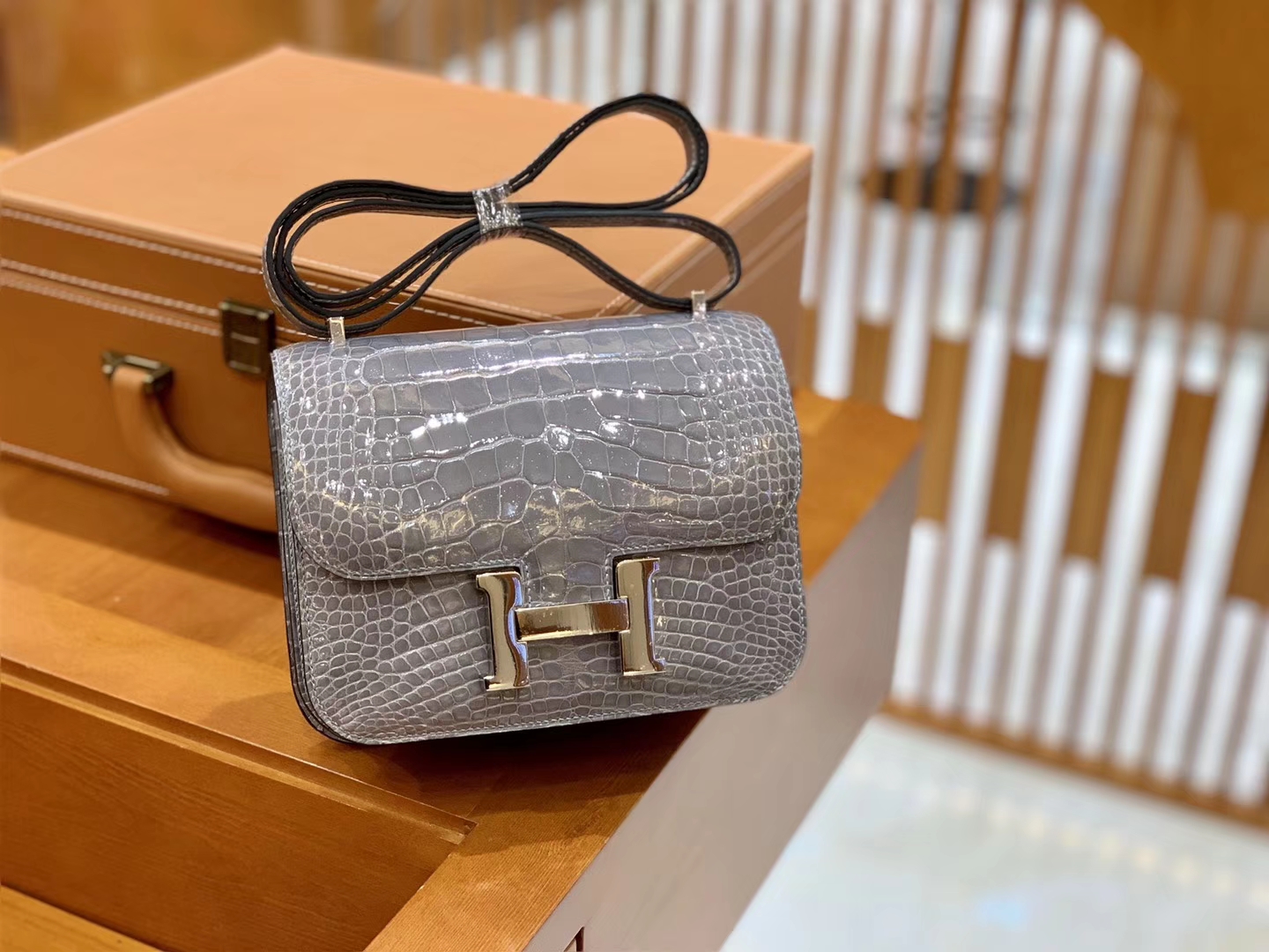 Constance 24 Constance 空姐包 Niloticus 尼罗鳄 Hermès(爱马仕)Constance 24cm Alligator shiny 亮面鳄鱼 ck81 斑鸠灰 Gris T 金扣 现货 2020年5月19日 0