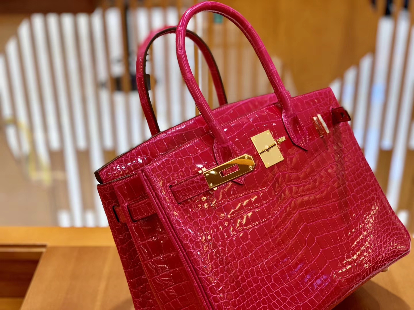 Hermès(爱马仕)Birkin 30 极致粉 金扣 湾鳄 一级皮 全手工缝制 2019年12月13日 0 【鳄鱼世家】www.Eyubao.com Birkin 30 Birkin 铂金包 品牌:Hermès(爱马仕);类别:Birkin 铂金包;颜色:极致粉;材质:湾鳄 一级皮;等级:顶级;附件:全套包装礼盒;尺寸:30cm;功能:手提单肩包