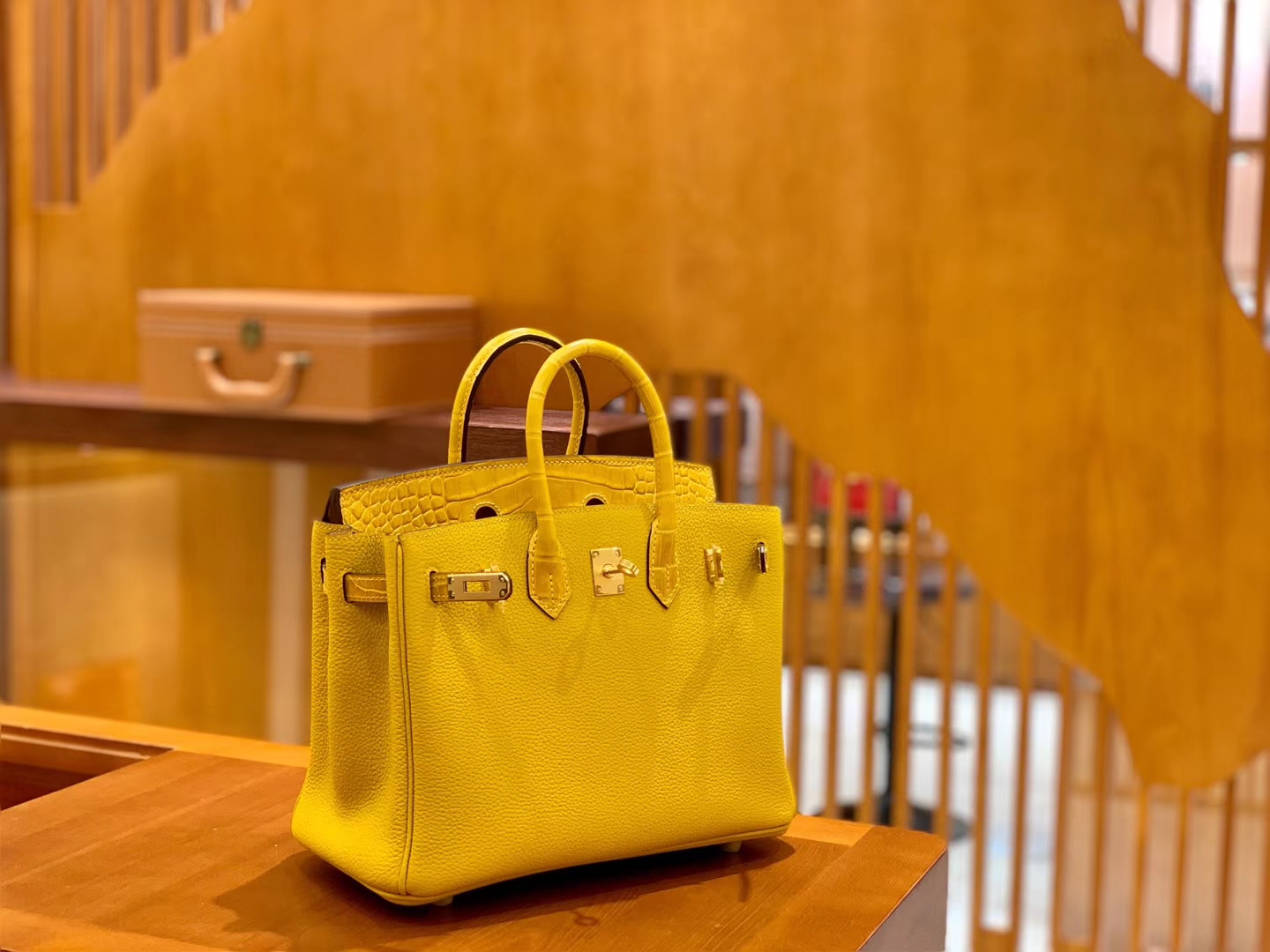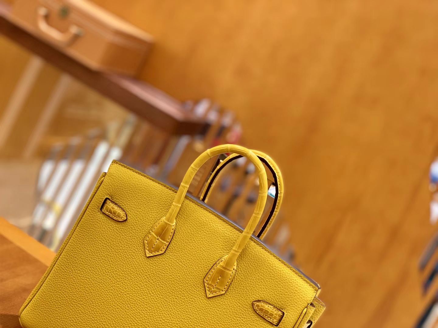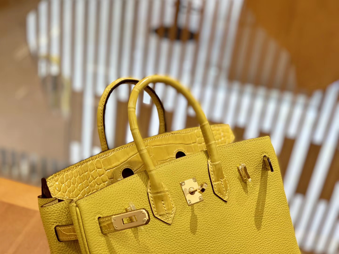 Hermès(爱马仕)Birkin 25cm Touch 系列 鳄鱼皮拼牛皮 琥珀黄 全手工缝制 2019年12月13日 0 【鳄鱼世家】www.Eyubao.com Birkin 25 Birkin 铂金包 品牌:Hermès(爱马仕);类别:Birkin 铂金包;颜色:琥珀黄;材质:进口牛皮拼鳄鱼皮;等级:顶级;附件:全套包装礼盒;尺寸:25cm;功能:手提单肩包