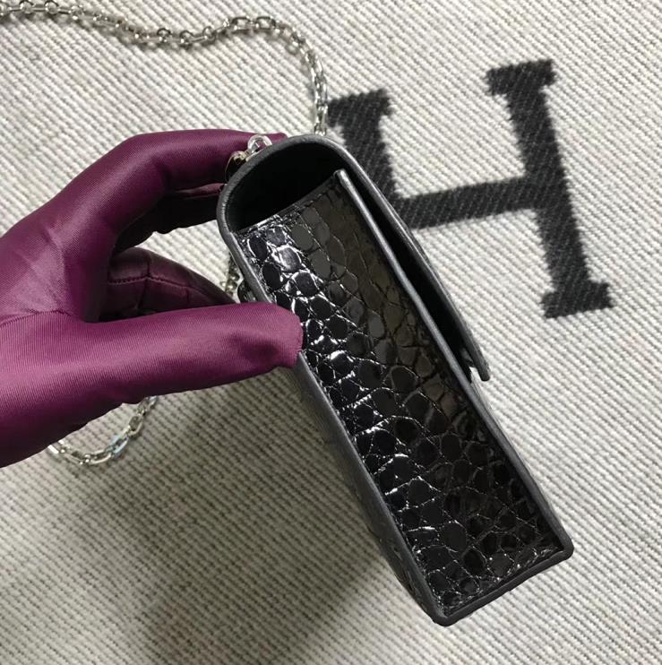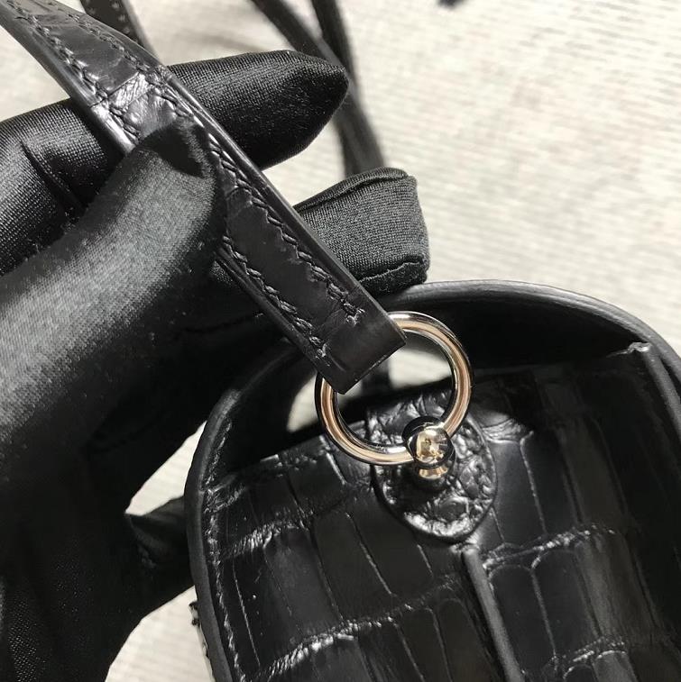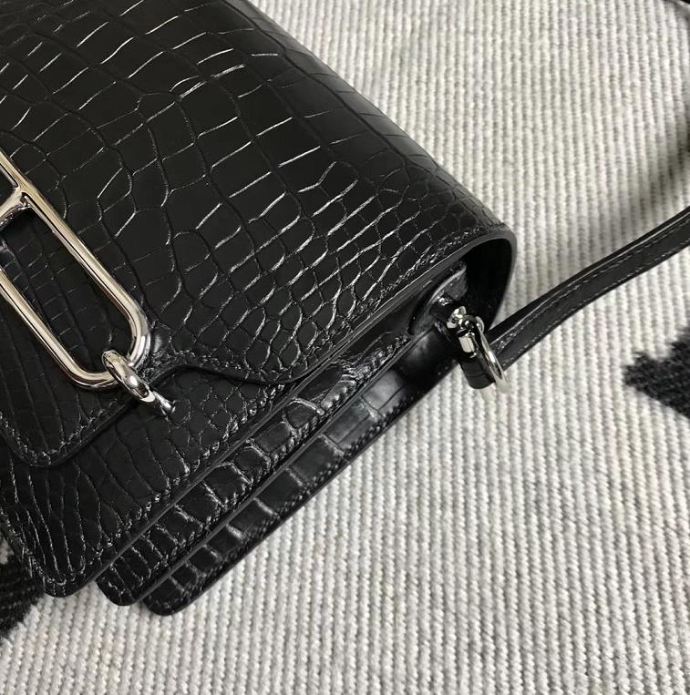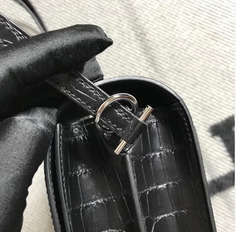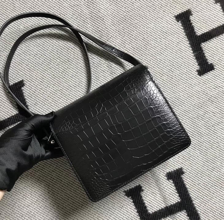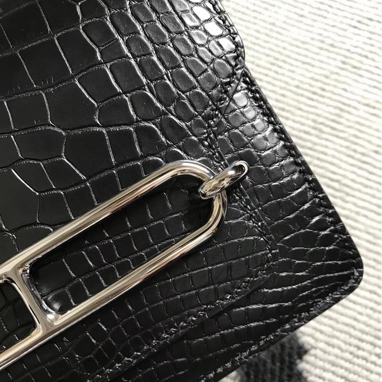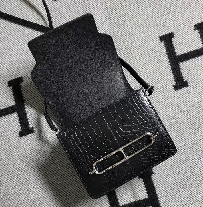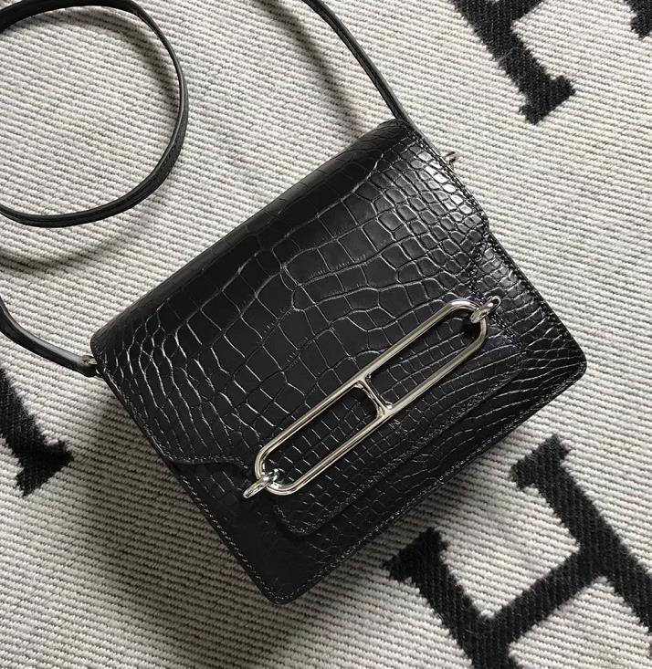 Hermes Roulis 猪鼻子包 美洲鳄鱼皮 黑色银扣