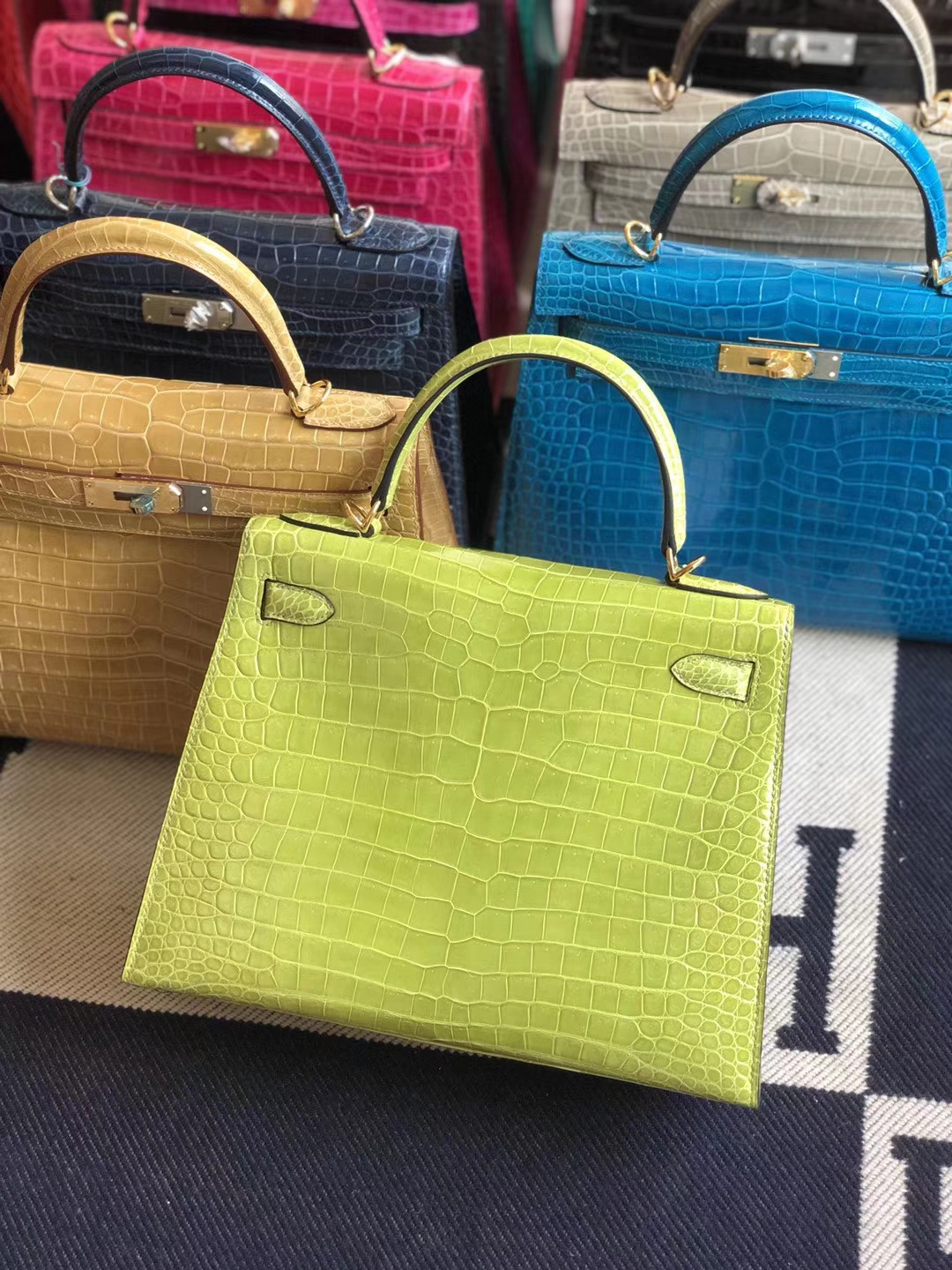 Hermès(爱马仕)Kelly 凯莉包 crocodile 亮面湾鳄 奇异果绿 顶级工艺 蜡线全手工 金扣 28cm 2019年12月14日 0 【鳄鱼世家】www.Eyubao.com Kelly 28 Kelly 凯莉包 品牌:Hermès(爱马仕);类别:Kelly 凯莉包;颜色:奇异果绿;材质:亮面澳洲湾鳄;等级:顶级;附件:全套包装礼盒;尺寸:28cm;功能:手提单肩包