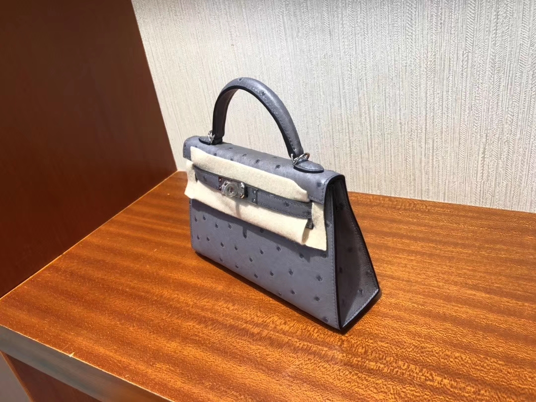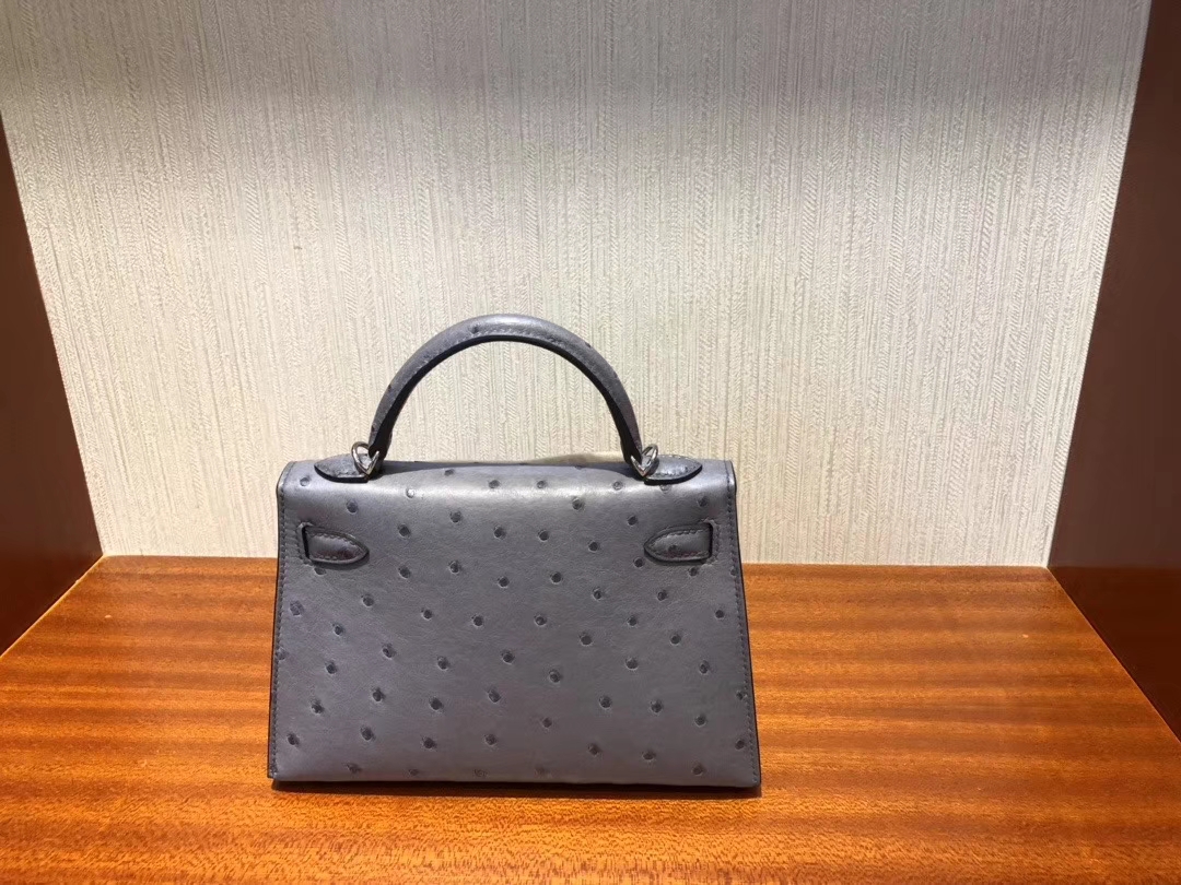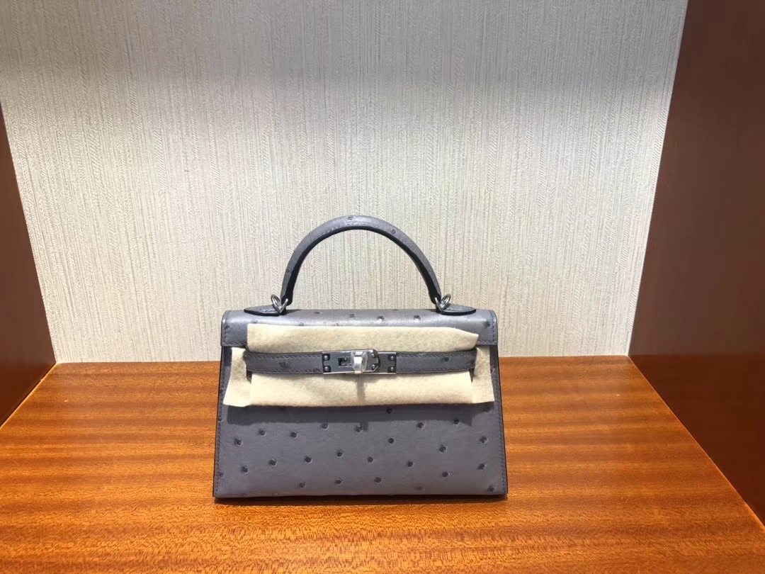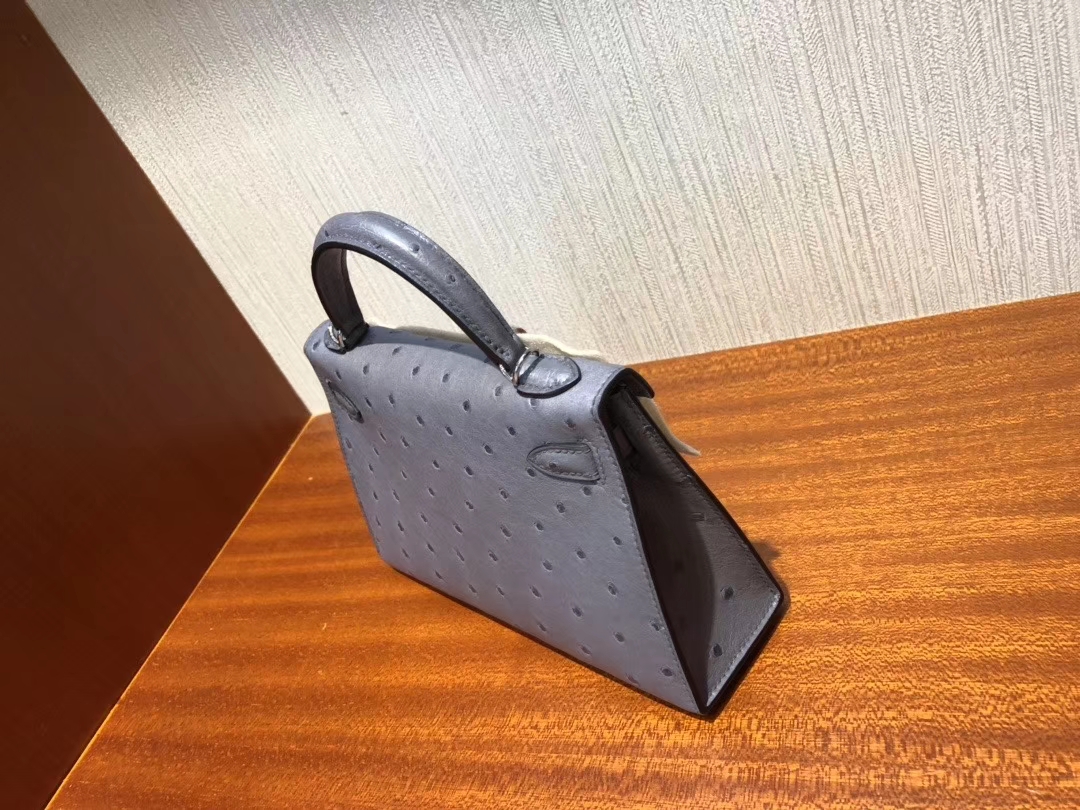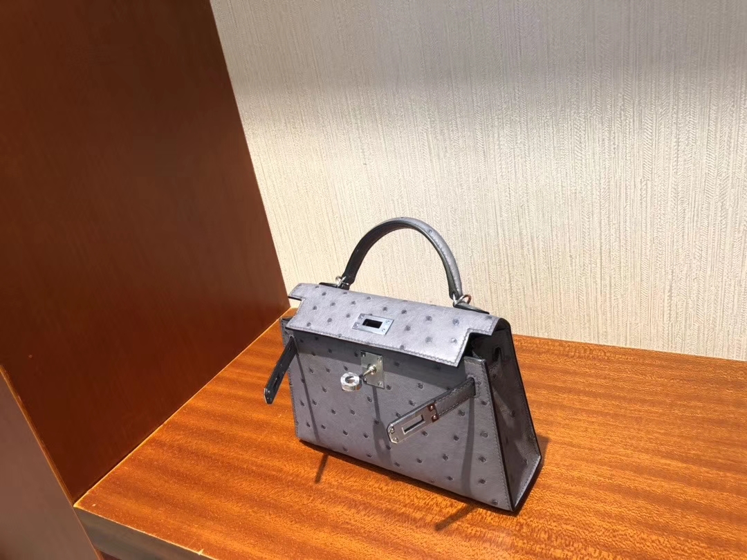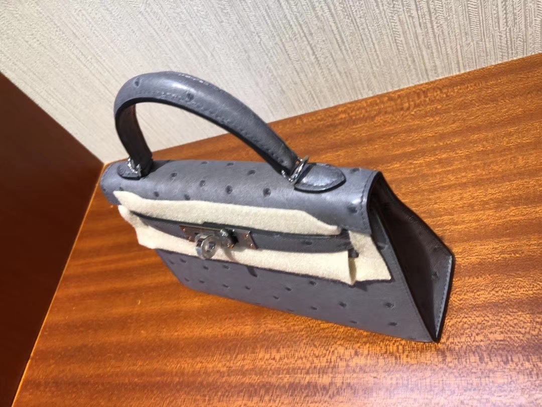 Hermès(爱马仕)Minikelly ll Ostrich kk鸵鸟 玛瑙灰 银扣 顶级手缝 现货 2019年12月14日 0 【鳄鱼世家】www.Eyubao.com Mini Kelly 2 Mini Kelly 迷你凯莉 品牌:Hermès(爱马仕);类别:Mini Kelly 迷你凯莉;颜色:玛瑙灰;材质:鸵鸟皮;等级:顶级;附件:全套包装礼盒;尺寸:19cm;功能:手提单肩包