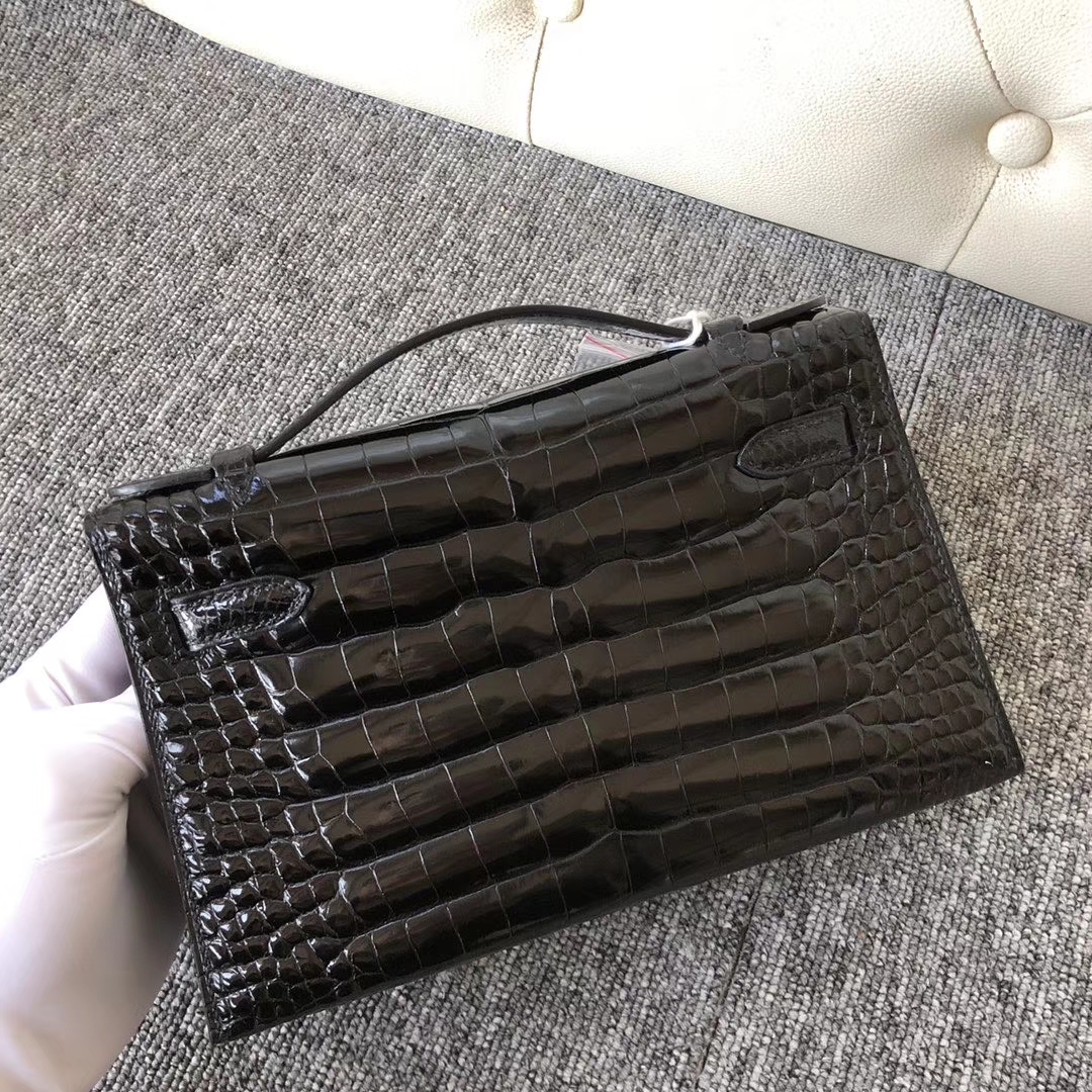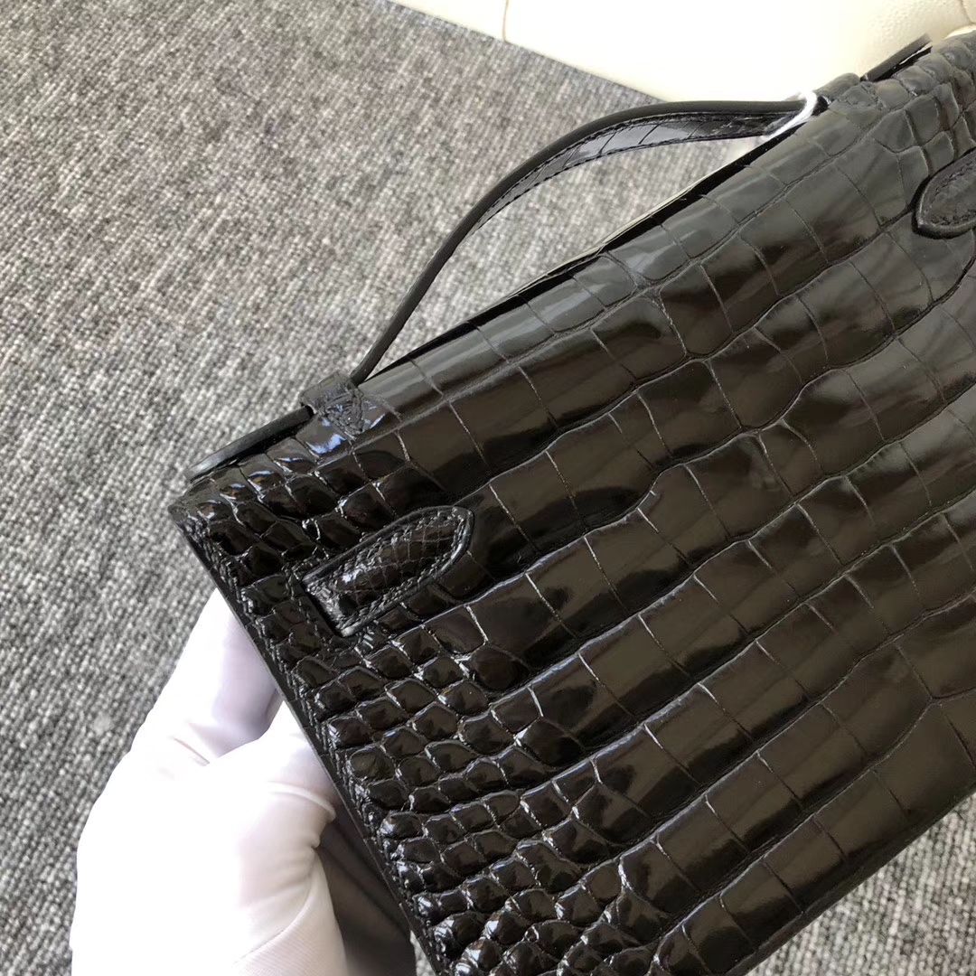 Mini Kelly 1 Mini Kelly 迷你凯莉 Hermès(爱马仕)Mini Kelly Pochette 22cm 亮面方块 美洲鳄鱼 黑色 银扣 手拿包 晚宴包 2020年1月14日 0