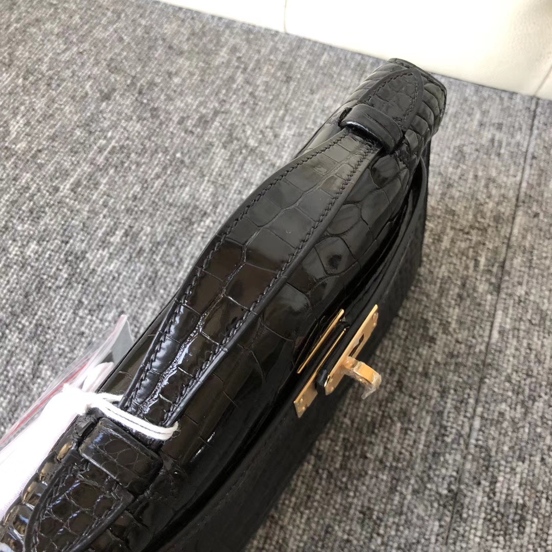 Hermès(爱马仕)Minikelly 亮面鳄鱼 ck89 黑色 Noir 金扣 超美拱珠皮 手拿包 晚宴包 现货 2019年12月16日 0 【鳄鱼世家】www.Eyubao.com Mini Kelly 1 Mini Kelly 迷你凯莉 品牌:Hermès(爱马仕);类别:Mini Kelly 迷你凯莉;颜色:黑色;材质:超美拱珠皮;等级:顶级;附件:全套包装礼盒;尺寸:22cm;功能:手提单肩包
