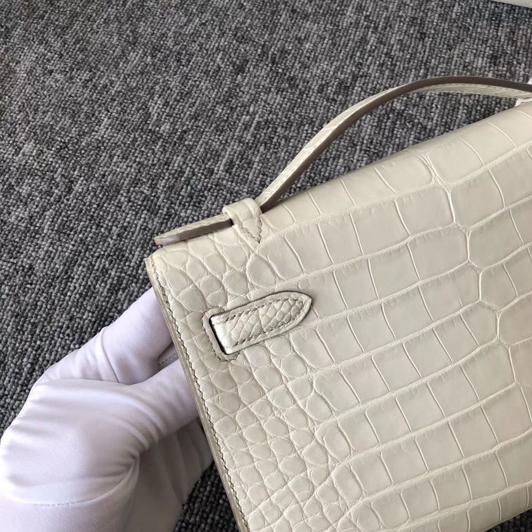 Hermès(爱马仕)Minikelly pochette Alligator matt 雾面 鳄鱼 8L 奶油白 Beton 手拿包 2019年12月16日 0 【鳄鱼世家】www.Eyubao.com Mini Kelly 2 Mini Kelly 迷你凯莉 品牌:Hermès(爱马仕);类别:Mini Kelly 迷你凯莉;颜色:奶油白;材质:雾面 鳄鱼;等级:顶级;附件:全套包装礼盒;尺寸:22cm;功能:手提单肩包