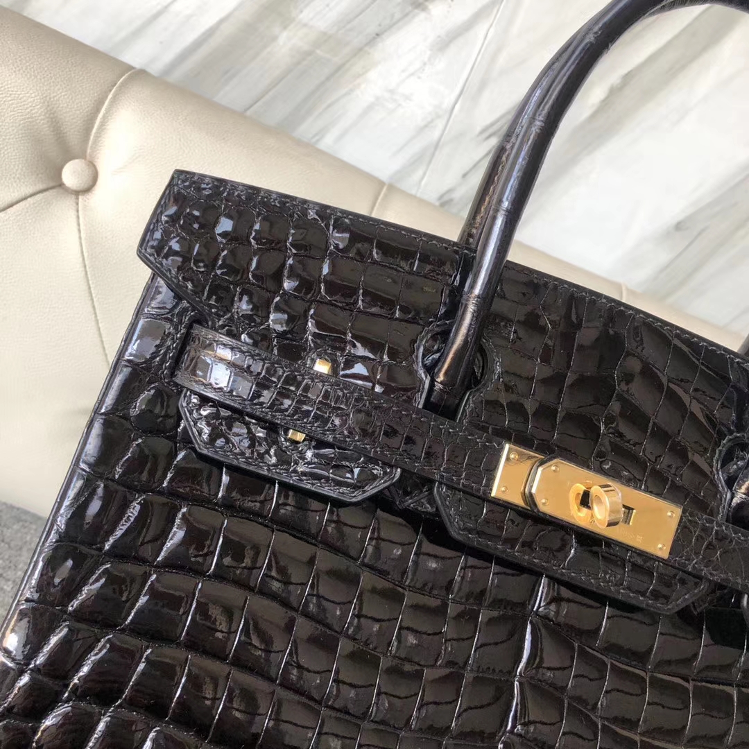 Hermès(爱马仕)Birkin 30cm Crocodile shiny 亮面鳄鱼 ck89 黑色 Noir 金扣 拱珠 顶级手缝 现货 2019年12月17日 0 【鳄鱼世家】www.Eyubao.com Birkin 30 Birkin 铂金包 品牌:Hermès(爱马仕);类别:Birkin 铂金包;颜色:黑色;材质:crocodile shiny 亮面鳄鱼;等级:顶级;附件:全套包装礼盒;尺寸:30cm;功能:手提单肩包