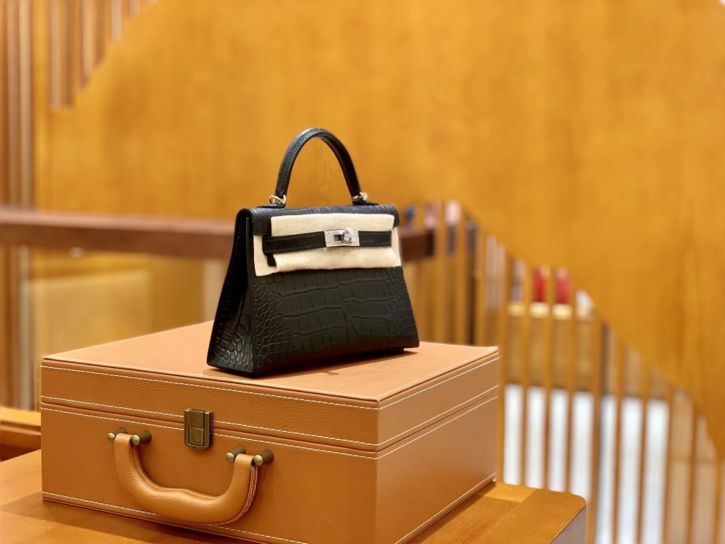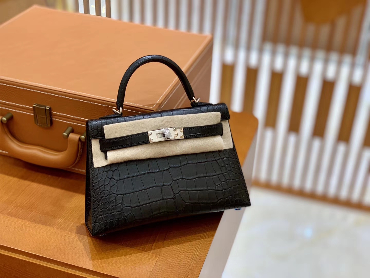 Hermès(爱马仕)Mini Kelly 19cm 经典黑 银扣 一级 美洲 鳄鱼皮 臻品级别 2019年12月17日 0 【鳄鱼世家】www.Eyubao.com Mini Kelly 2 Mini Kelly 迷你凯莉 品牌:Hermès(爱马仕);类别:Mini Kelly迷你凯莉包;颜色:经典黑;材质:一级 美洲 鳄鱼皮;等级:顶级;附件:全套包装礼盒;尺寸:19cm;功能:手提单肩包