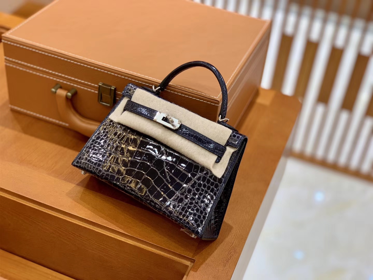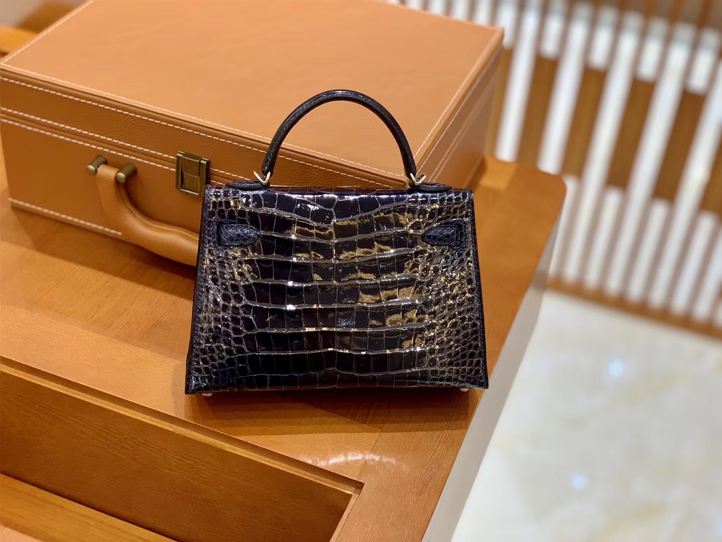 Hermès(爱马仕)Mini Kelly 19cm 午夜蓝 银扣 一级 美洲 鳄鱼皮 臻品级别 2019年12月17日 0 【鳄鱼世家】www.Eyubao.com Mini Kelly 2 Mini Kelly 迷你凯莉 品牌:Hermès(爱马仕);类别:Mini Kelly迷你凯莉包;颜色:午夜蓝;材质:一级 美洲 鳄鱼皮;等级:顶级;附件:全套包装礼盒;尺寸:19cm;功能:手提单肩包