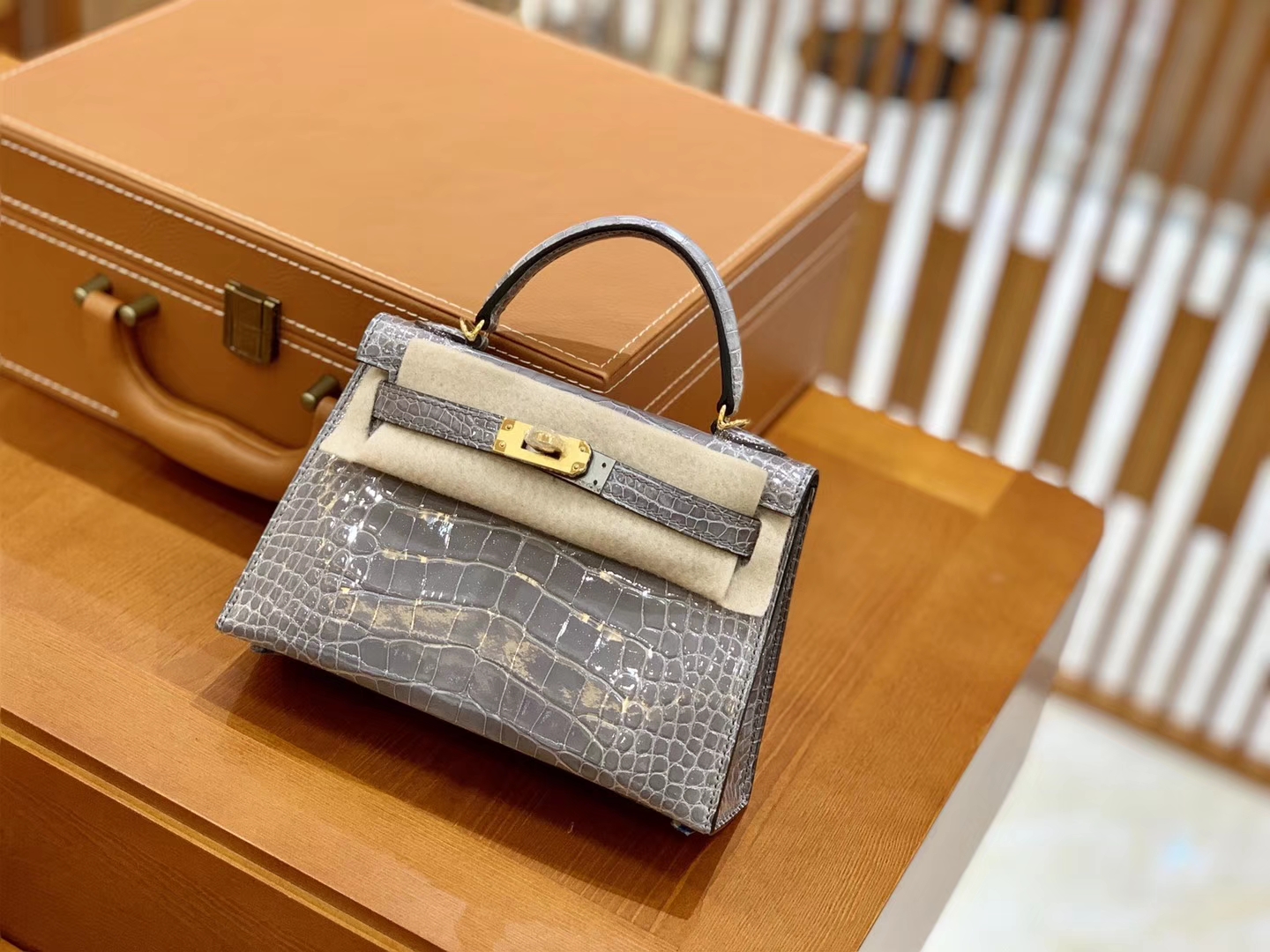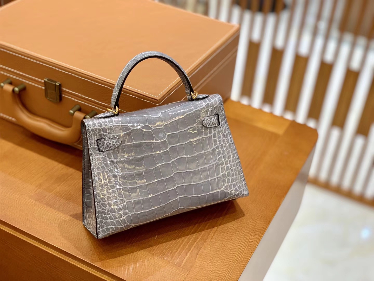 Hermès(爱马仕)Mini Kelly 19cm 巴黎灰 银扣 一级 美洲 鳄鱼皮 臻品级别 2019年12月17日 0 【鳄鱼世家】www.Eyubao.com Mini Kelly 2 Mini Kelly 迷你凯莉 品牌:Hermès(爱马仕);类别:Mini Kelly迷你凯莉包;颜色:巴黎灰;材质:一级 美洲 鳄鱼皮;等级:顶级;附件:全套包装礼盒;尺寸:19cm;功能:手提单肩包