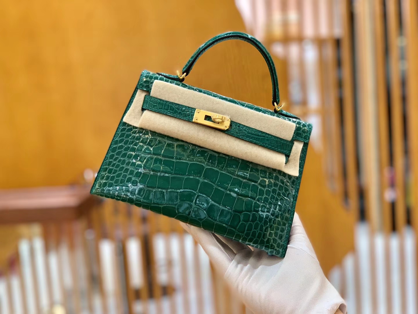 Hermès(爱马仕)Mini Kelly 迷你凯莉 翡翠绿 一级美洲鳄鱼皮 臻品级别 金扣 19cm 2019年12月19日 0 【鳄鱼世家】www.Eyubao.com Mini Kelly 2 Mini Kelly 迷你凯莉 品牌:Hermès(爱马仕);类别:Mini Kelly迷你凯莉包;颜色:翡翠绿;材质:一级美洲鳄鱼皮;等级:顶级;附件:全套包装礼盒;尺寸:19cm;功能:手提单肩包
