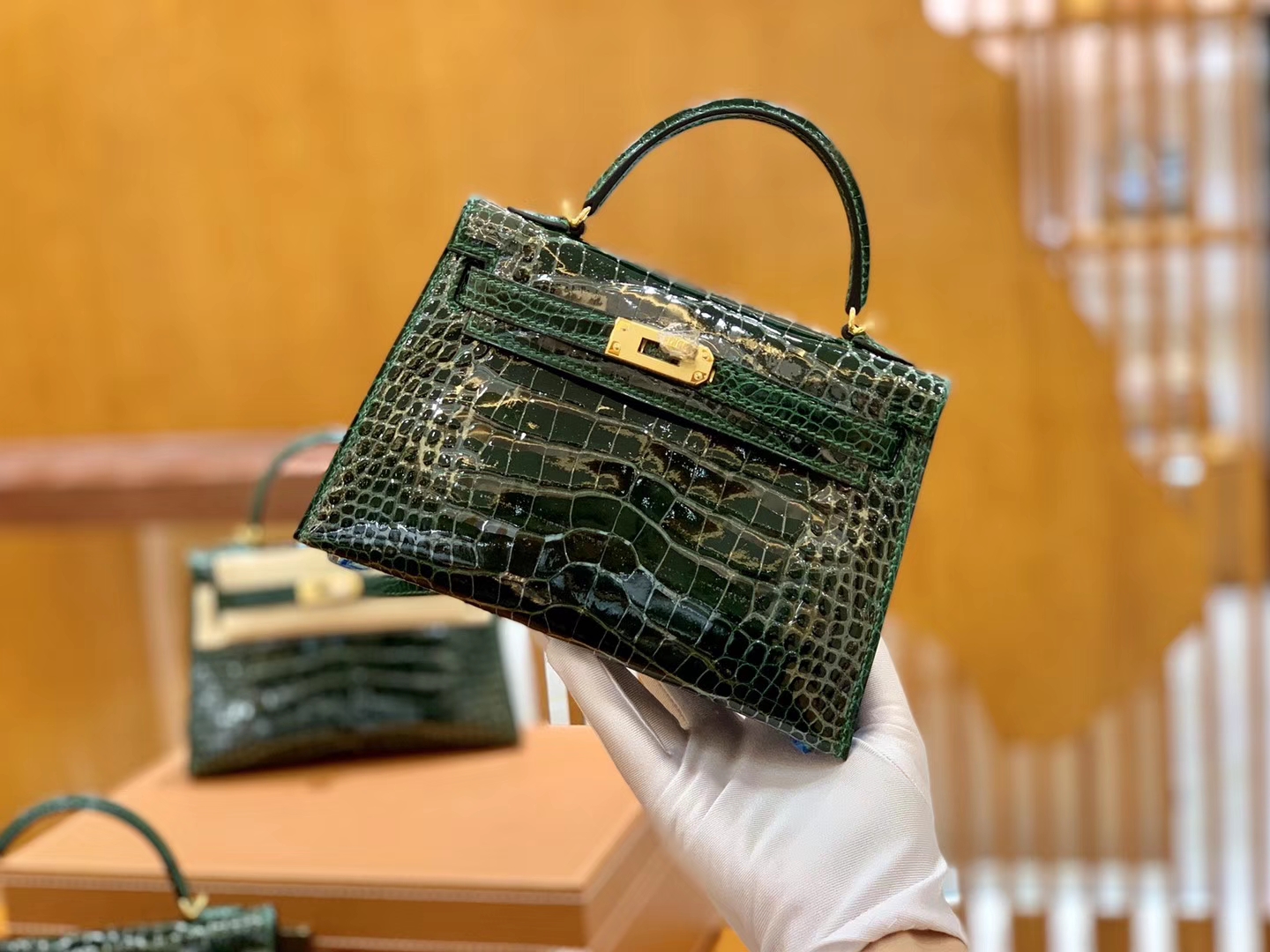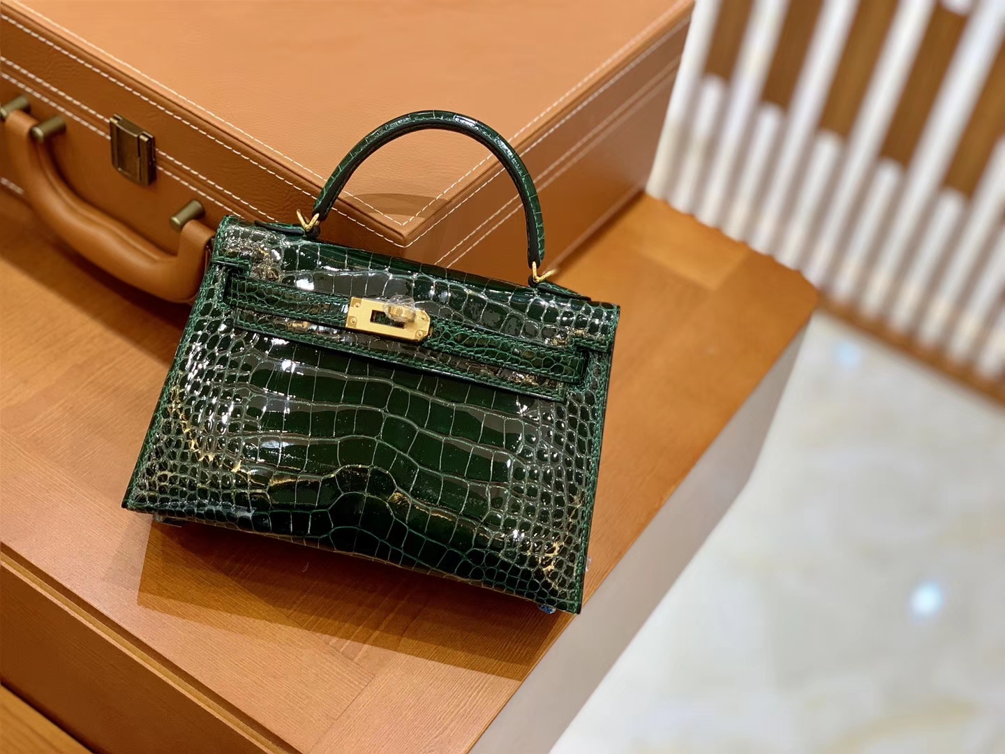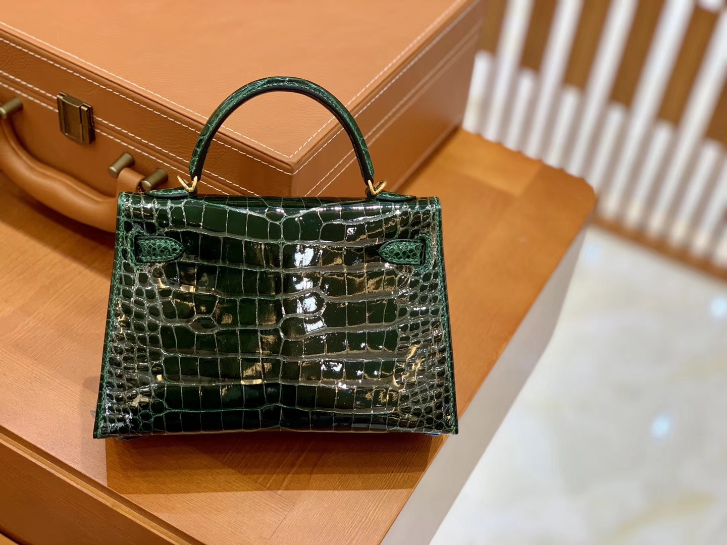 Hermès(爱马仕)迷你2代 19cm 祖母绿 一级美洲 鳄鱼皮 顶级手工 金扣 2019年12月19日 0 【鳄鱼世家】www.Eyubao.com Mini Kelly 2 Mini Kelly 迷你凯莉 品牌:Hermès(爱马仕);类别:Mini Kelly迷你凯莉包;颜色:祖母绿;材质:一级美洲鳄鱼皮;等级:顶级;附件:全套包装礼盒;尺寸:19cm;功能:手提单肩包