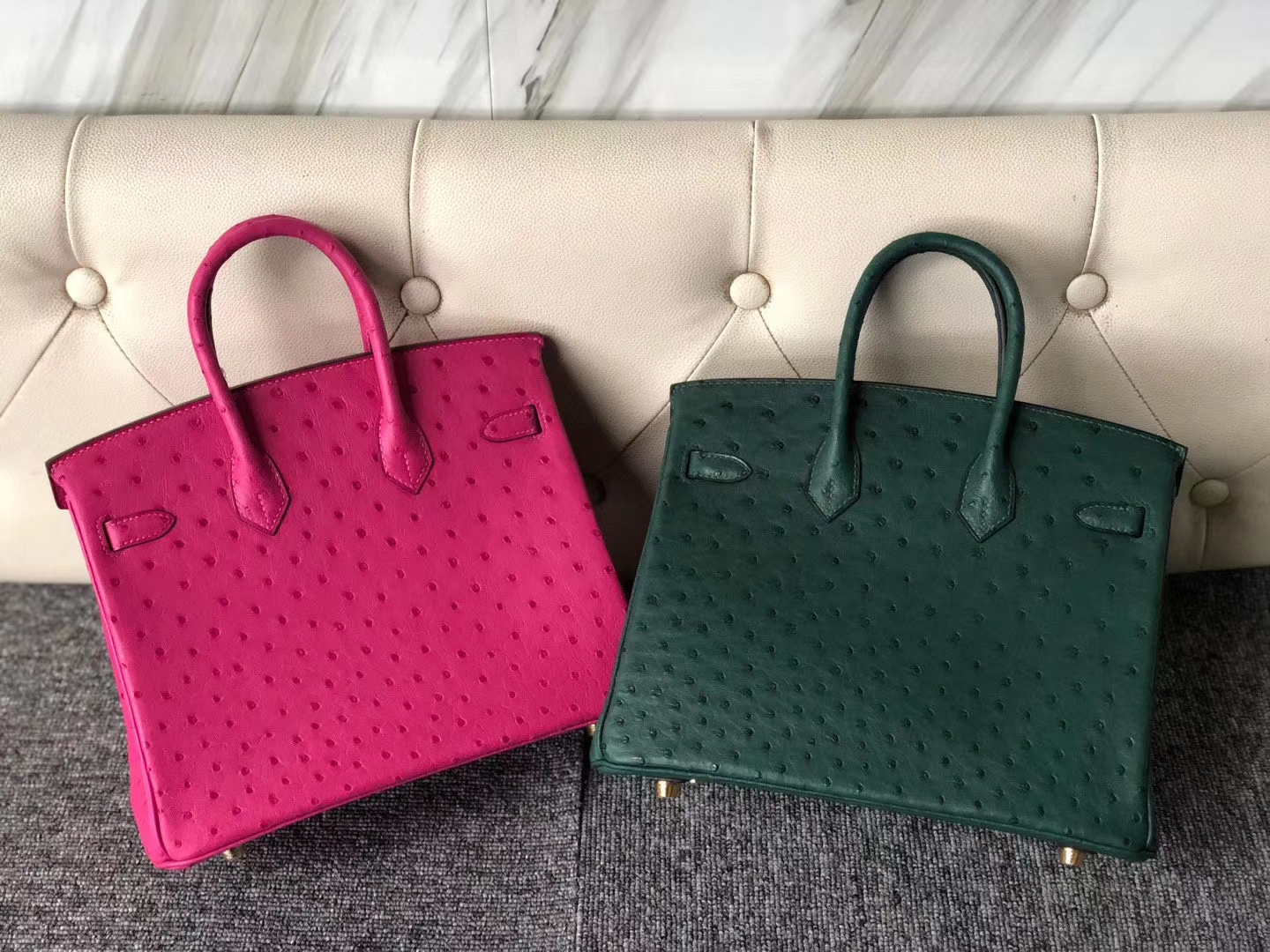 Hermès(爱马仕)Birkin 25cm Ostrich kk 鸵鸟 E5 桃红 vs Z6 孔雀绿 2019年12月27日 0 【鳄鱼世家】www.Eyubao.com Birkin 25 Birkin 铂金包 品牌:Hermès(爱马仕);类别:Birkin 铂金包;颜色:桃红、孔雀绿;材质:Ostrich kk 鸵鸟;等级:顶级;附件:全套包装礼盒;尺寸:25cm;功能:手提单肩包
