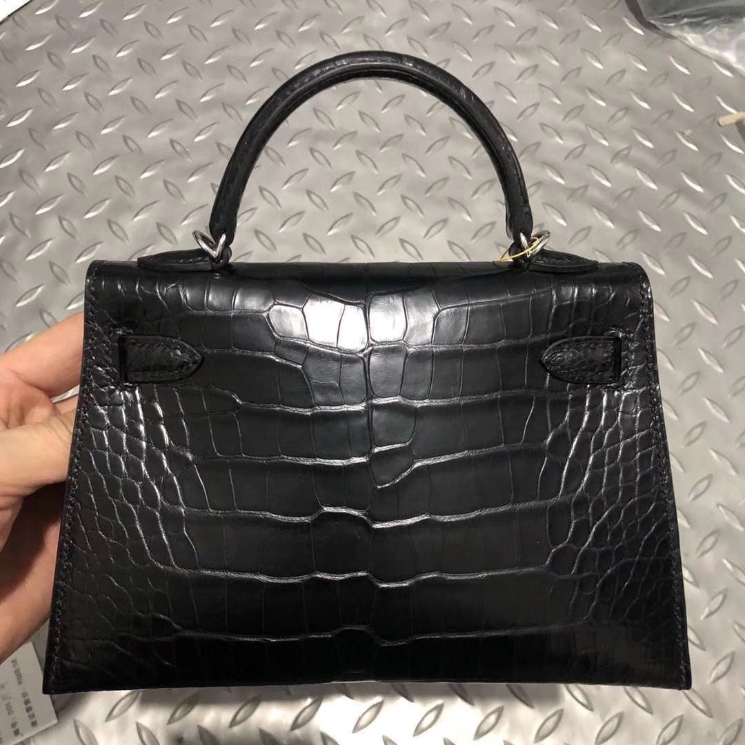 Hermès(爱马仕) Kelly 凯莉包 雾面美洲鳄 ck89黑色 蜡线全手工 银扣 2代 19cm 2020年1月4日 0 【鳄鱼世家】www.Eyubao.com Mini Kelly 2 Mini Kelly 迷你凯莉 品牌:Hermès(爱马仕);类别:Kelly 凯莉包;颜色:黑色;材质:雾面美洲鳄;等级:顶级;附件:全套包装礼盒;尺寸: 19cm;功能:手提单肩包