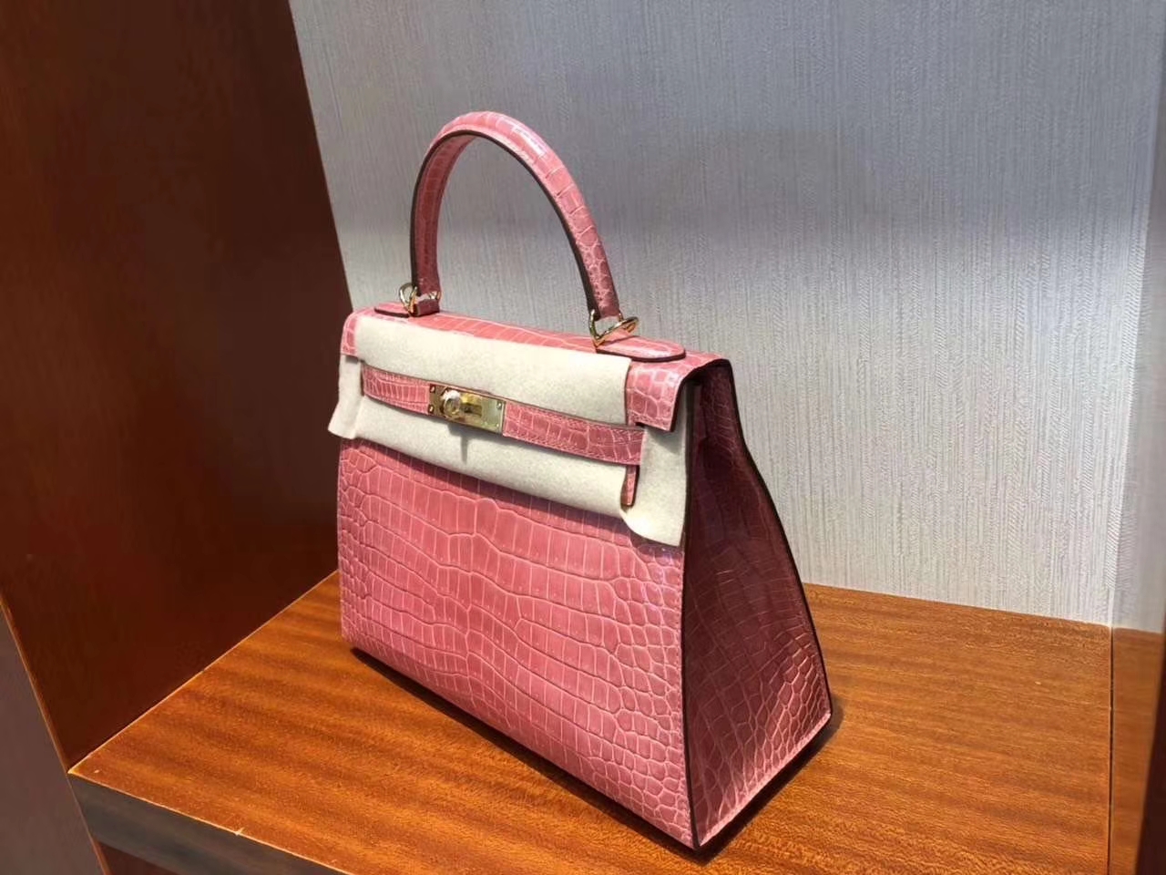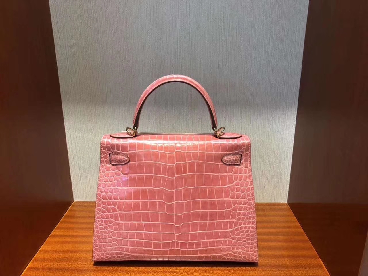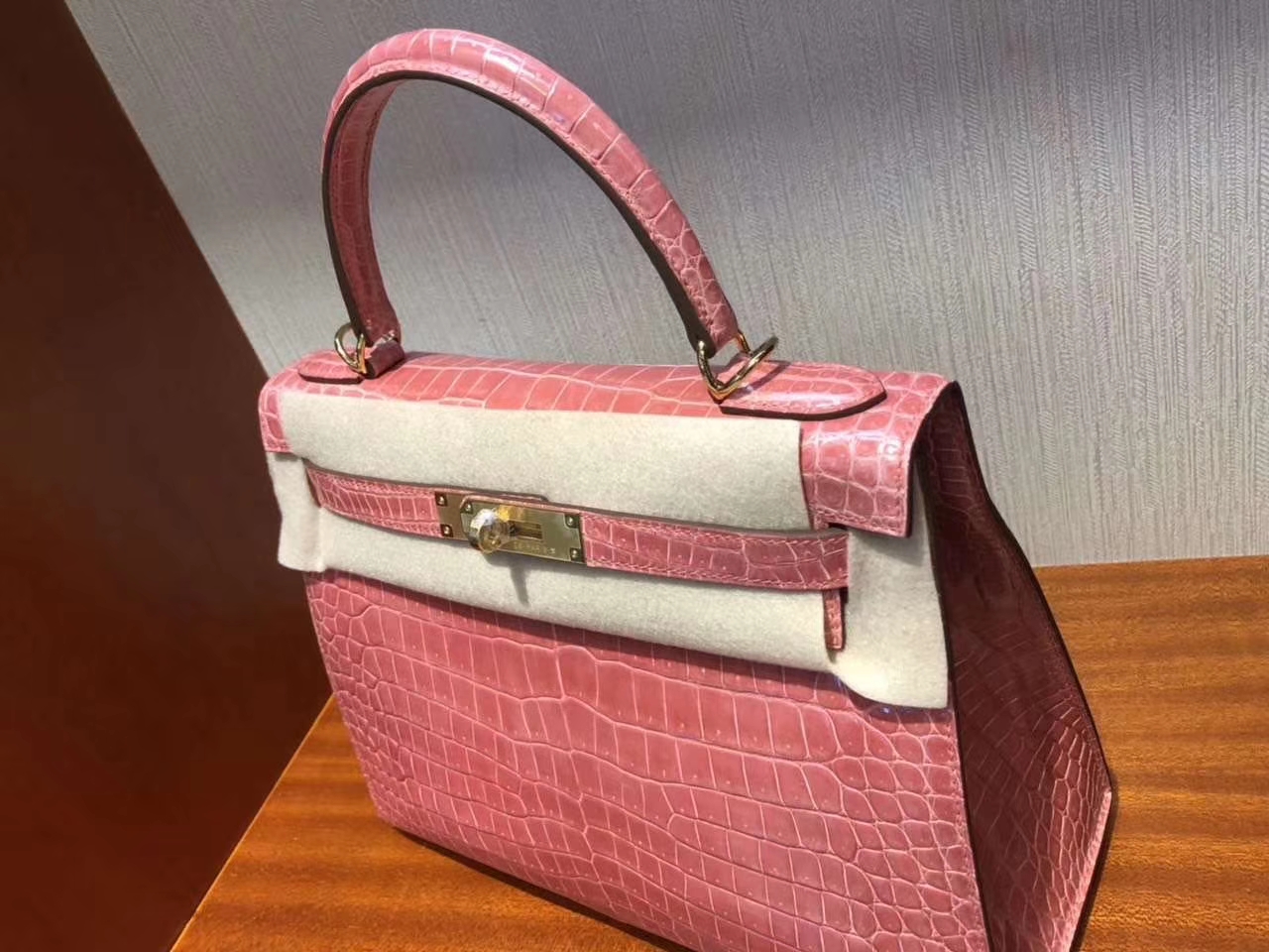 Hermès(爱马仕)Kelly 28cm porosus shiny 亮面澳洲湾鳄 5L 龙虾粉 金扣 顶级手缝 2020年1月4日 0 【鳄鱼世家】www.Eyubao.com Kelly 28 Kelly 凯莉包 品牌:Hermès(爱马仕);类别:Kelly 凯莉包;颜色:龙虾粉;材质:亮面澳洲湾鳄;等级:顶级;附件:全套包装礼盒;尺寸: 28cm;功能:手提单肩包