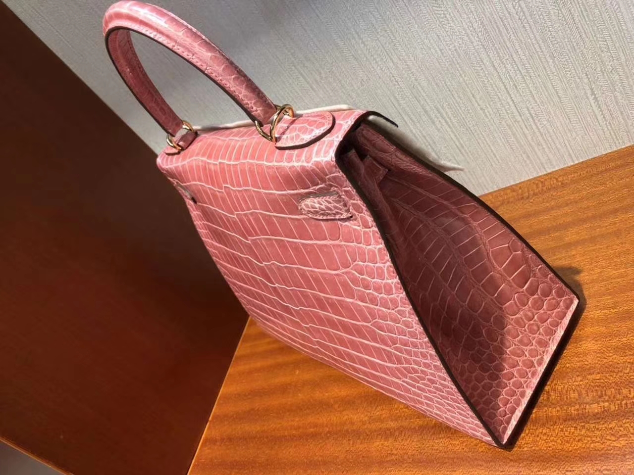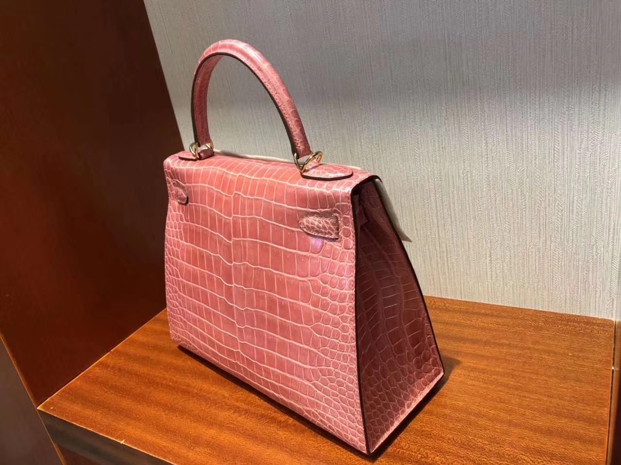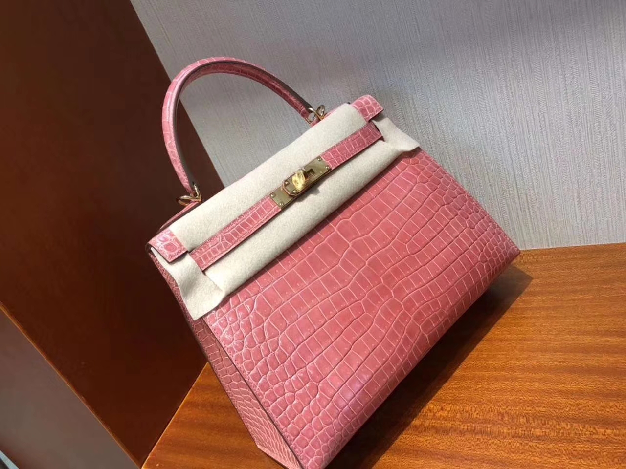 Hermès(爱马仕)Kelly 28cm porosus shiny 亮面澳洲湾鳄 5L 龙虾粉 金扣 顶级手缝 2020年1月4日 0 【鳄鱼世家】www.Eyubao.com Kelly 28 Kelly 凯莉包 品牌:Hermès(爱马仕);类别:Kelly 凯莉包;颜色:龙虾粉;材质:亮面澳洲湾鳄;等级:顶级;附件:全套包装礼盒;尺寸: 28cm;功能:手提单肩包