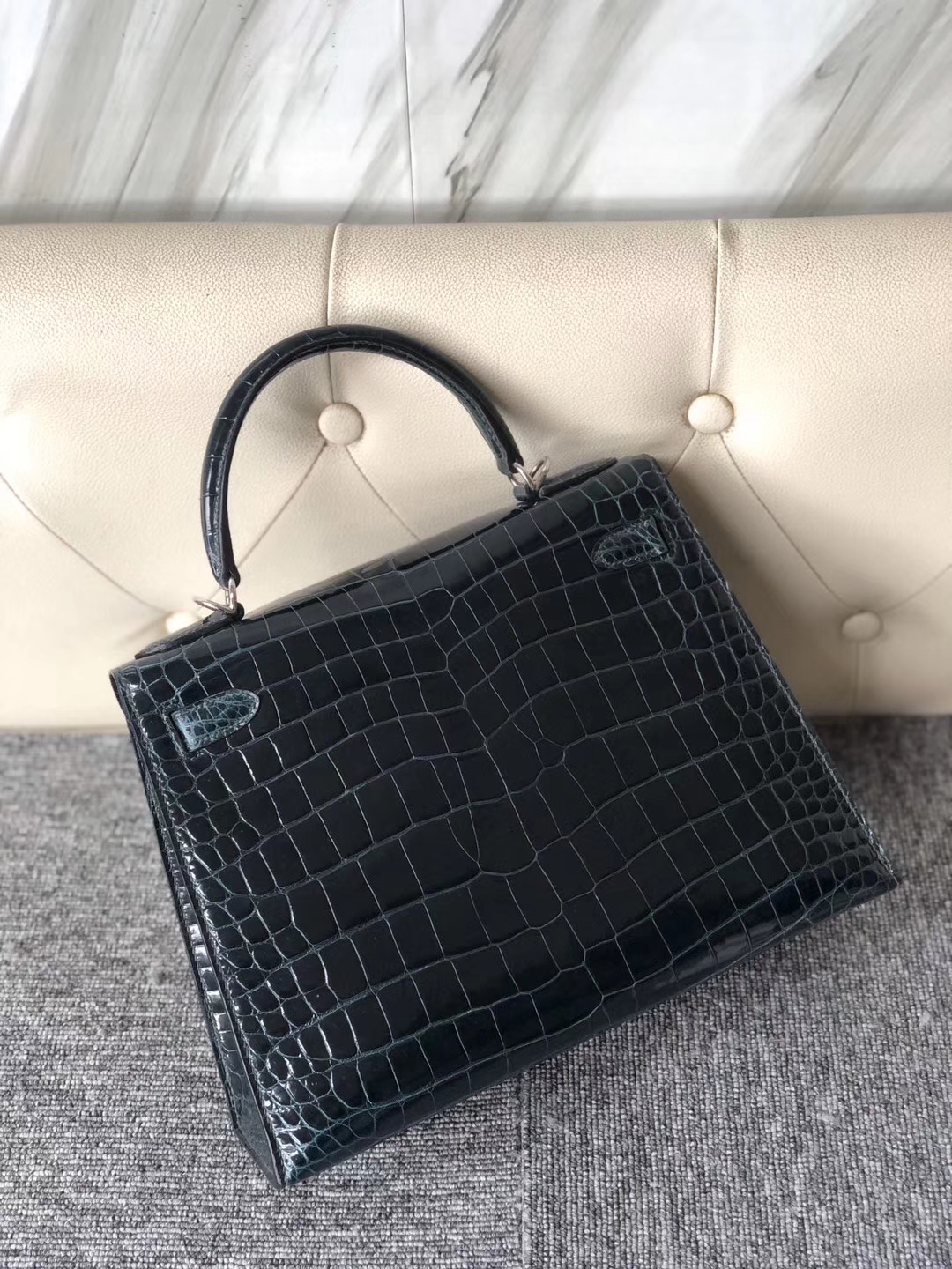 Hermès(爱马仕)Kelly 28cm Porosus shiny 亮面澳洲湾鳄 1p 鸭子蓝 银扣 现货 2020年1月6日 0 【鳄鱼世家】www.Eyubao.com Kelly 28 Kelly 凯莉包 品牌:Hermès(爱马仕);类别:Kelly 凯莉包;颜色:鸭子蓝;材质:亮面澳洲湾鳄;等级:顶级;附件:全套包装礼盒;尺寸: 28cm;功能:手提单肩包