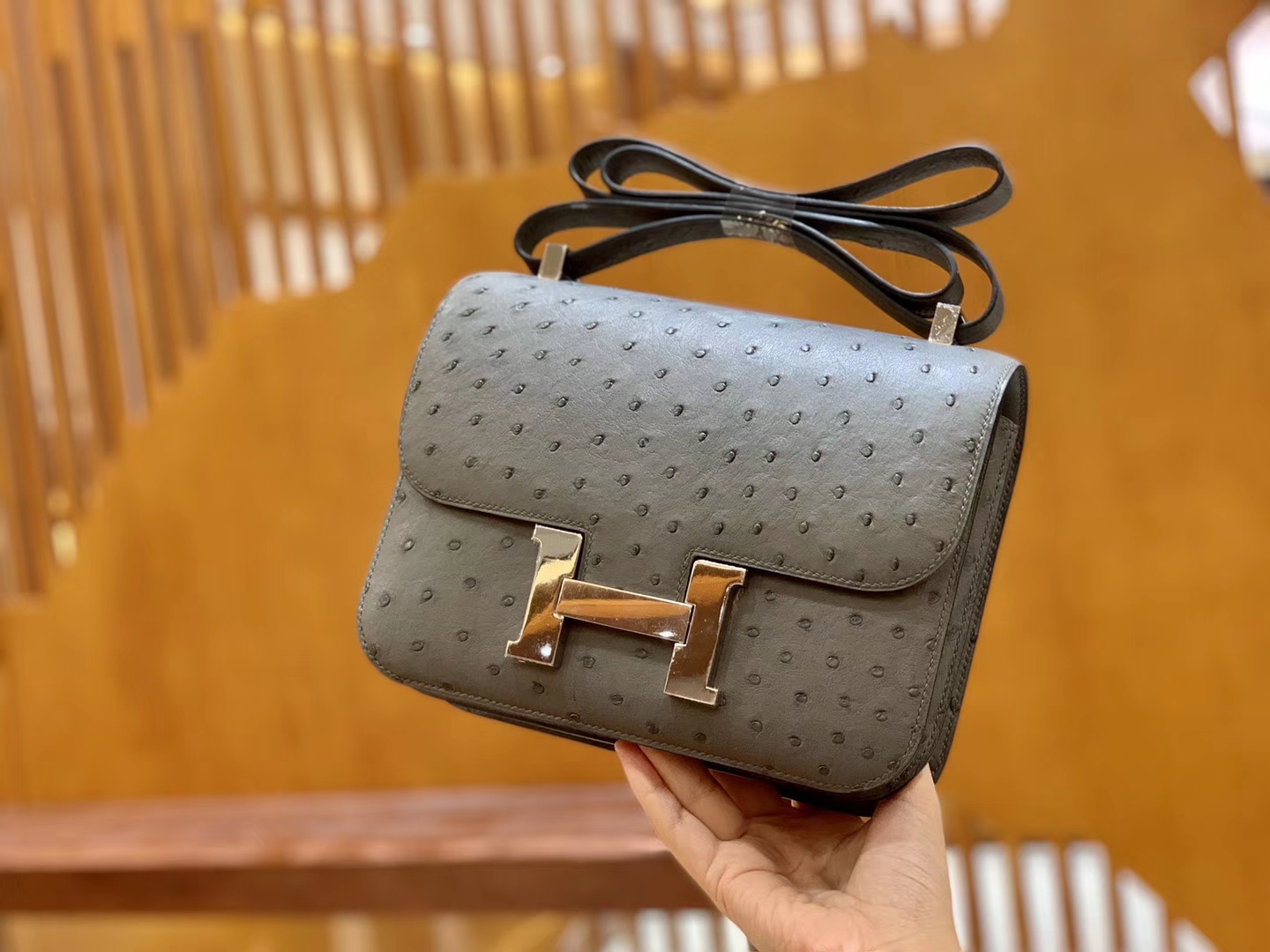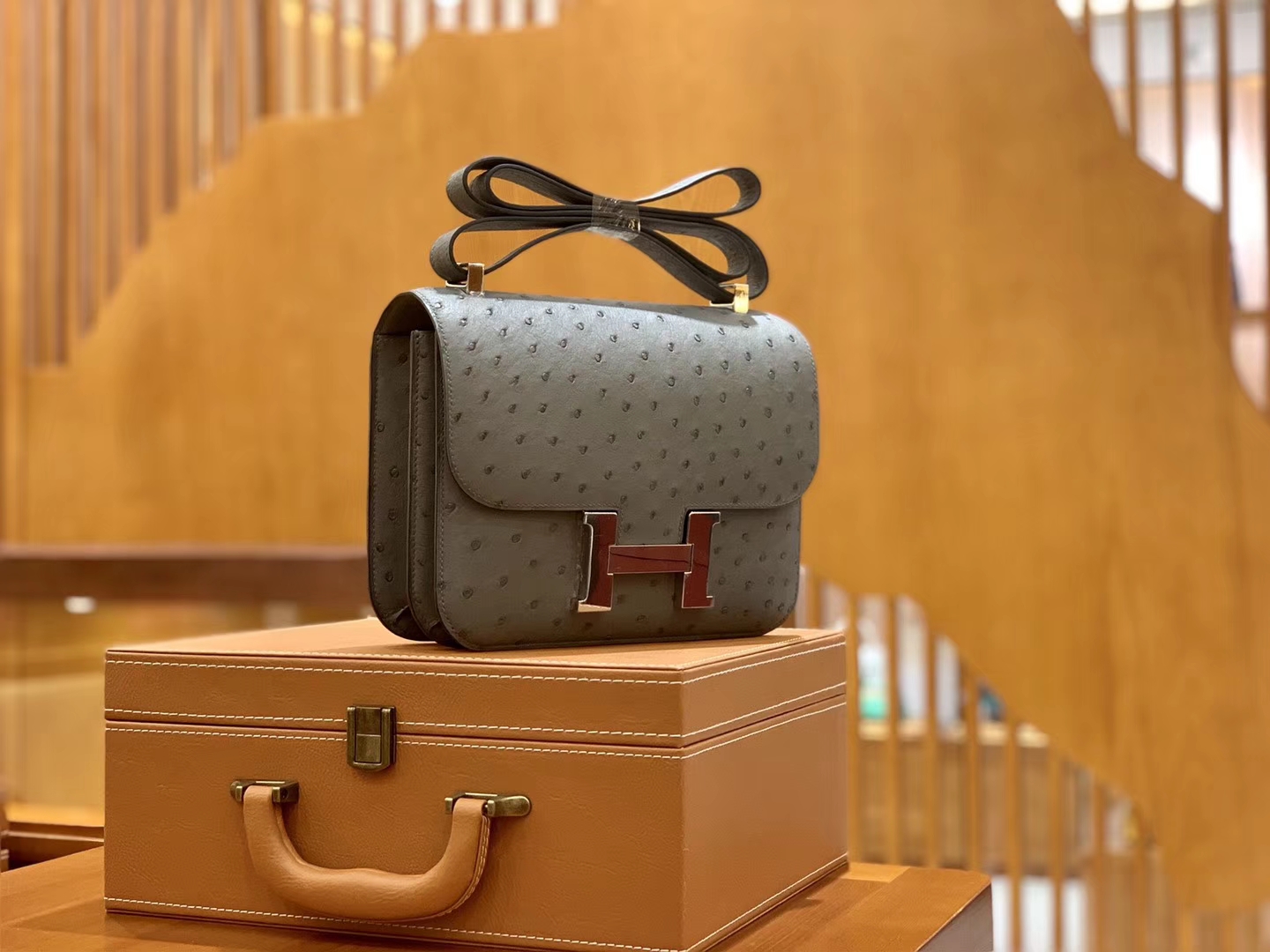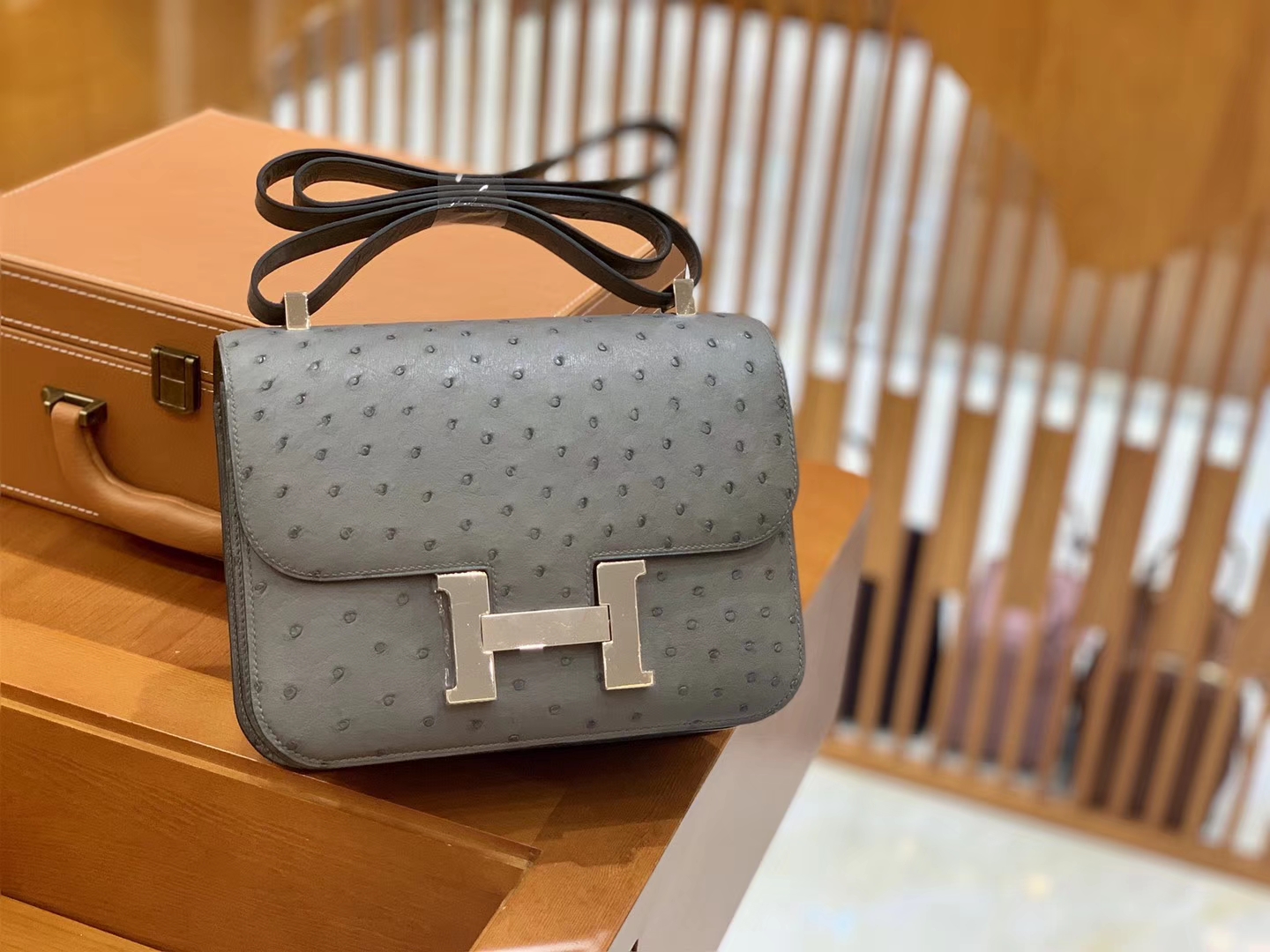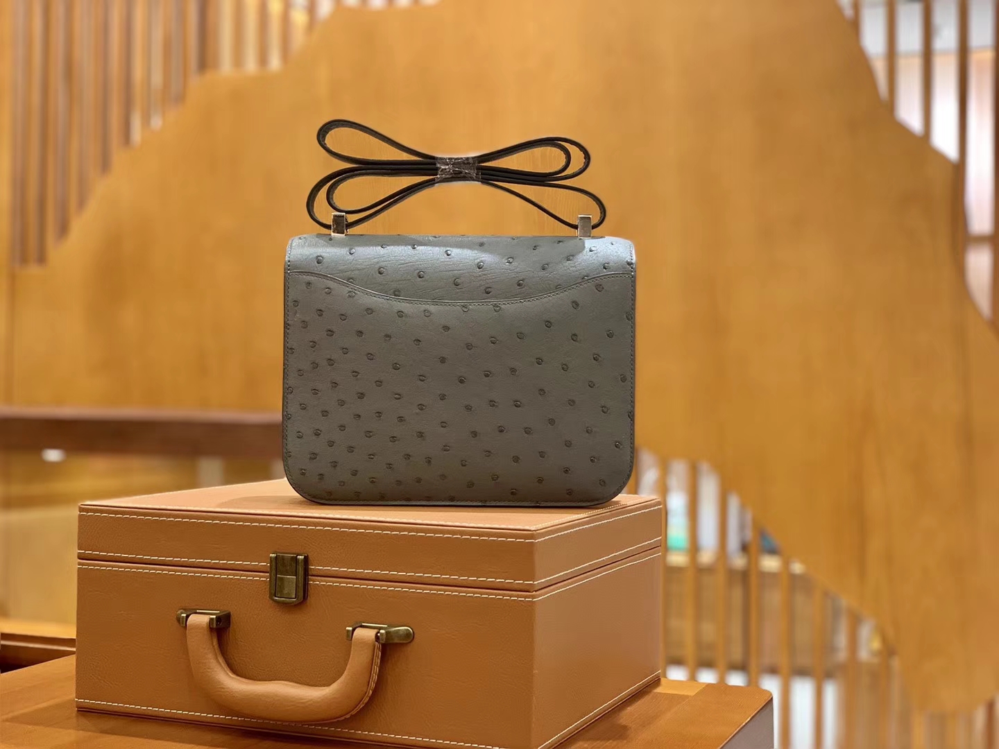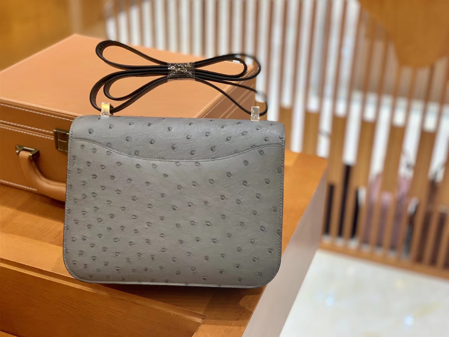 Hermès(爱马仕)Constance 空姐包 沥青灰 南非进口鸵鸟皮 24cm 现货 2020年1月7日 0 【鳄鱼世家】www.Eyubao.com Constance 24 Constance 空姐包 品牌:Hermès(爱马仕);类别:Constance 空姐包;颜色:沥青灰;材质:南非进口鸵鸟皮;等级:顶级;附件:全套包装礼盒;尺寸:24cm;功能:单肩背包