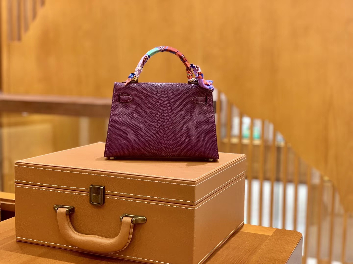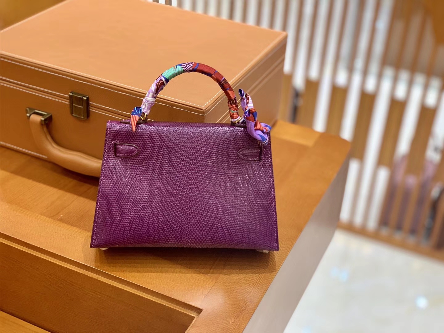 Hermès(爱马仕)MiniKelly 迷你凯莉 蜥蜴皮 水晶紫 2代 19cm