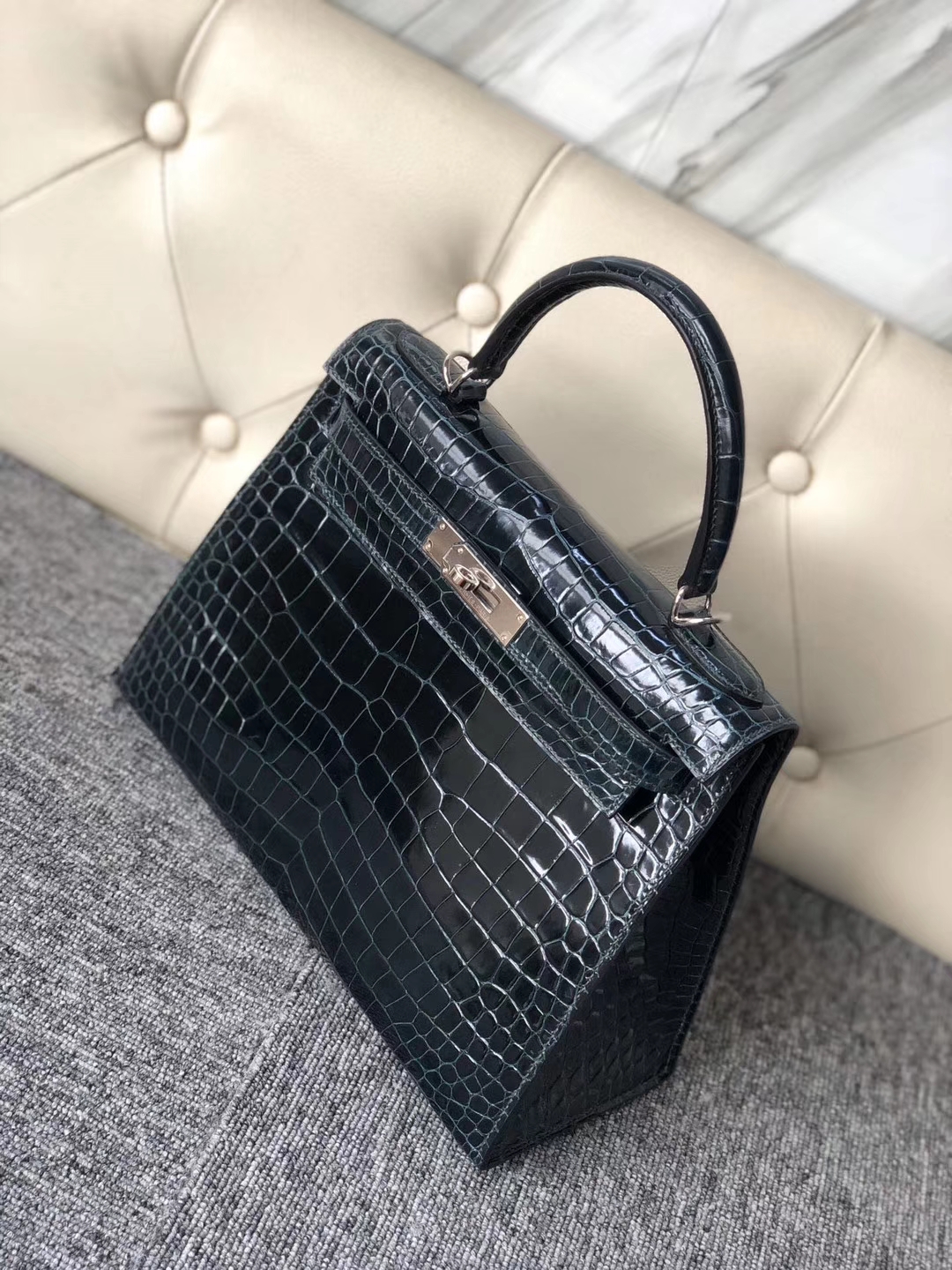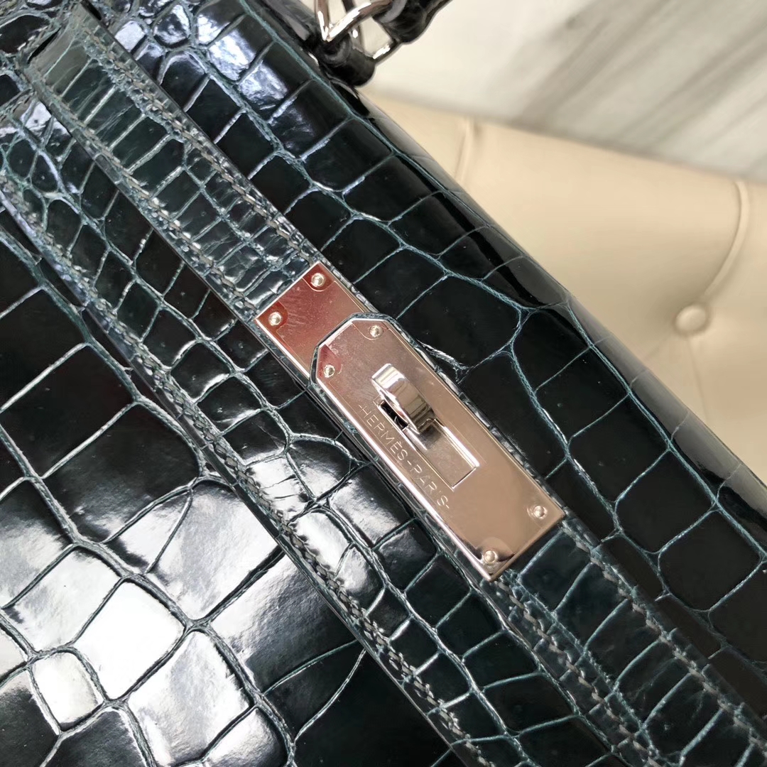 Hermès(爱马仕)Kelly 28cm Porosus shiny 亮面澳洲湾鳄 1p 鸭子蓝 银扣 现货 2020年1月9日 0 【鳄鱼世家】www.Eyubao.com Kelly 28 Kelly 凯莉包 品牌:Hermès(爱马仕);类别:Kelly 凯莉包;颜色:鸭子蓝;材质:亮面澳洲湾鳄;等级:顶级;附件:全套包装礼盒;尺寸: 28cm;功能:手提单肩包