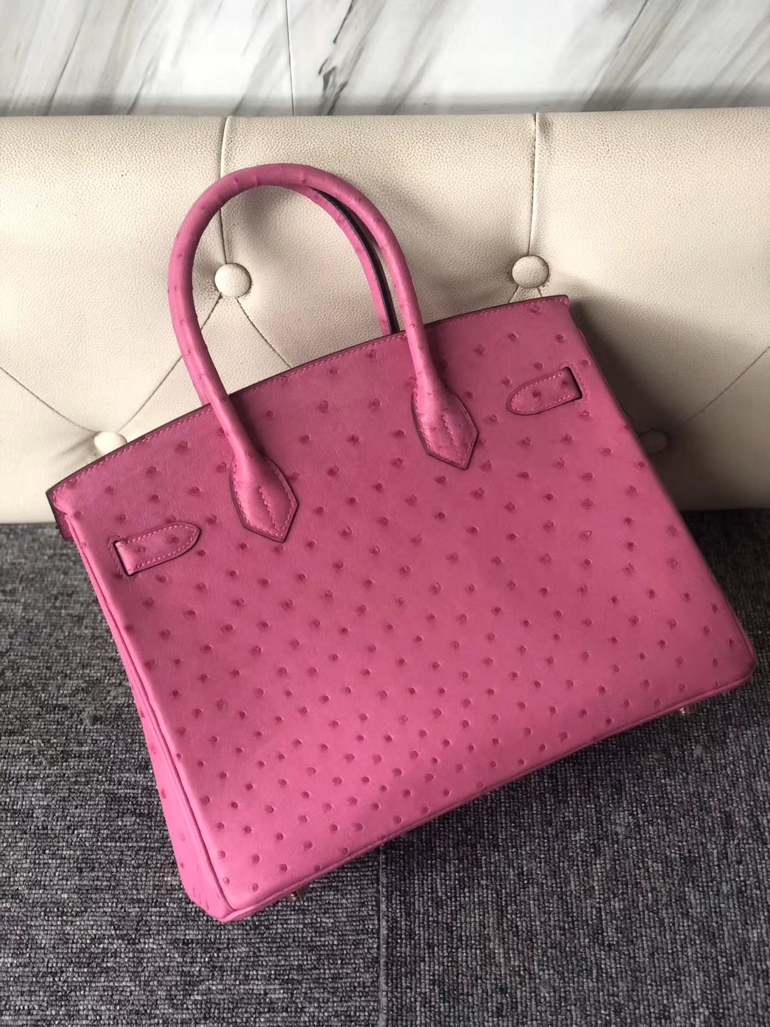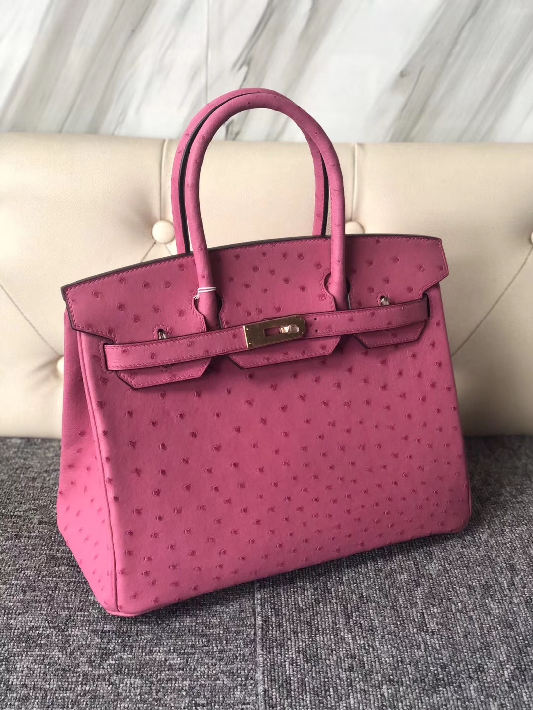 Hermès(爱马仕)Brikin 30cm Ostrich kk鸵鸟 E5 桃红 玫瑰金 rose gold 2020年1月9日 0 【鳄鱼世家】www.Eyubao.com Birkin 30 Birkin 铂金包 品牌:Hermès(爱马仕);类别:Birkin 铂金包;颜色:桃红;材质:鸵鸟皮;等级:顶级;附件:全套包装礼盒;尺寸:30cm;功能:手提单肩包
