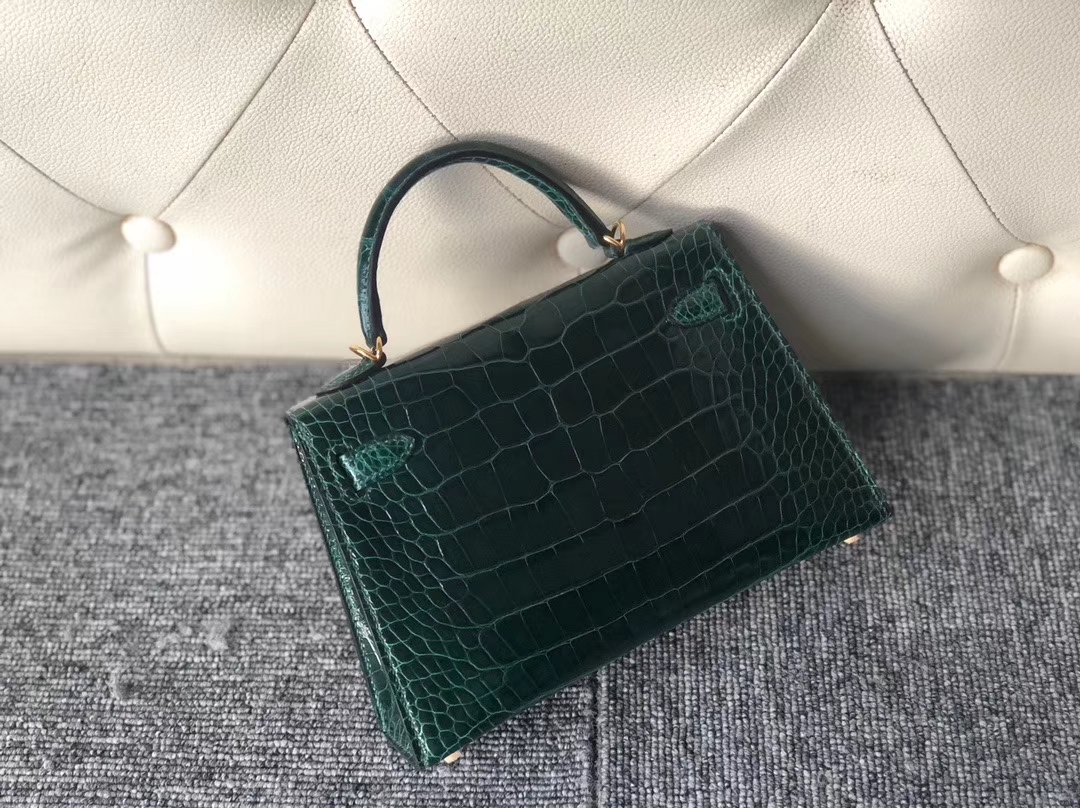 Hermès(爱马仕)Minikelly ll Alligator shiny 亮面鳄鱼 ck67 祖母绿 金扣 顶级手缝 小可爱 现货 2020年1月9日 0 【鳄鱼世家】www.Eyubao.com Mini Kelly 2 Mini Kelly 迷你凯莉 品牌:Hermès(爱马仕);类别:Mini Kelly迷你凯莉包;颜色: 祖母绿;材质:亮面鳄鱼;等级:顶级;附件:全套包装礼盒;尺寸:19cm;功能:手提单肩包